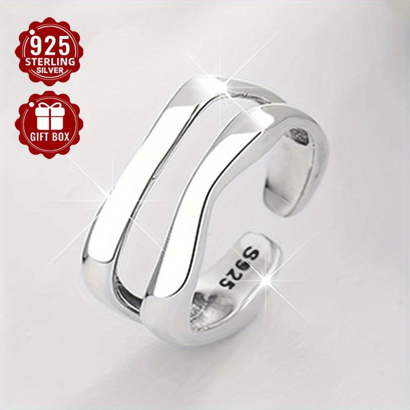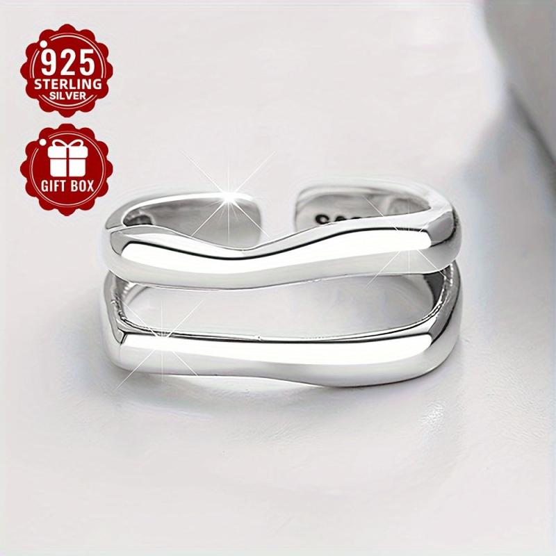 This 925 sterling silver open ring features an irregular double layer wave design. It is hypoallergenic and suitable for both men and women. Perfect for adding a fashionable touch to any casual look.