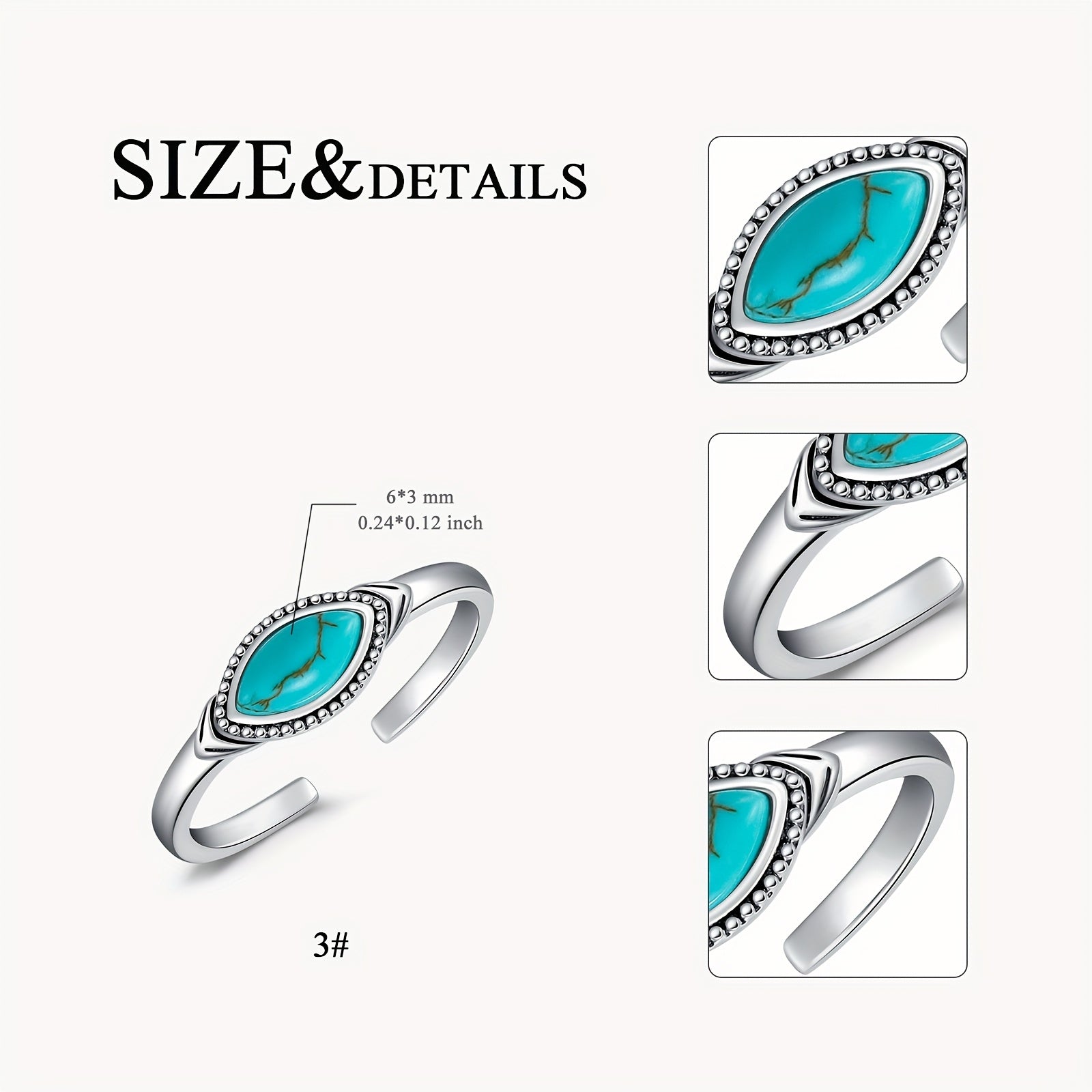 925 Sterling Silver Turquoise Toe Rings Adjustable Open Band Jewelry