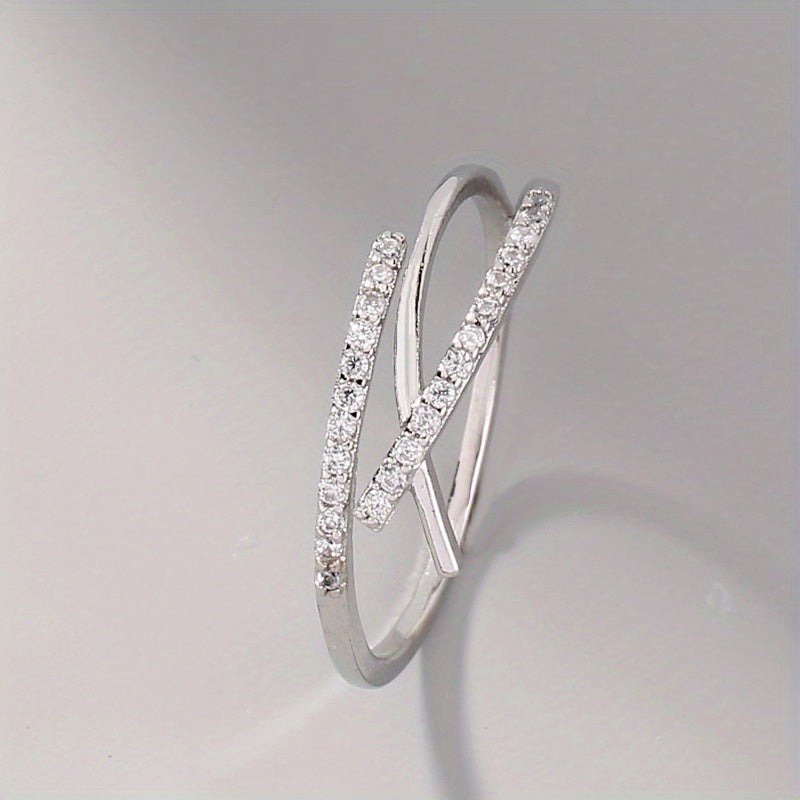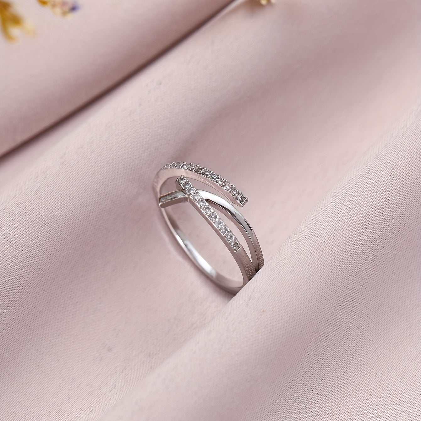 Adjustable Cuff Ring with Zirconia Inlay for Casual Dating