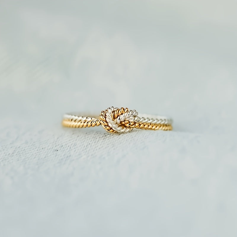 This elegant promise ring features a knot design, making it suitable for everyday wear, anniversaries, and weddings.
