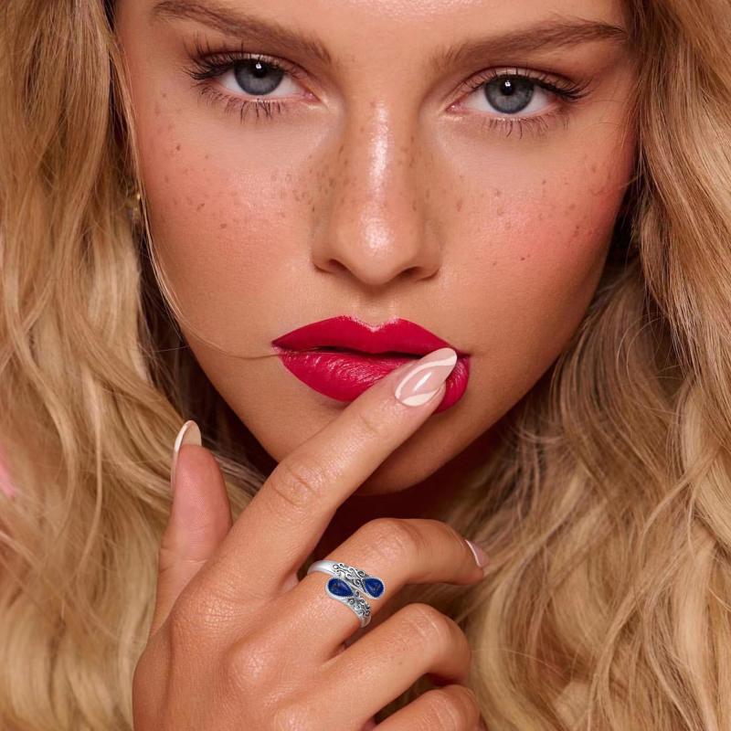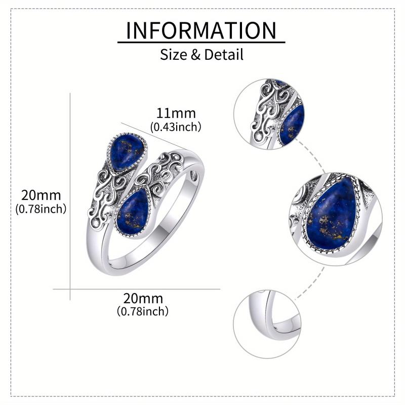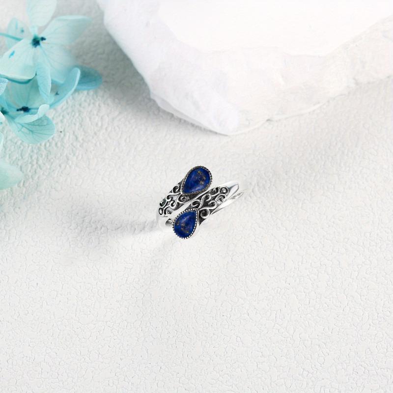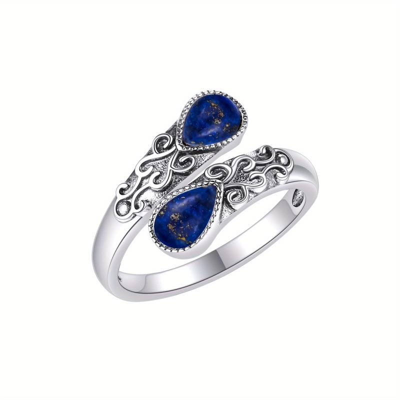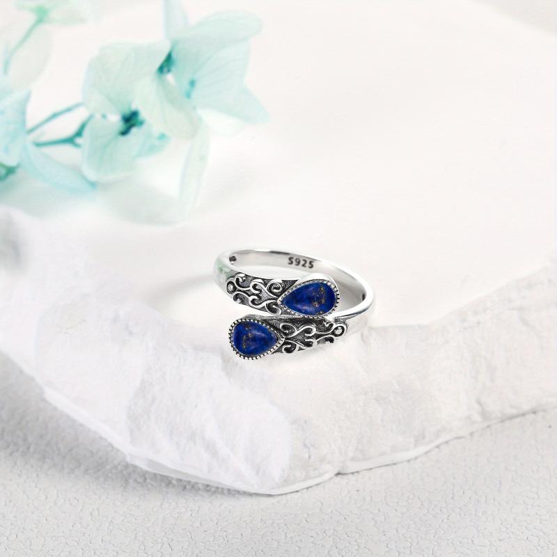 This stunning ring features a synthetic lapis lazuli stone set in high-quality sterling silver. The open band design allows for easy adjustment to fit any finger size.