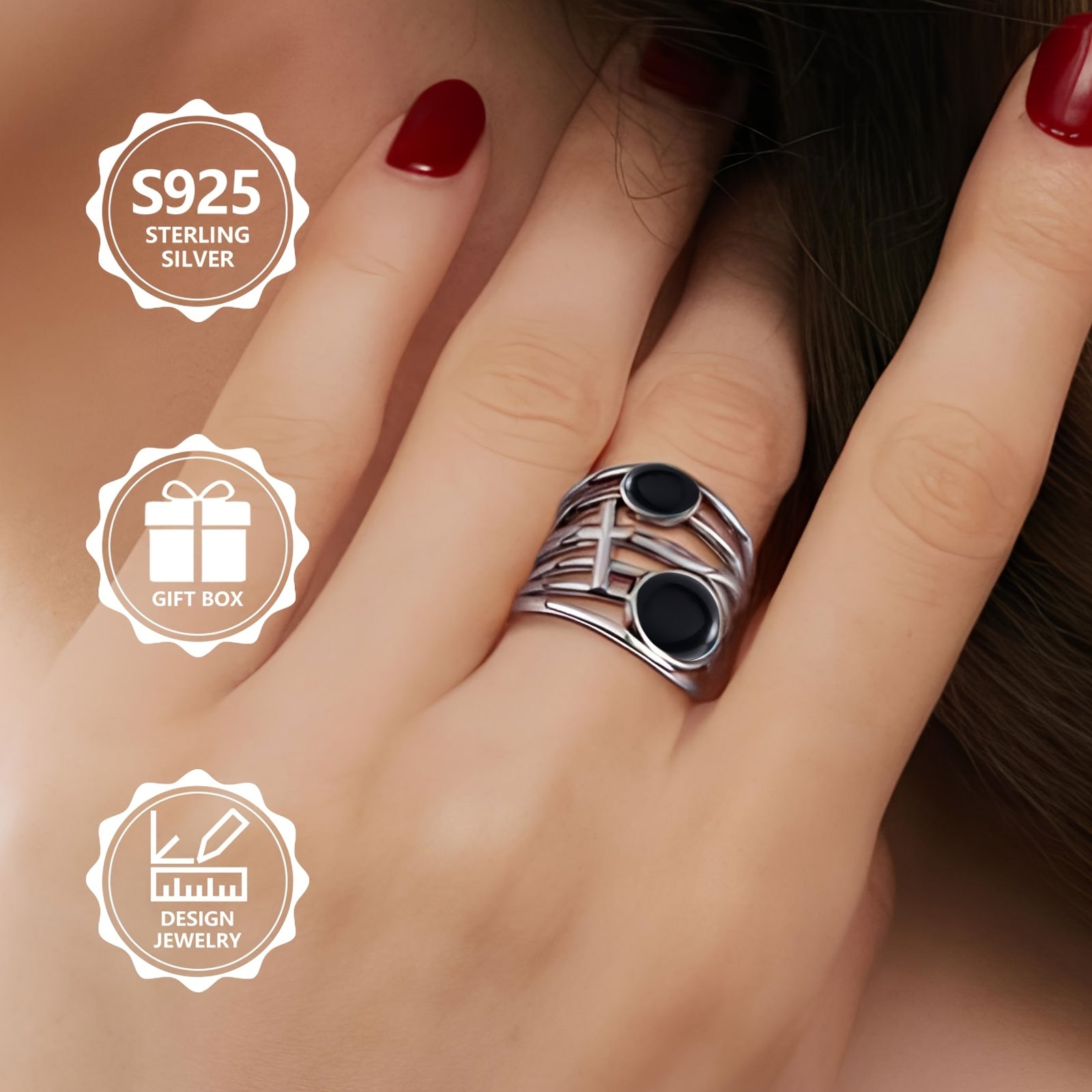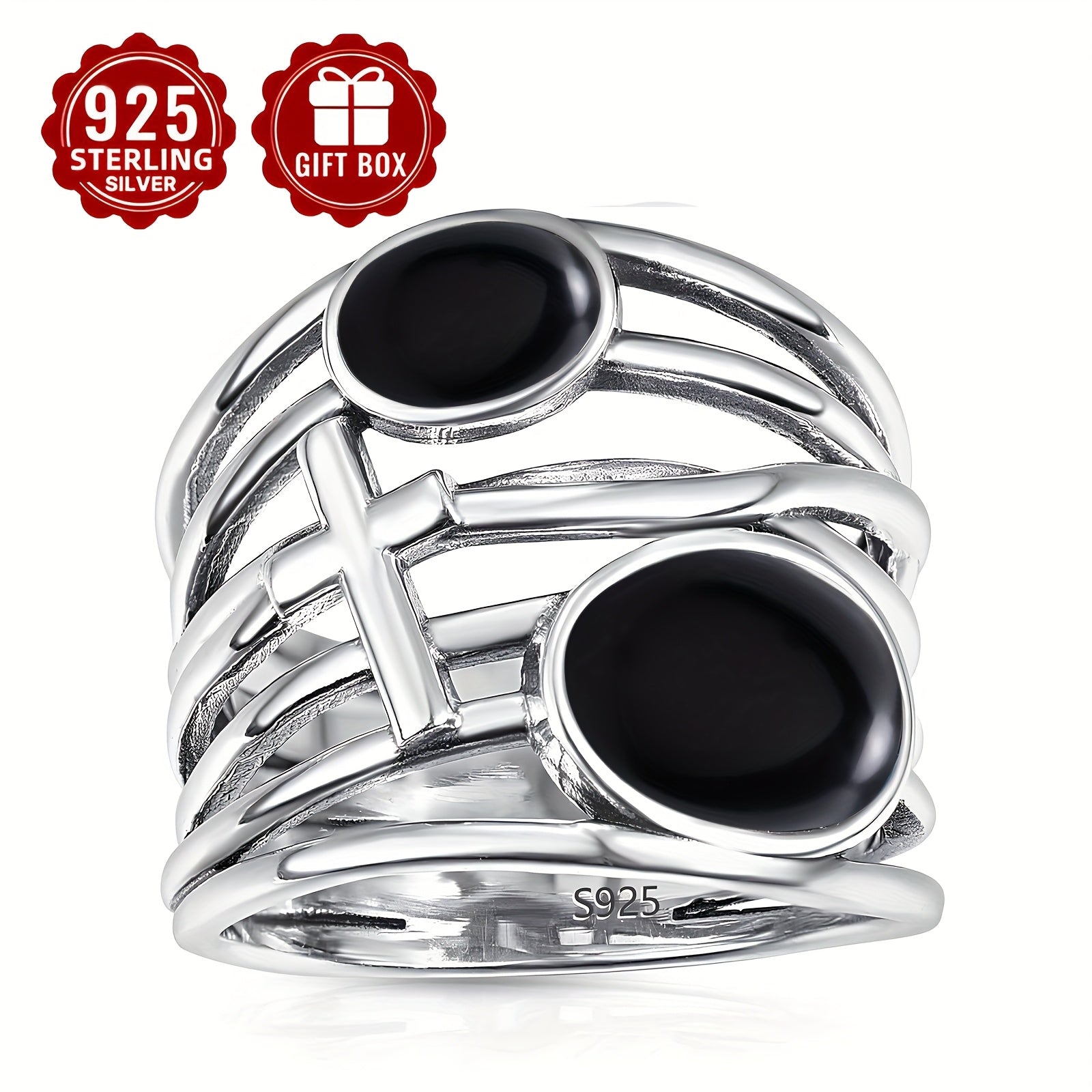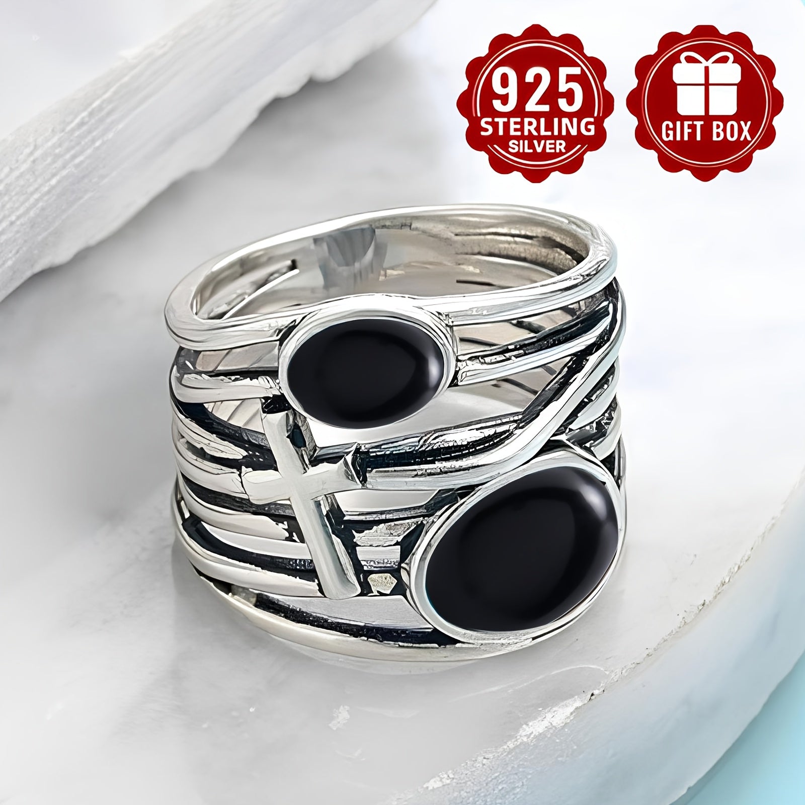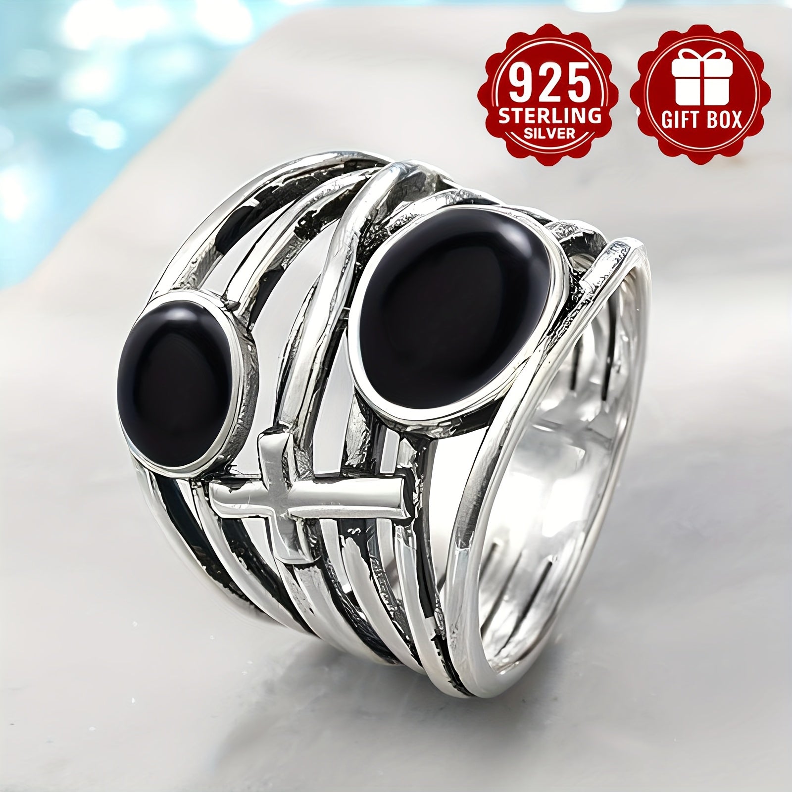 This agate ring features a S925 silver cross design, making it an elegant and unique accessory for both men and women. Perfect for adding a touch of vintage style to your outfit or as a holiday gift.