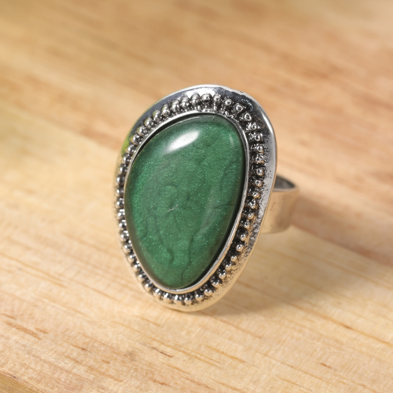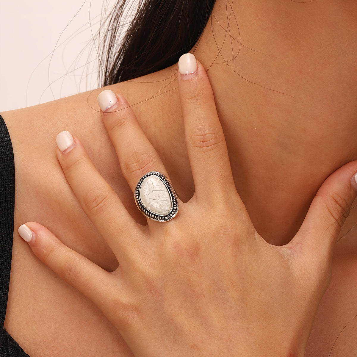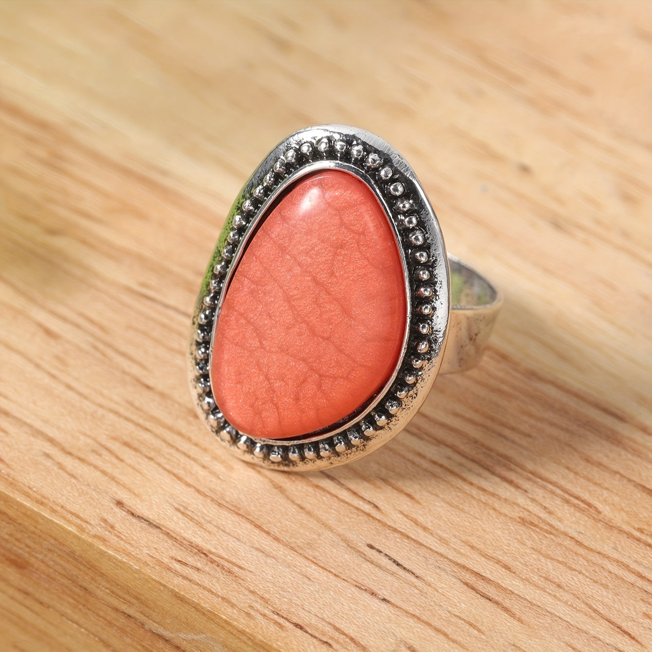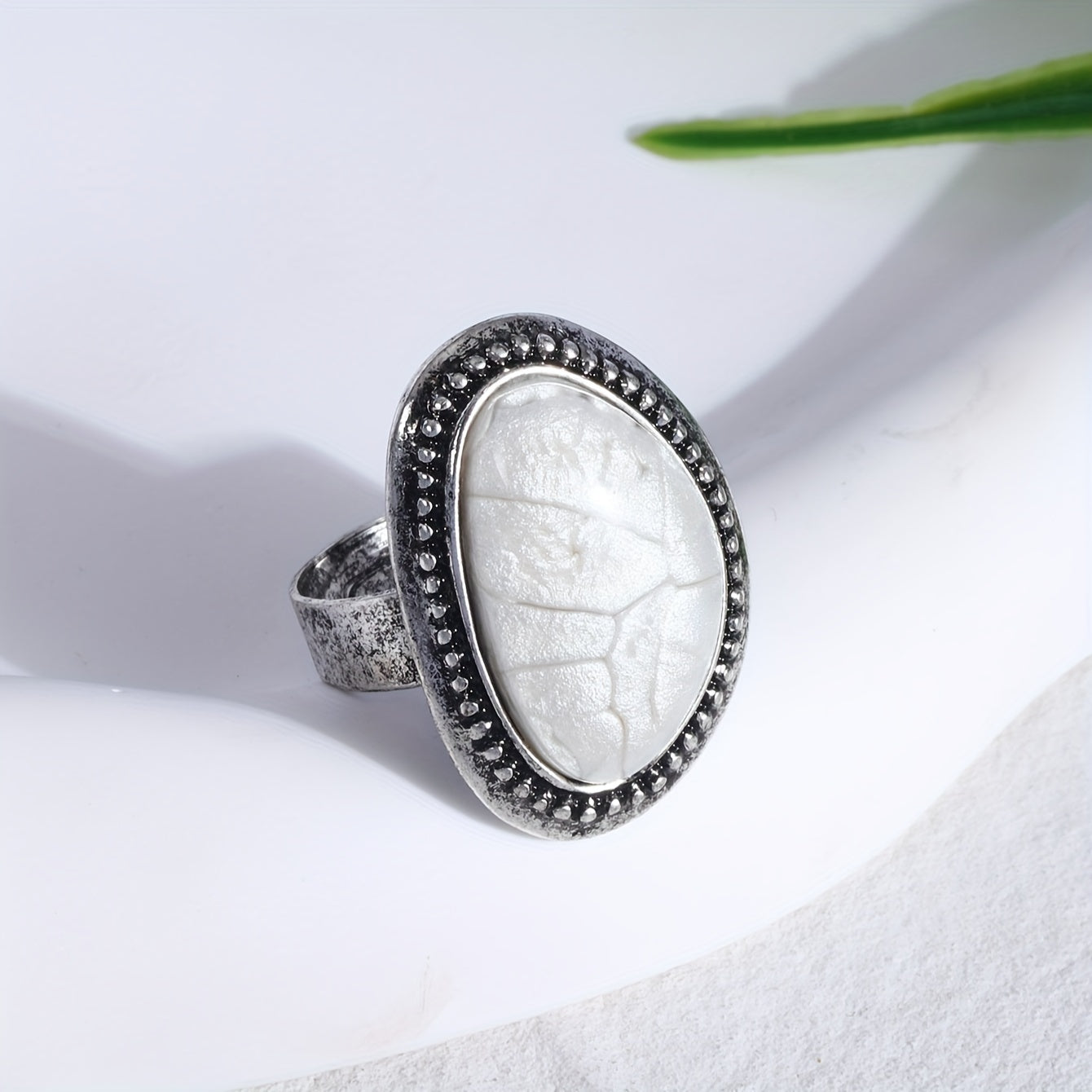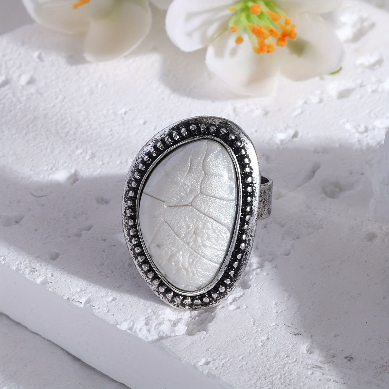 This ring is a light, minimalist piece with a versatile design suitable for daily wear or gift giving. The vintage style and natural resin ellipse make it unique and stylish.