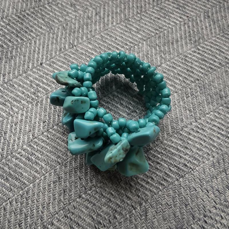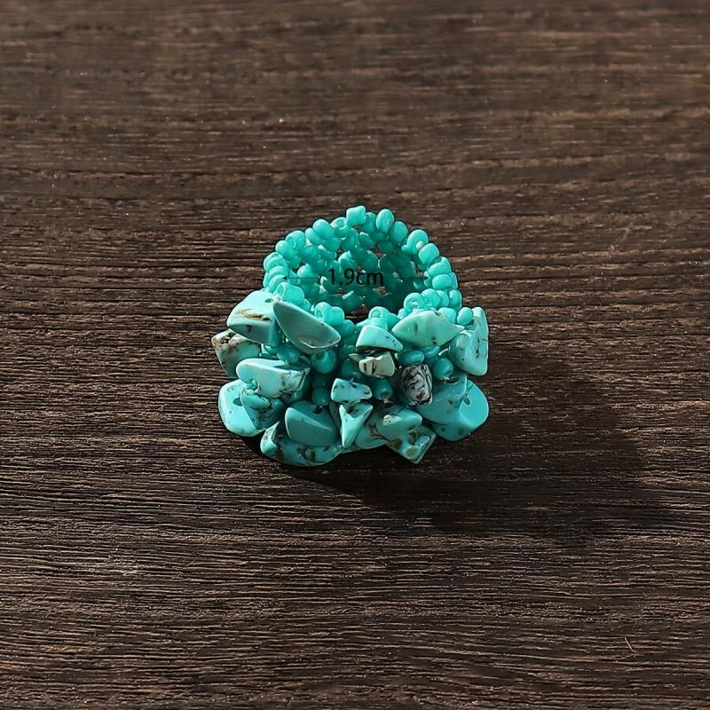 Add a touch of bohemian flair to your style with this elastic beaded wide ring featuring natural turquoise stones. Perfect for daily wear or party occasions.