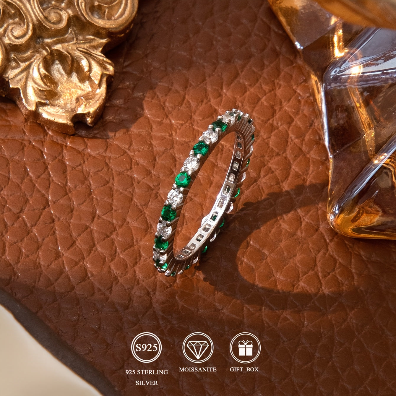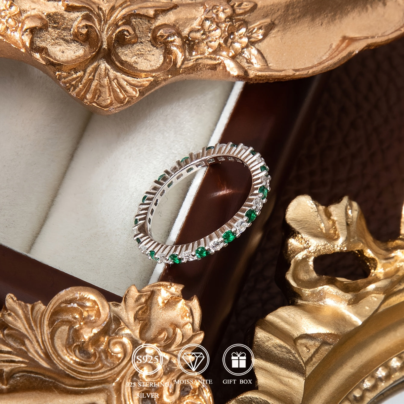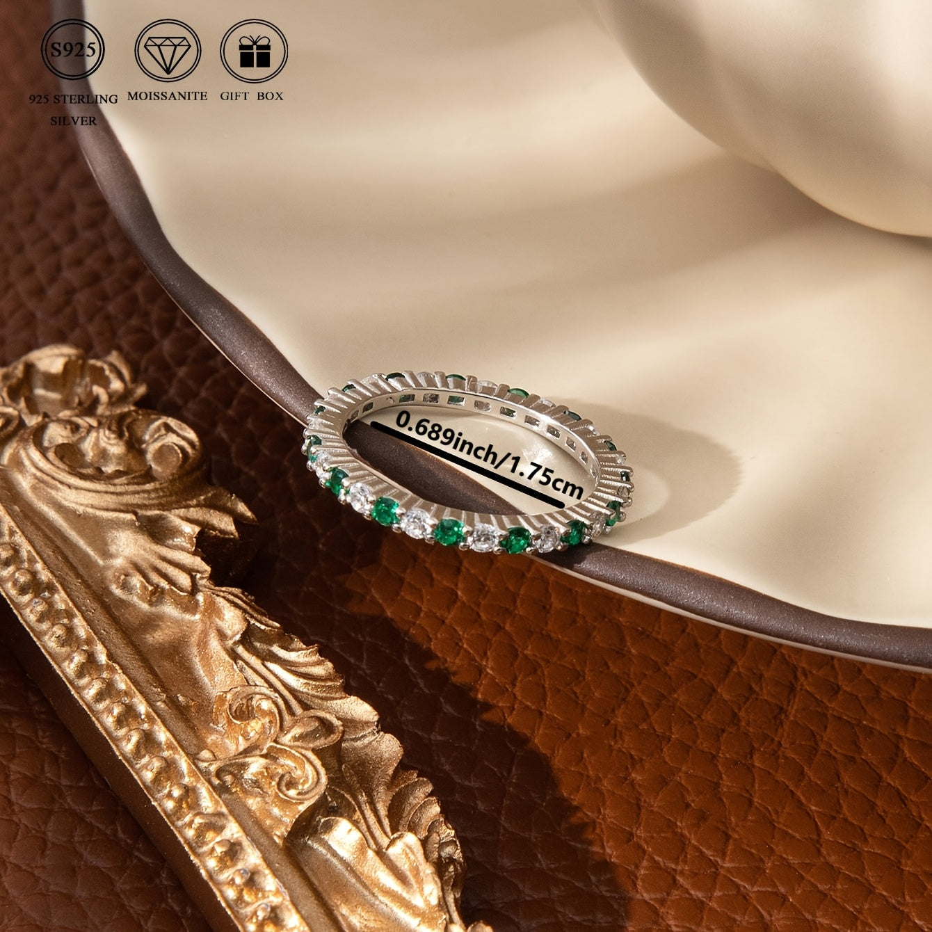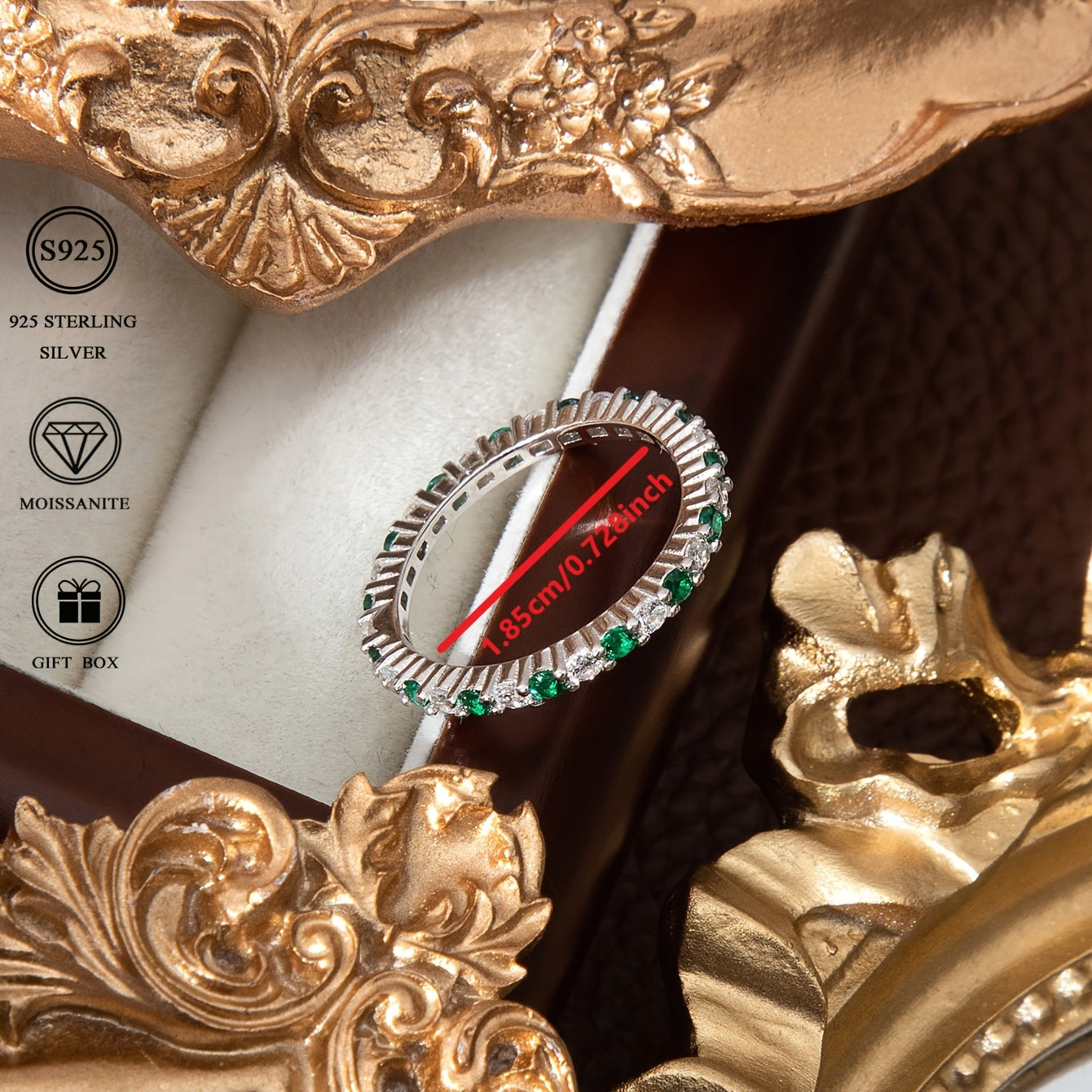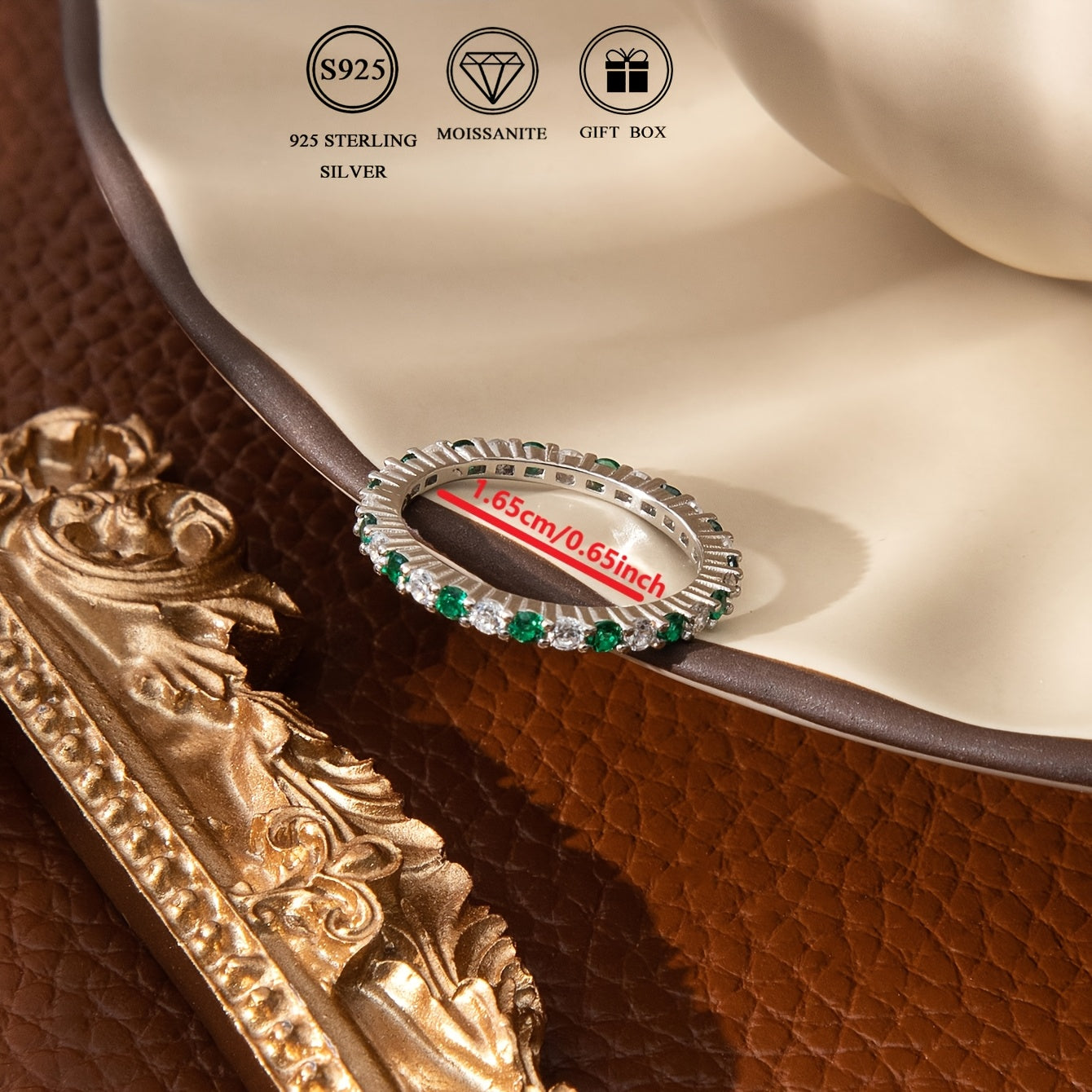 Add a pop of color to your everyday look with this stunning 925 silver ring featuring colorful moissanite stones. Perfect for adding a touch of sparkle to any outfit.
