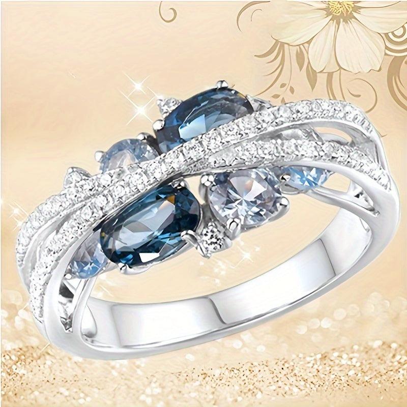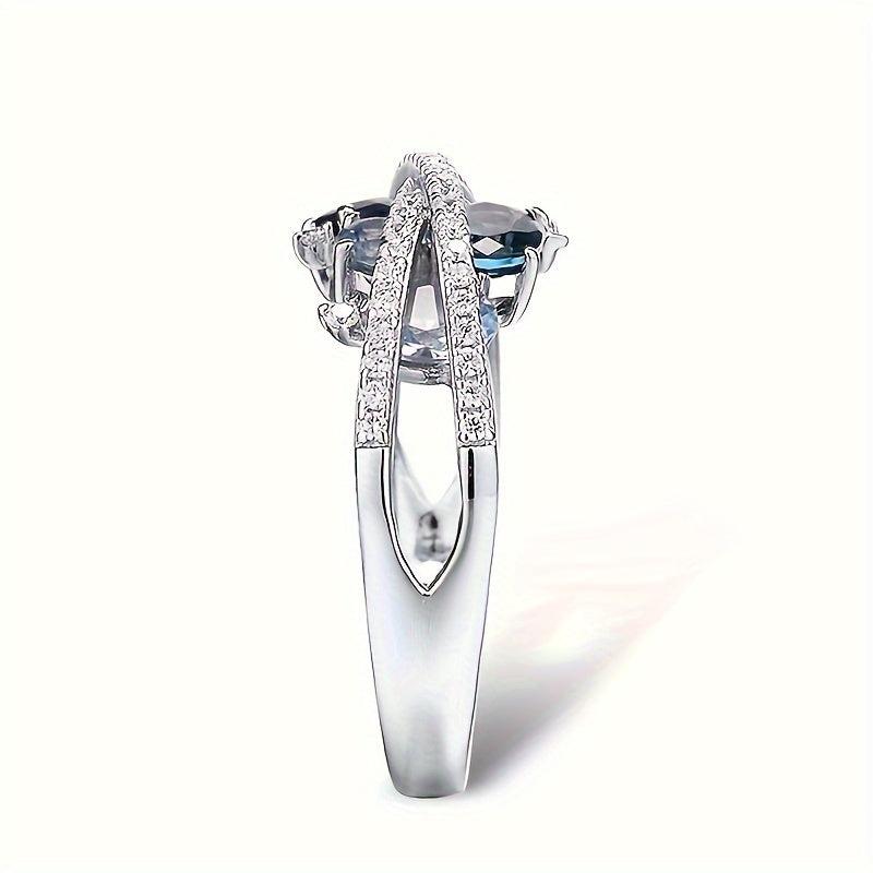 This stunning ring set features a X cross hollow design with a beautiful sea artificial gemstone. Perfect for engagement, wedding, party, and anniversary gifts.