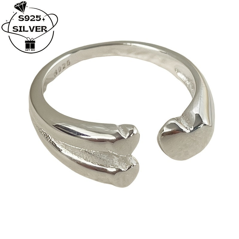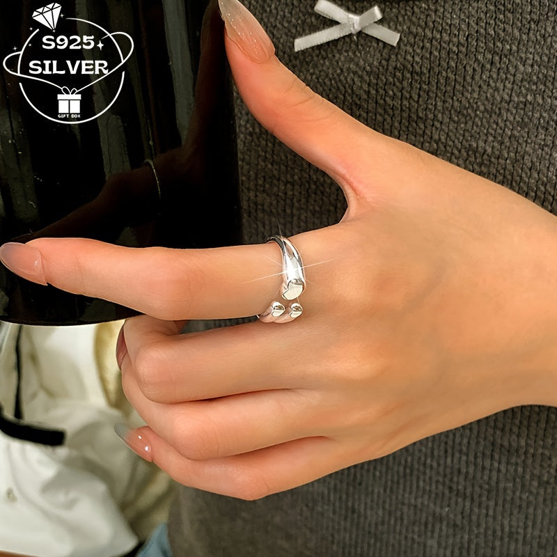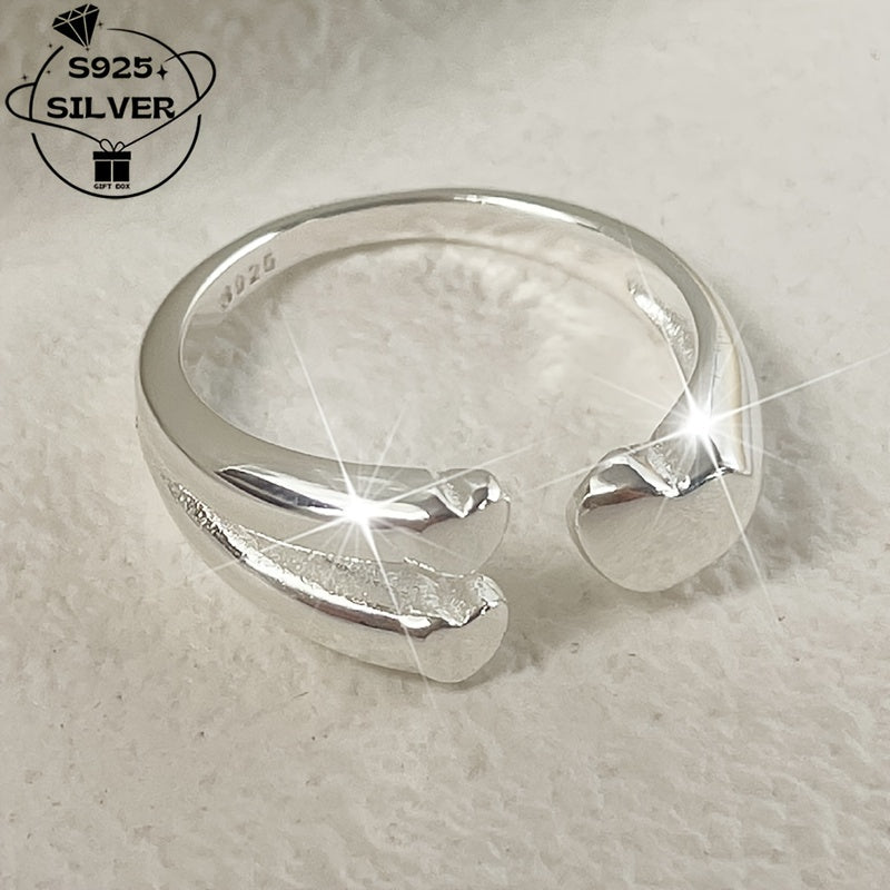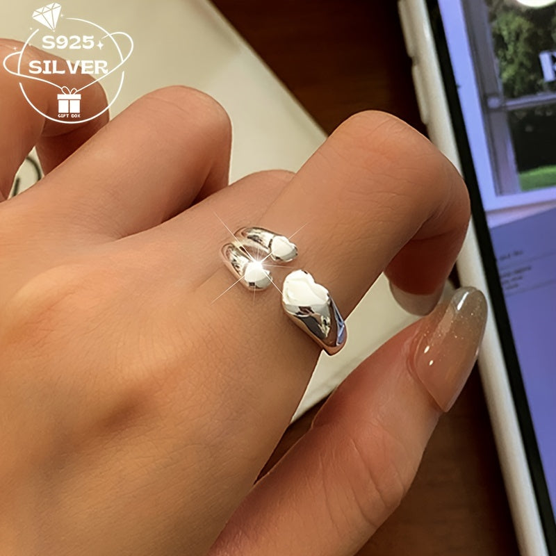 This elegant 925 silver ring features a double layer heart design, perfect for expressing love. Its minimalist style adds a touch of sophistication. The adjustable opening ensures a comfortable fit. Makes a meaningful Valentine's gift for your loved one.