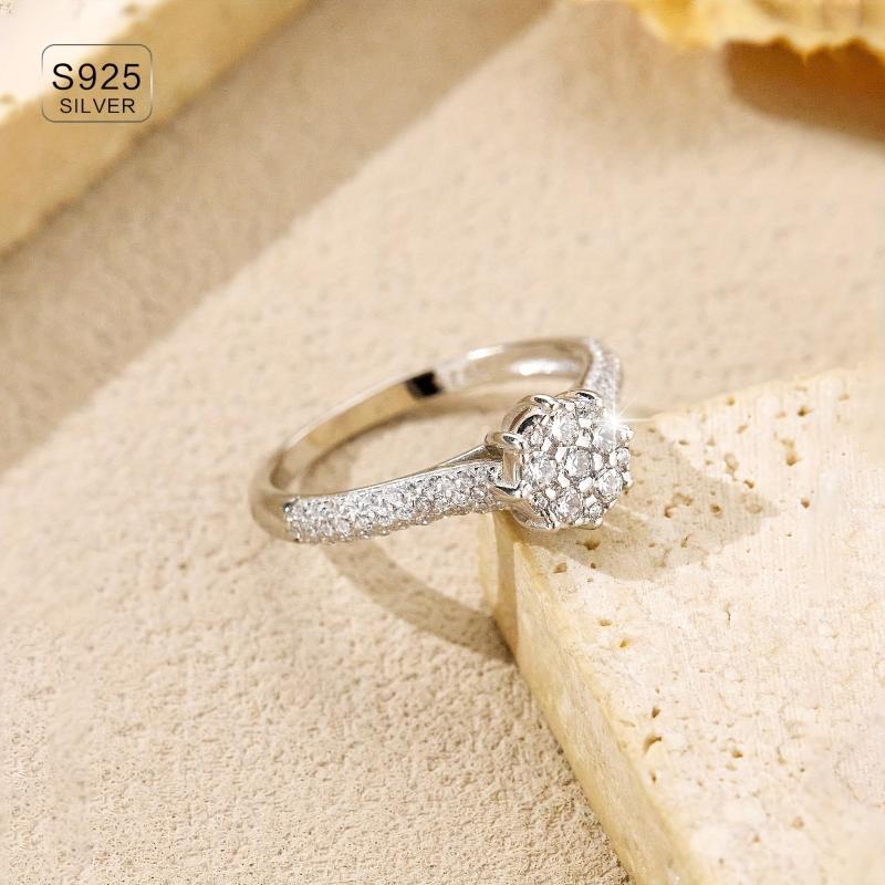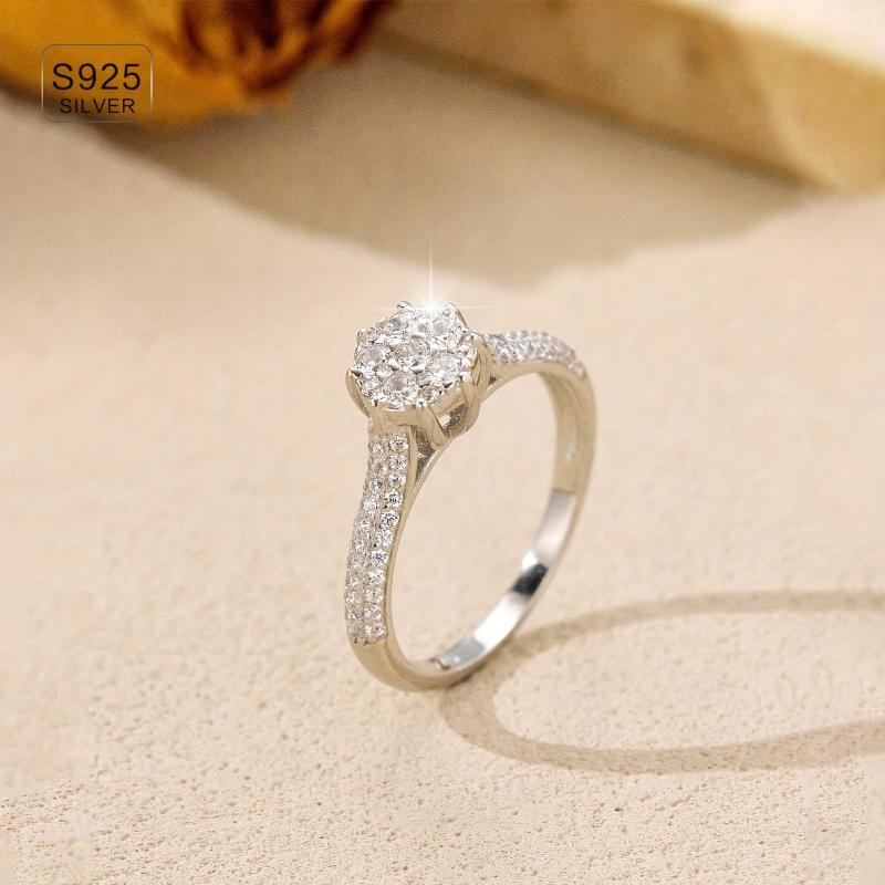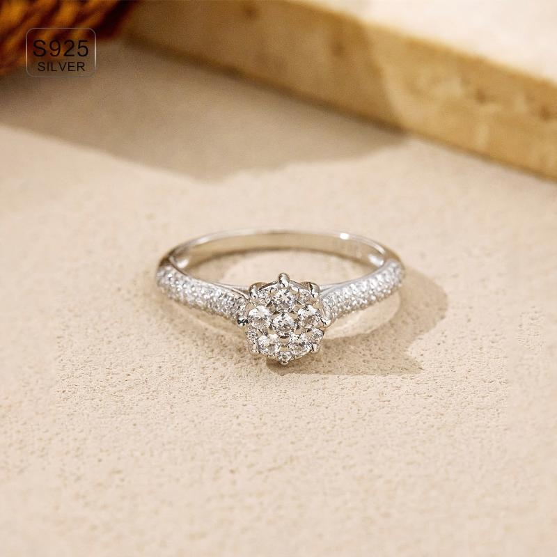 Elegant 37g CZ Cluster Ring in 925 Silver, Hypoallergenic & Tarnish-Free