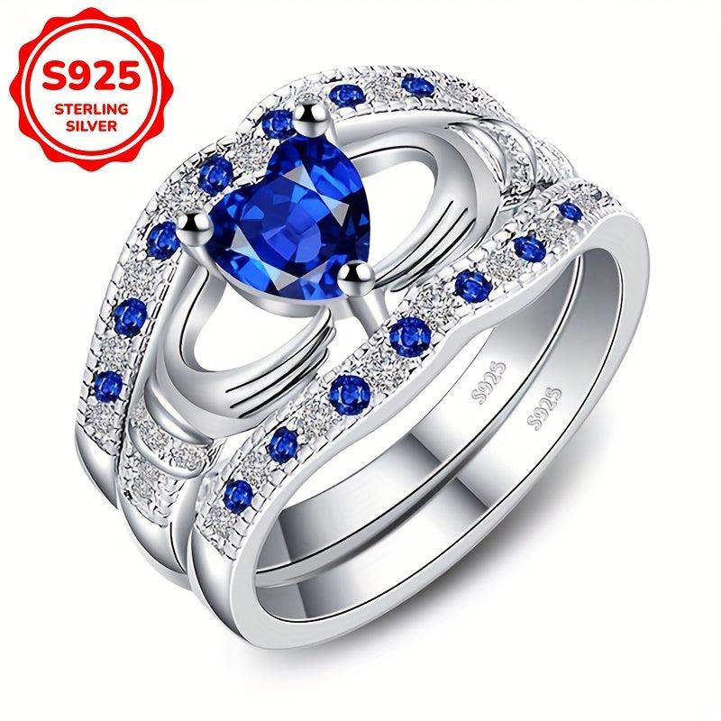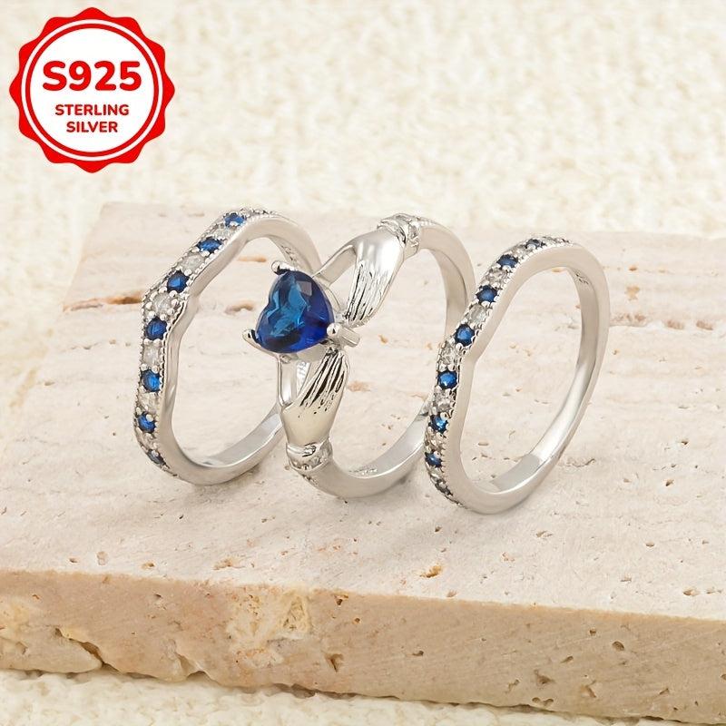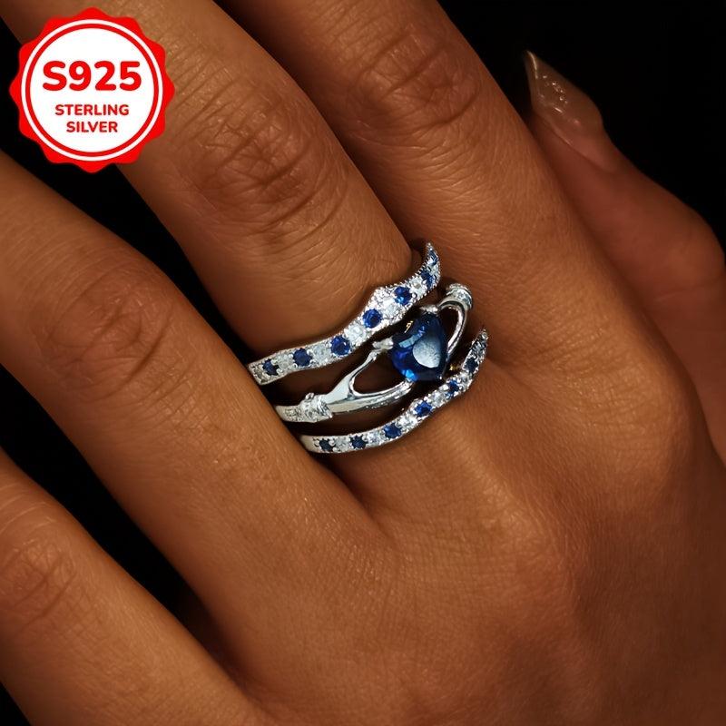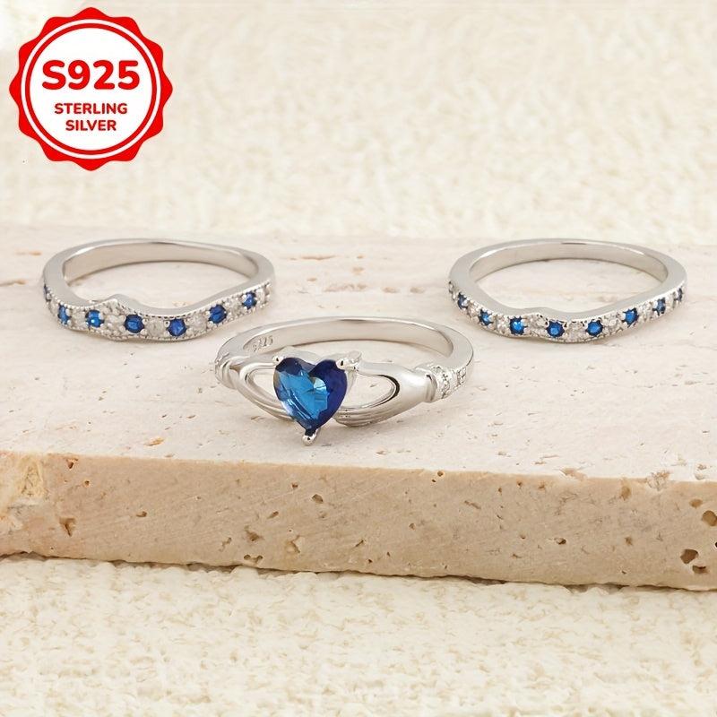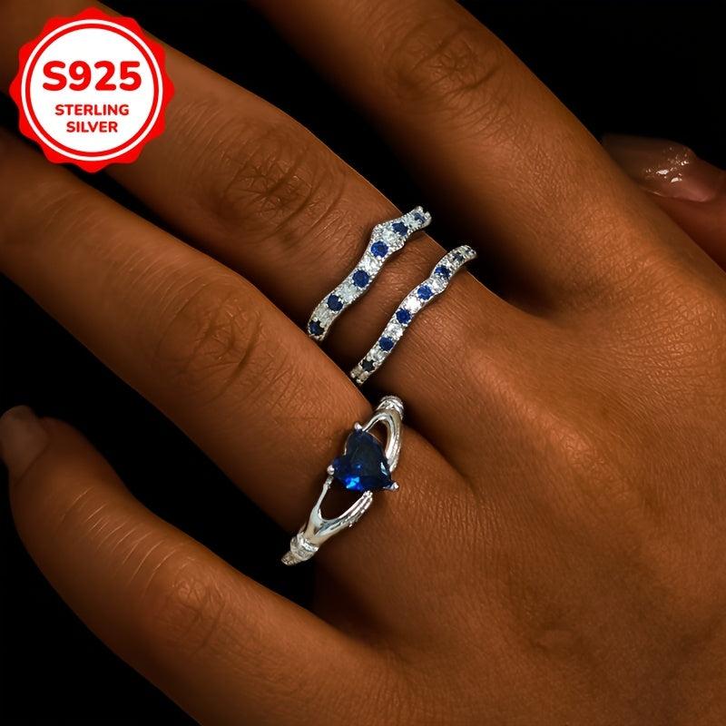 Elegant 925 Silver Heart Stacking Ring with Zirconia, 5.2G