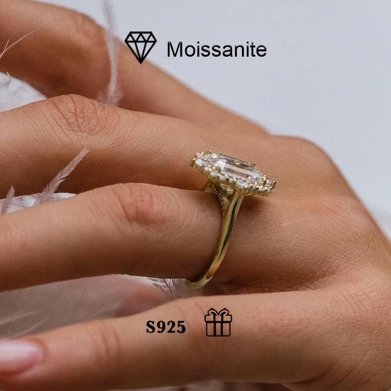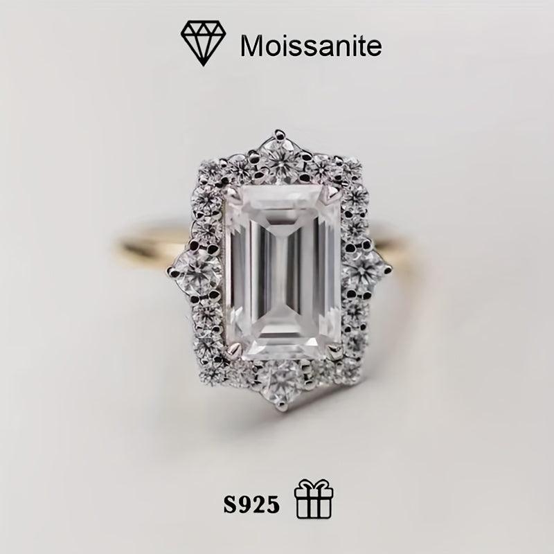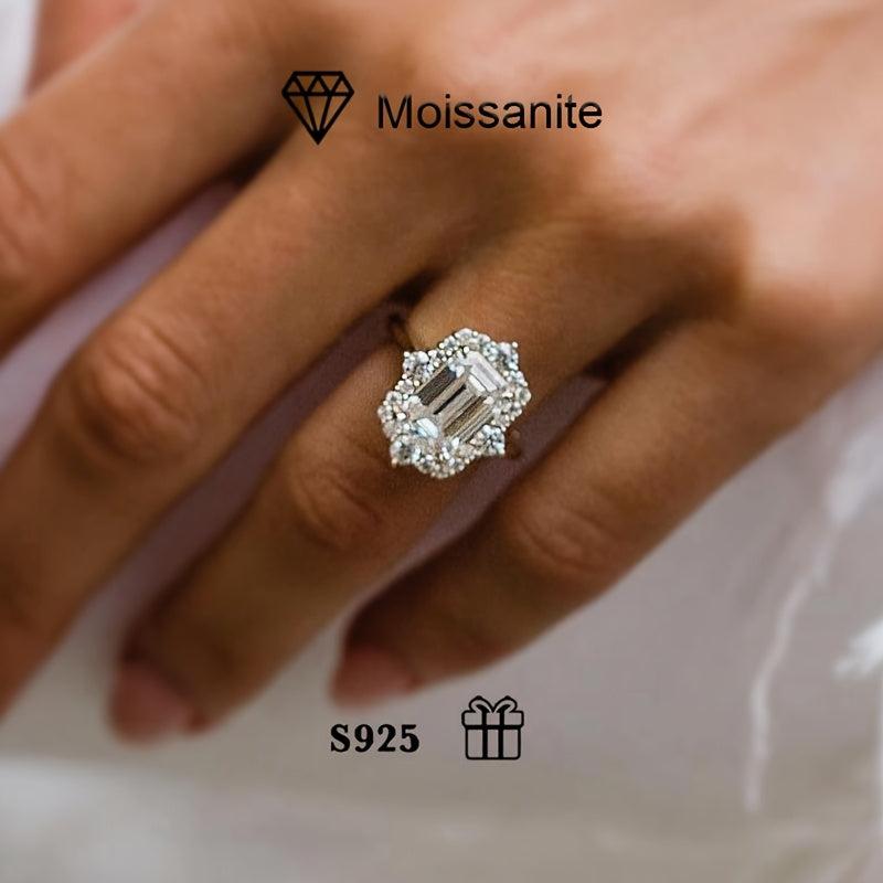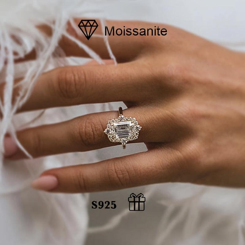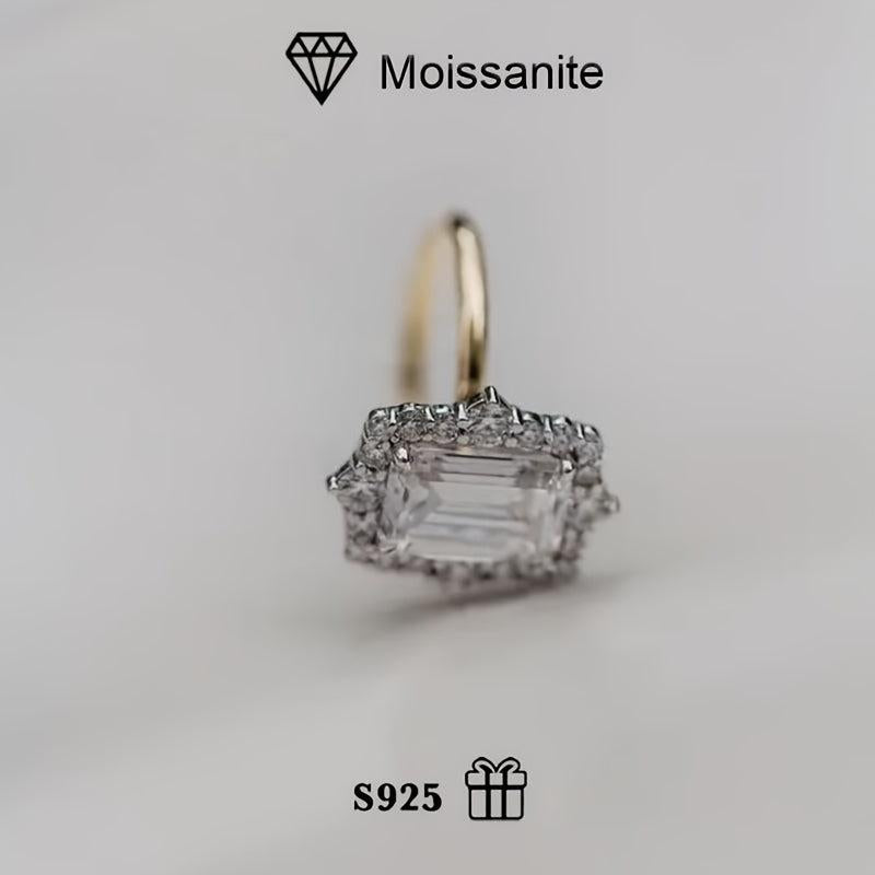 This stunning ring is a perfect gift for wives or loved ones. Made of low allergy S925 silver, it features a 2 carat rectangular moissanite weighing approximately 4.6g.