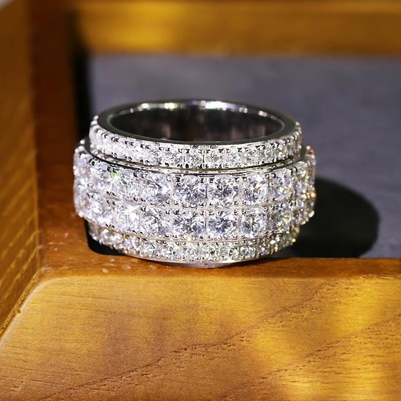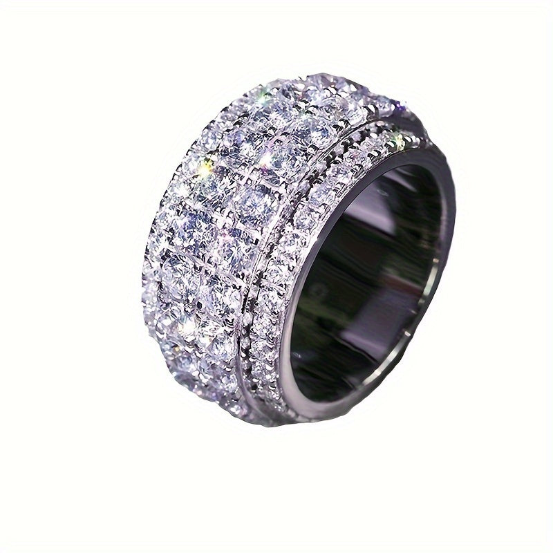 Elevate your style with this stunning wide face ring featuring full inlaid synthetic zirconia. Perfect for daily wear, banquets, and holidays.