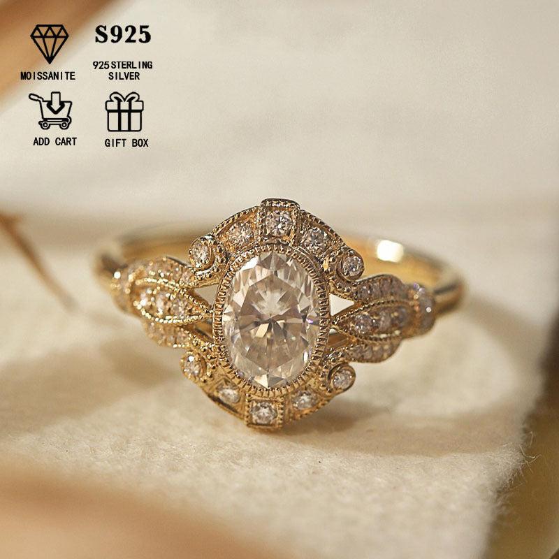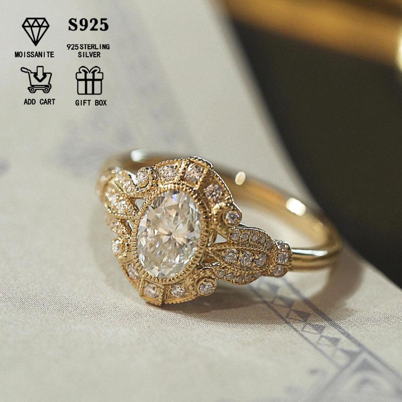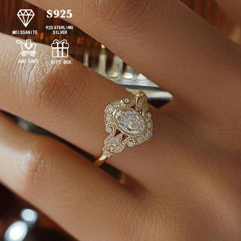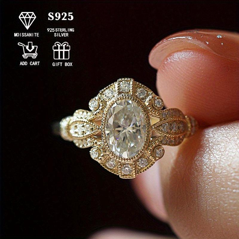 French Style 925 Silver Oval Moissanite Engagement Ring 1 2ct