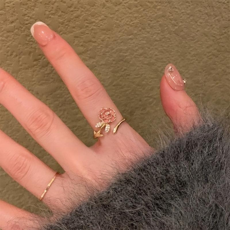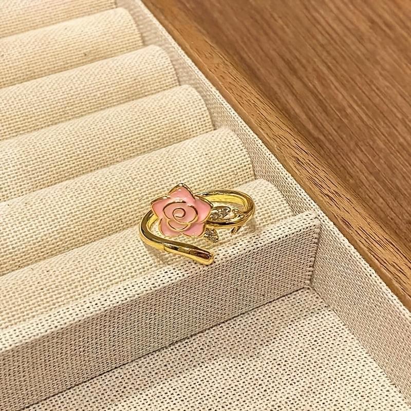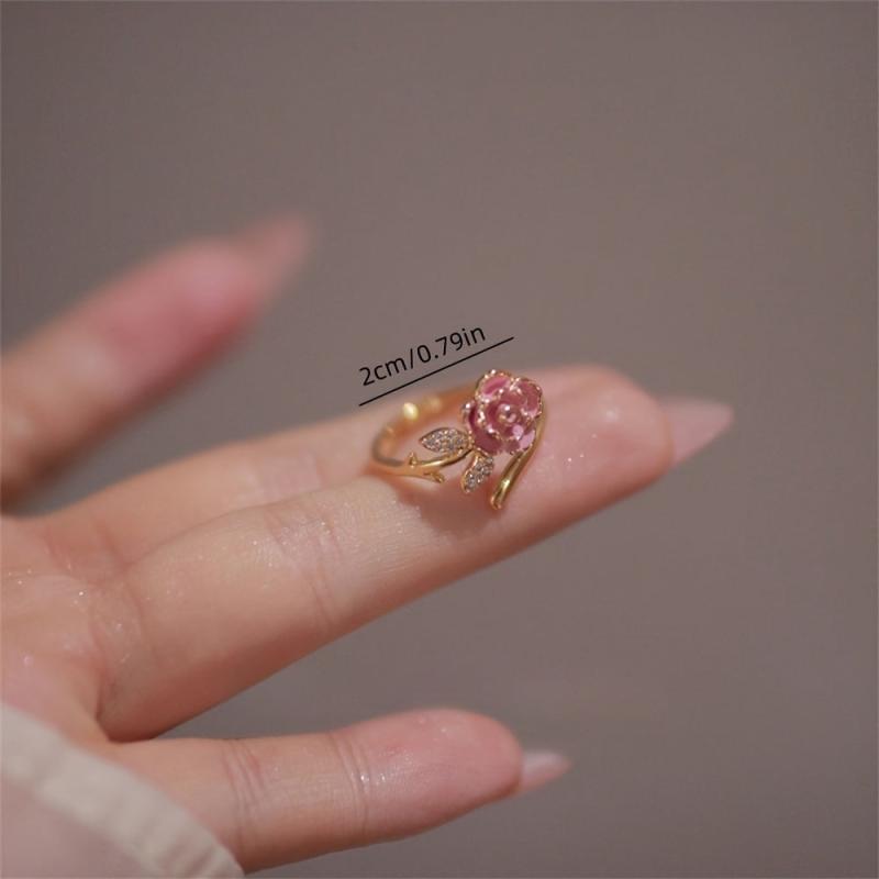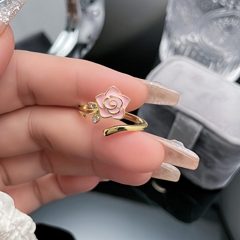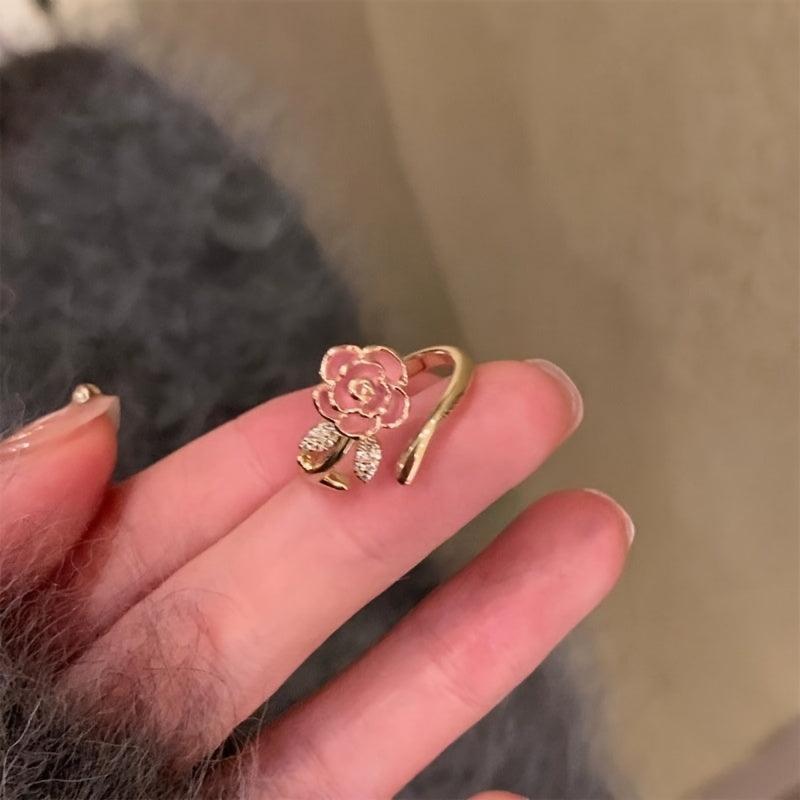 French Style Rose Ring Floral 14K Plated Alloy Band Zirconia Accessory