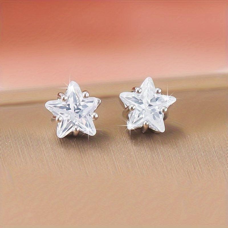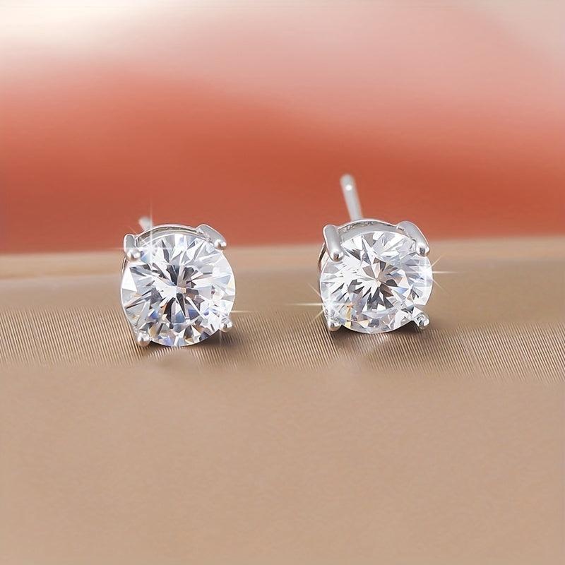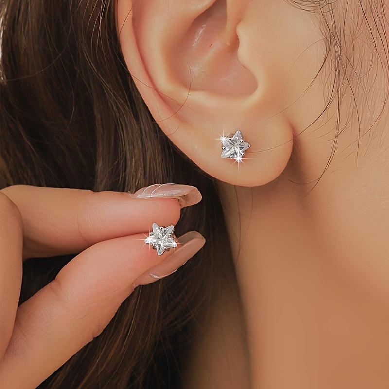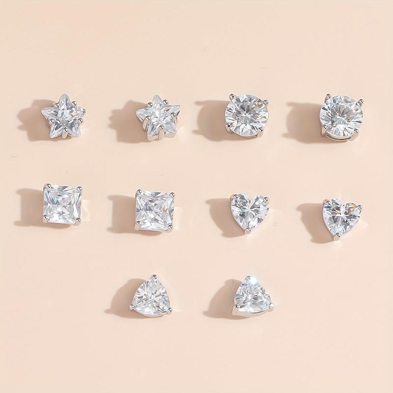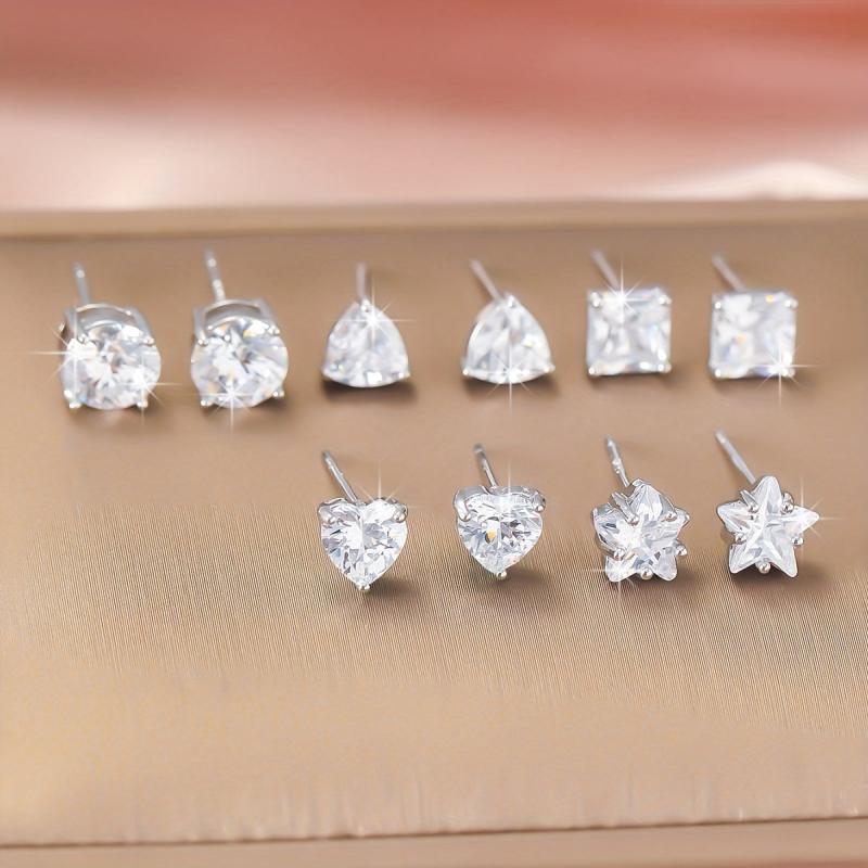 Add a touch of elegance with these stunning geometric stud earrings featuring sparkling zirconia stones. Crafted with hypoallergenic 925 silver posts, they are perfect for both casual attire and special occasions.