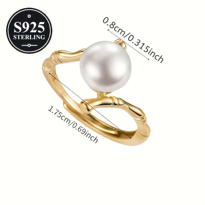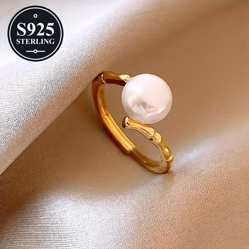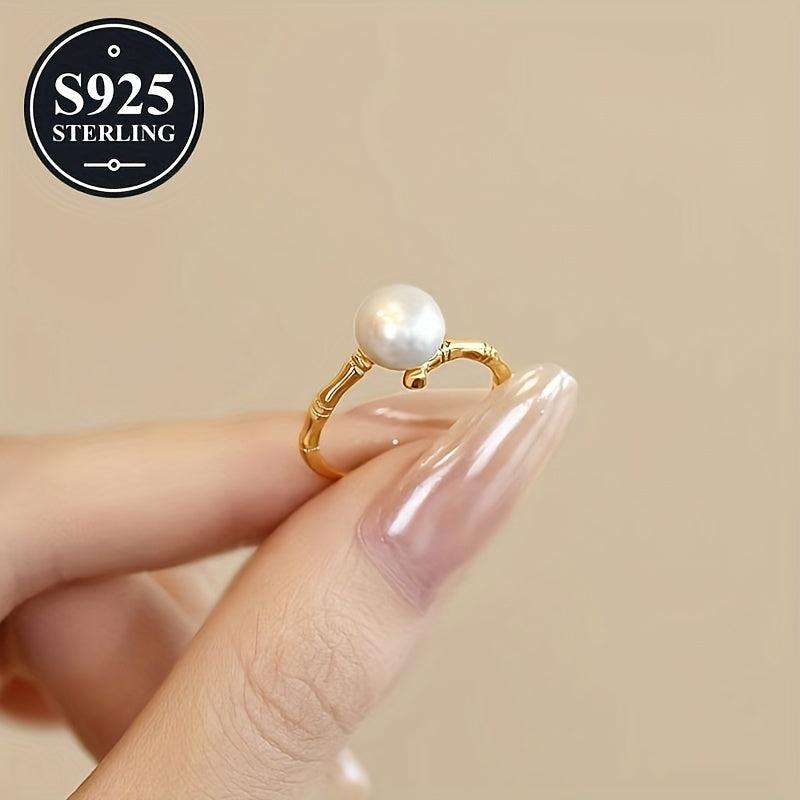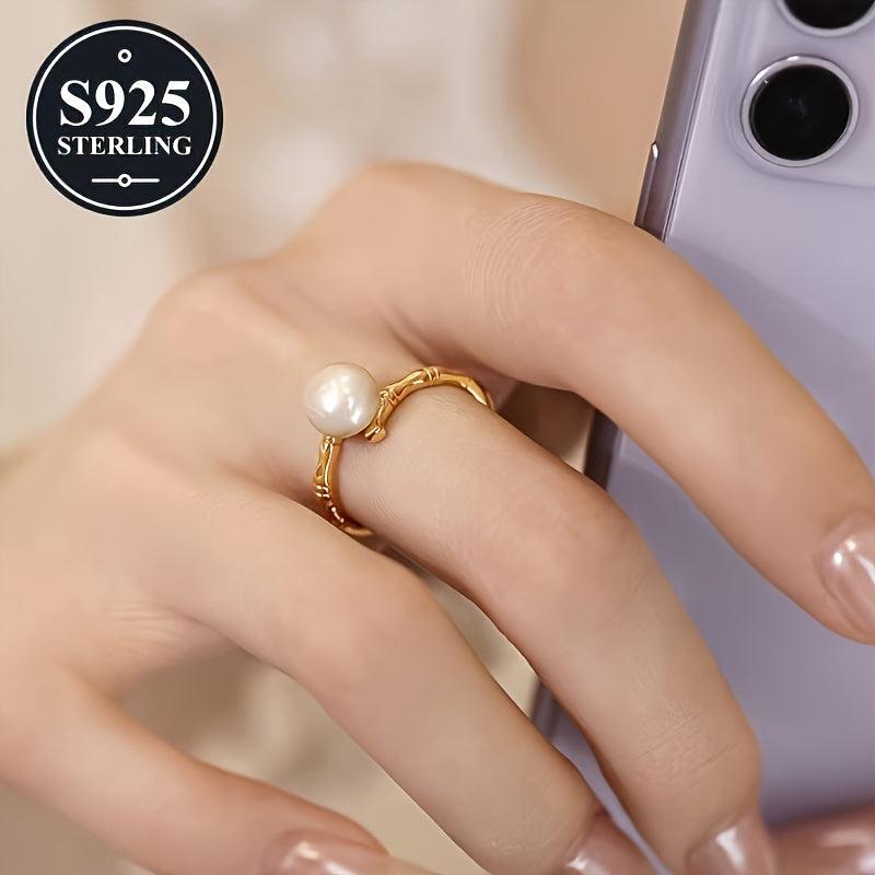 Hypoallergenic Bamboo Textured Pearl Ring with Anti Oxidation Storage Box