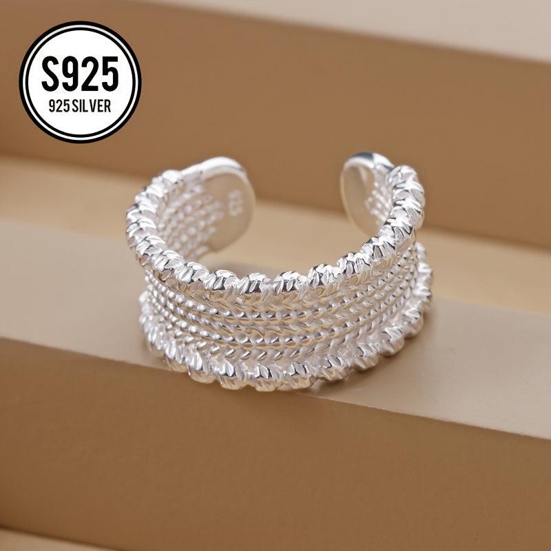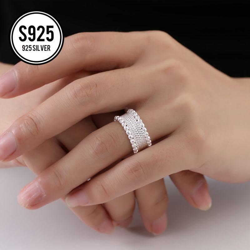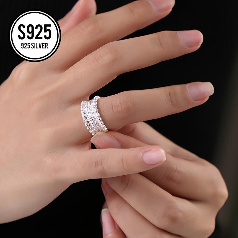 This open ring features an embossed lace woven bead design, making it a perfect gift for mothers or ladies. It is hypoallergenic, anti-oxidation, and weighs 4g. Ideal for everyday wear.