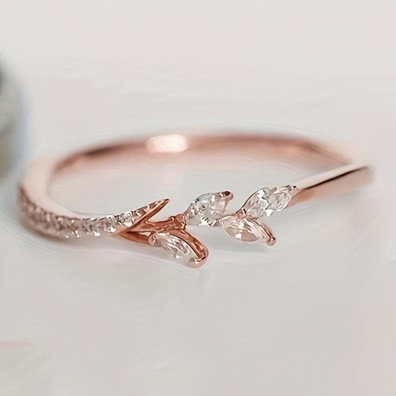 Elegant leaf design ring with synthetic zirconia stones, perfect for weddings, engagements, or casual wear. Makes a great gift for loved ones.