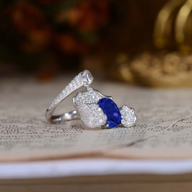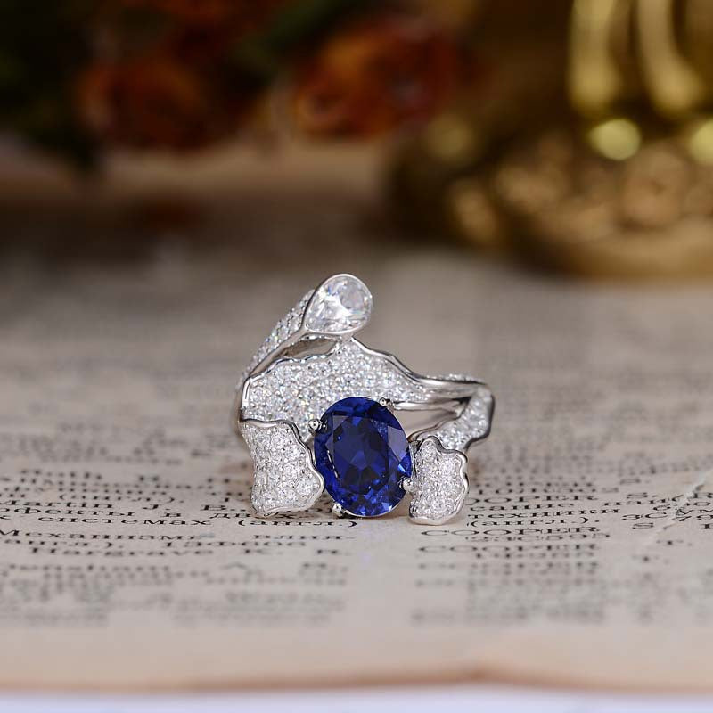 This high jewelry closed ring features a stunning 7x9mm oval lab moissanite. Crafted with precision and elegance.