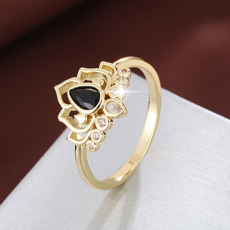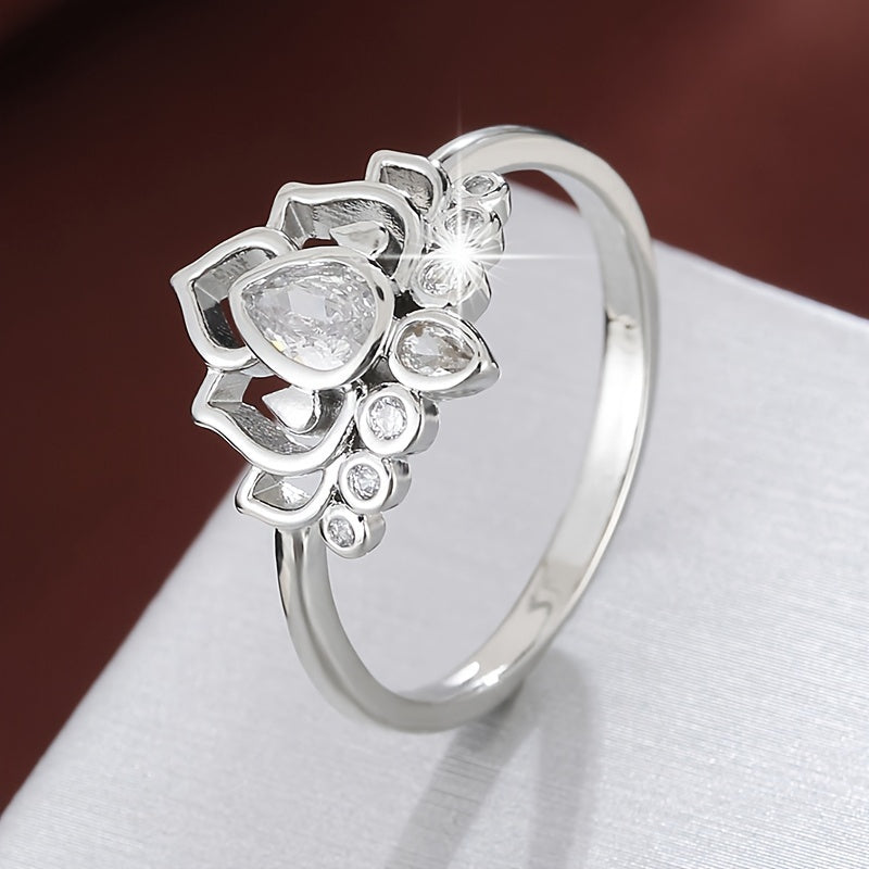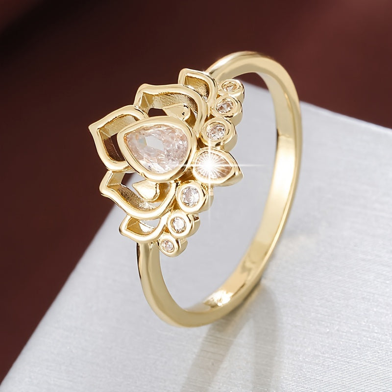 Lotus Flower Ring with CZ - Perfect for Parties, All Season Copper Jewelry