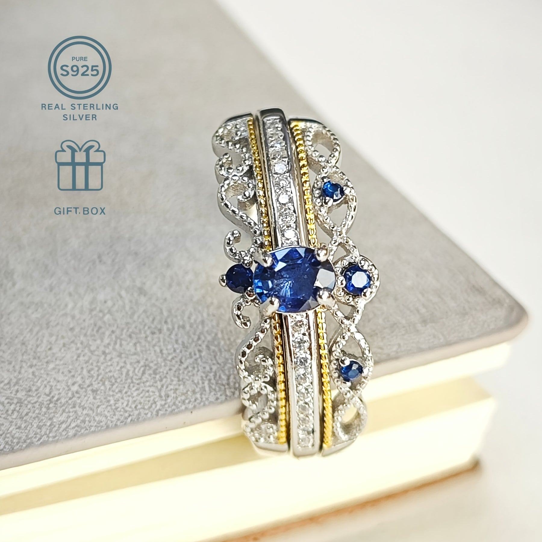 Elegant and stylish, this handcrafted open ring features a unique pattern with natural stone inlay. Made of 925 sterling silver with a silvery plated finish, it is ideal for gifting on Valentine's Day.