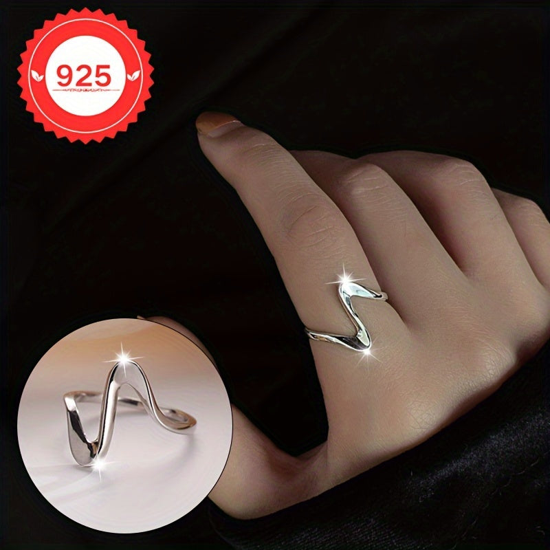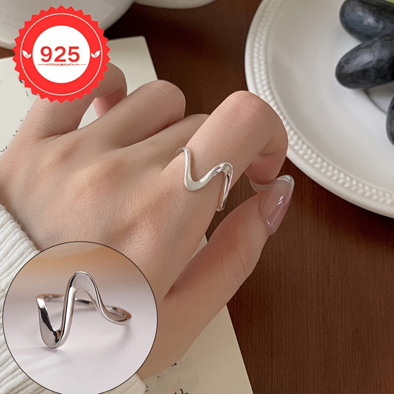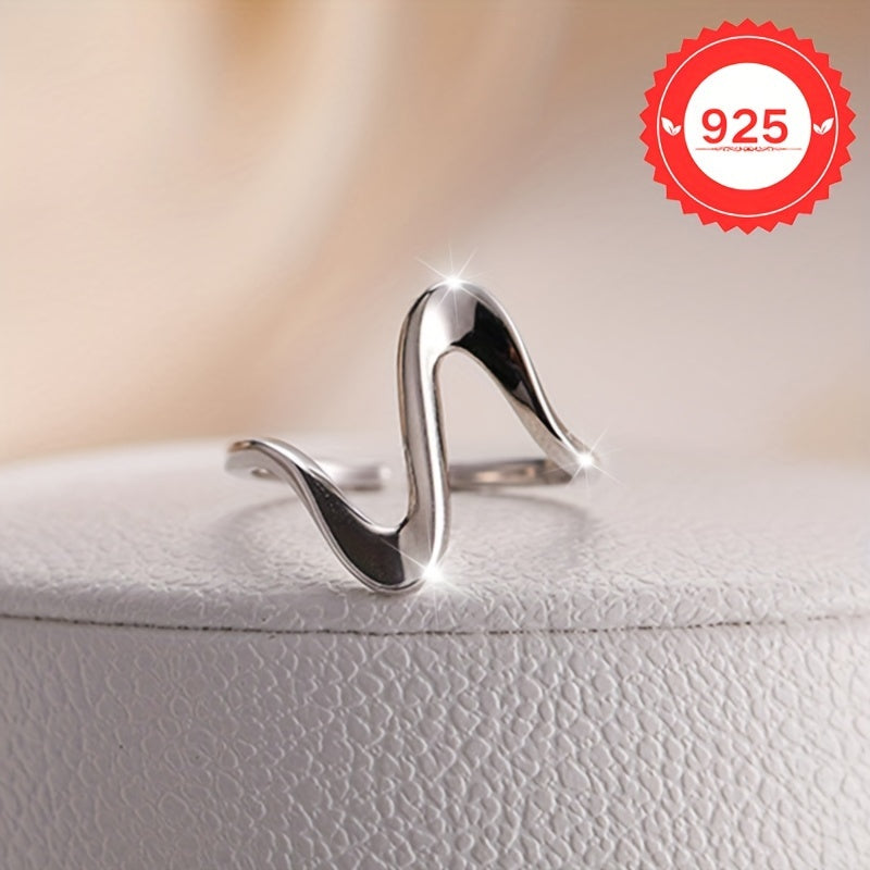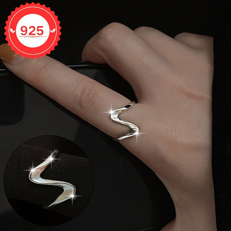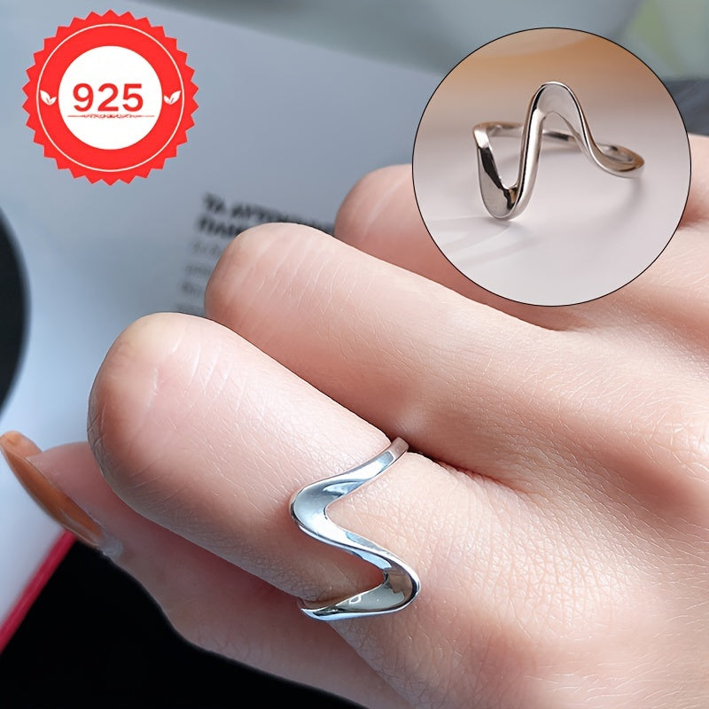 This minimalist ring is made of high-quality S925 silver featuring a wave line design. It's adjustable to fit most sizes.
