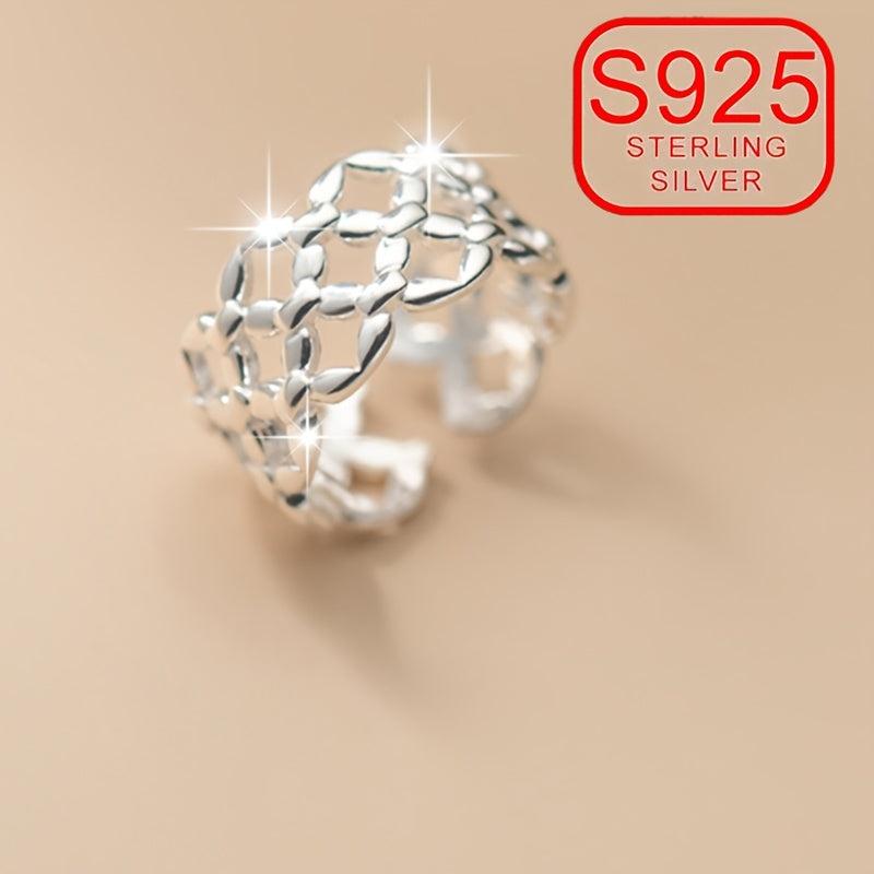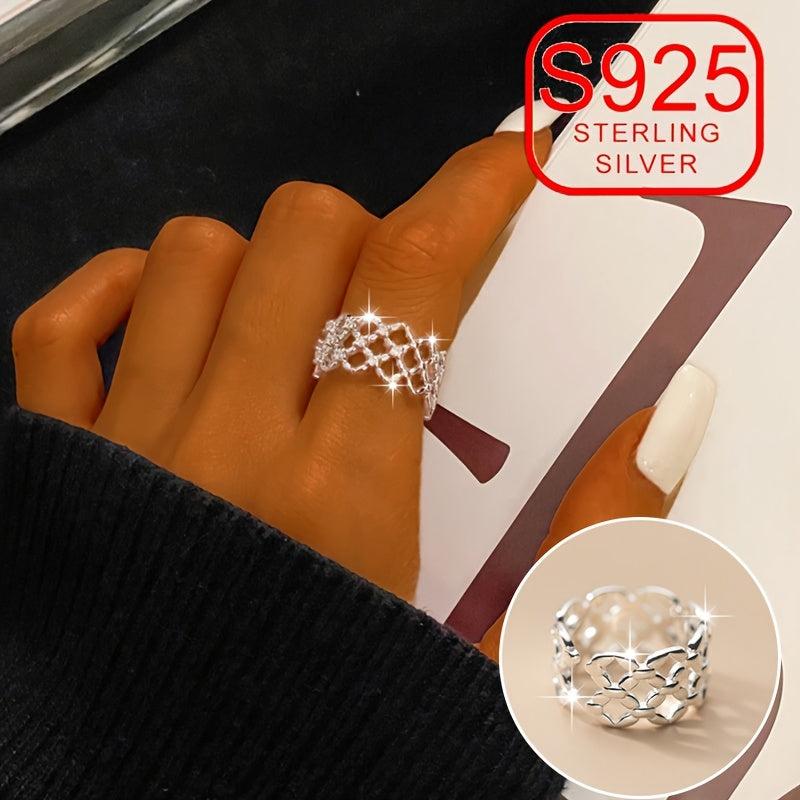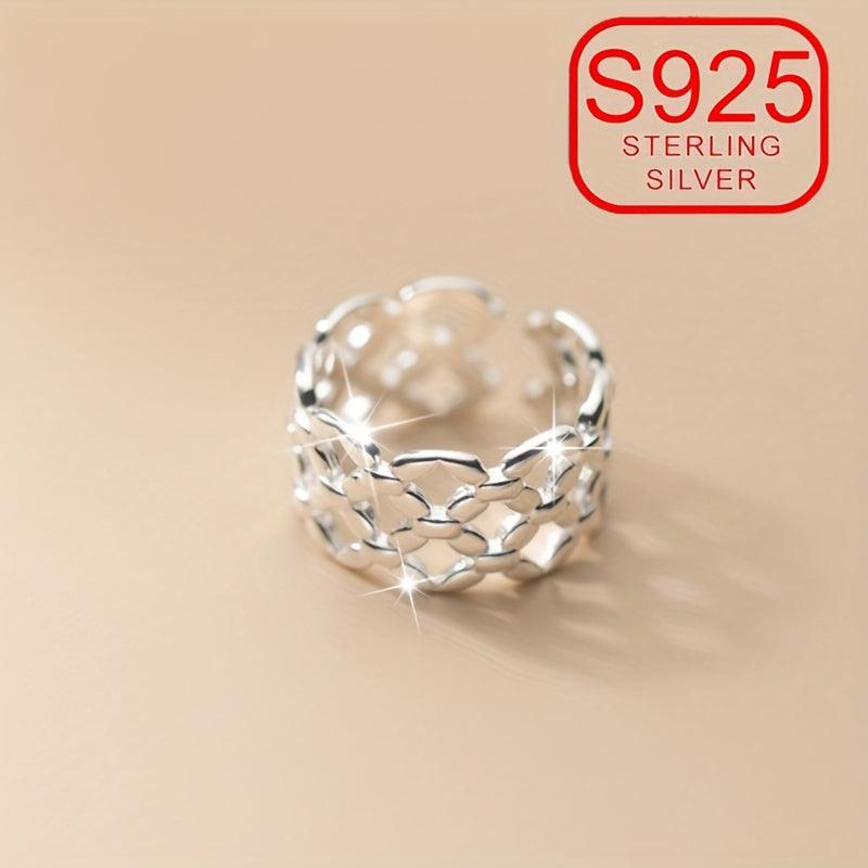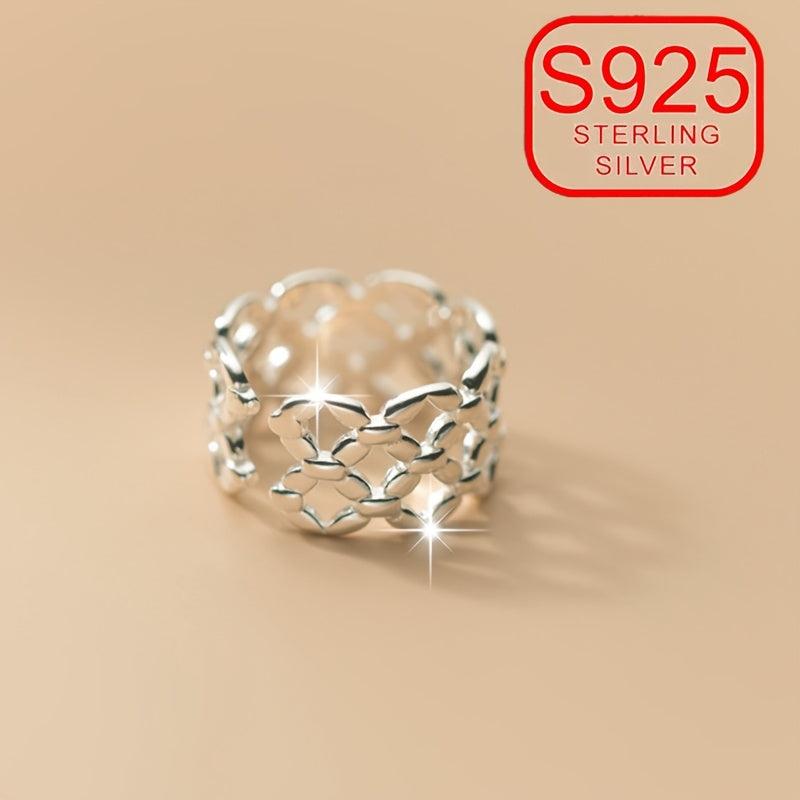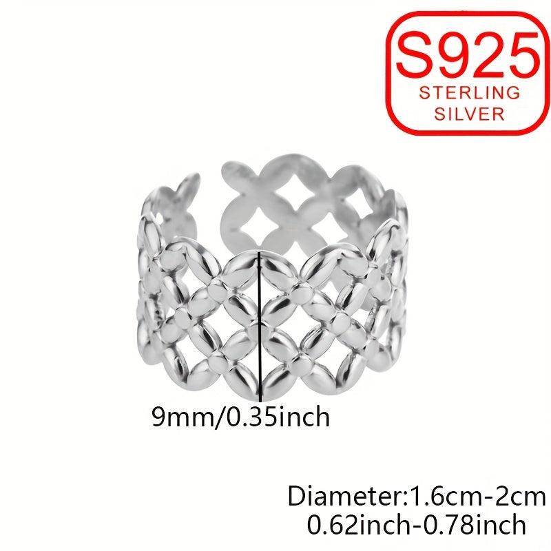 Openwork Geometric Shape Wide Face Adjustable 925 Silver Ring
