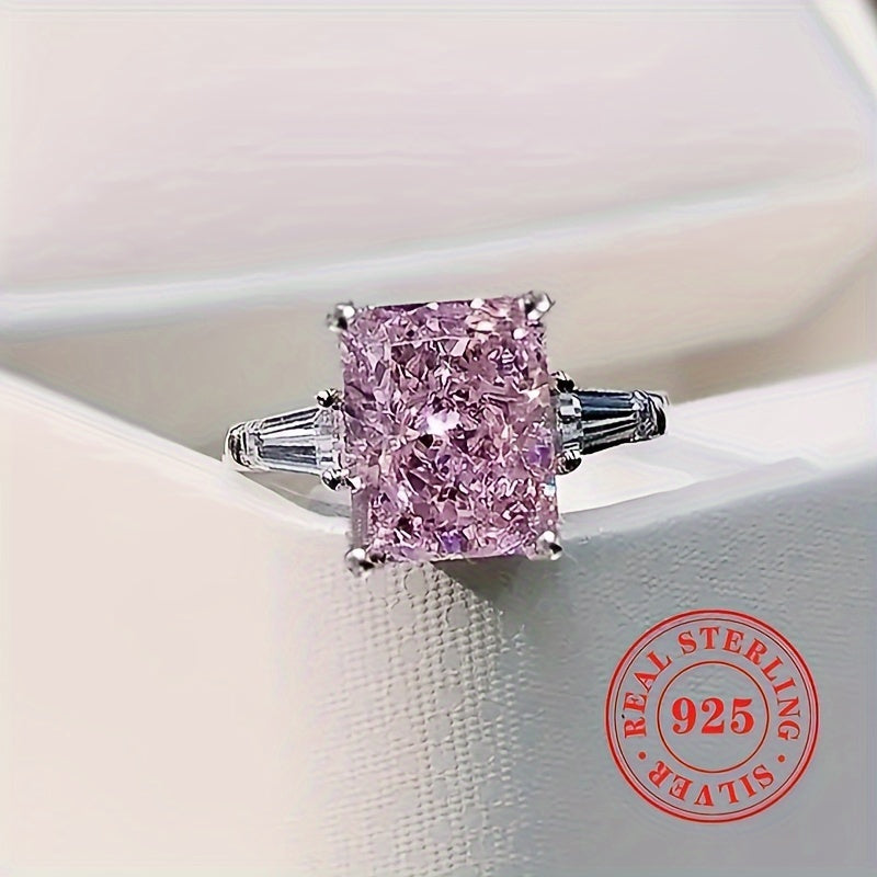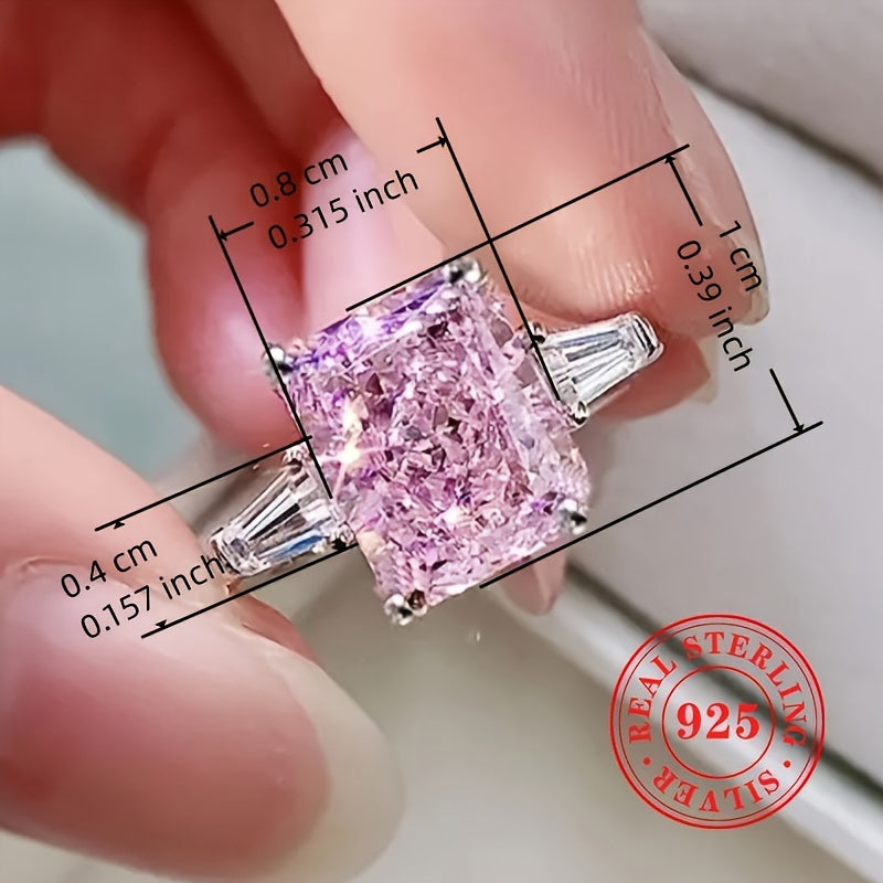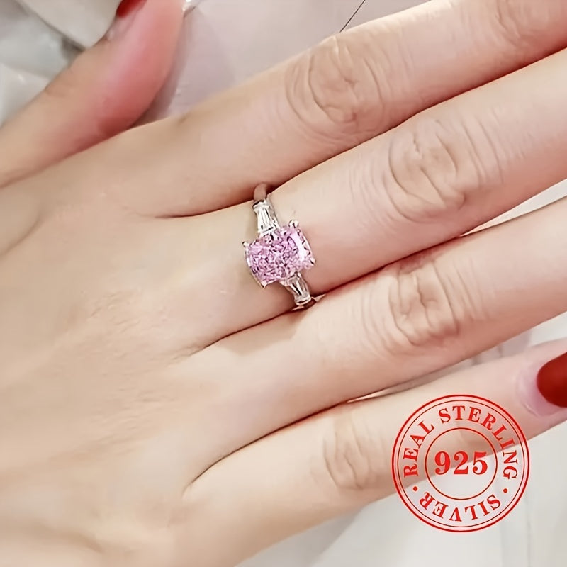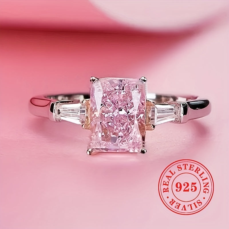 Elegant women's engagement ring with a pink synthetic zirconia stone. Crafted from high-quality S925 sterling silver, this bridal jewelry piece is perfect for weddings and special occasions.