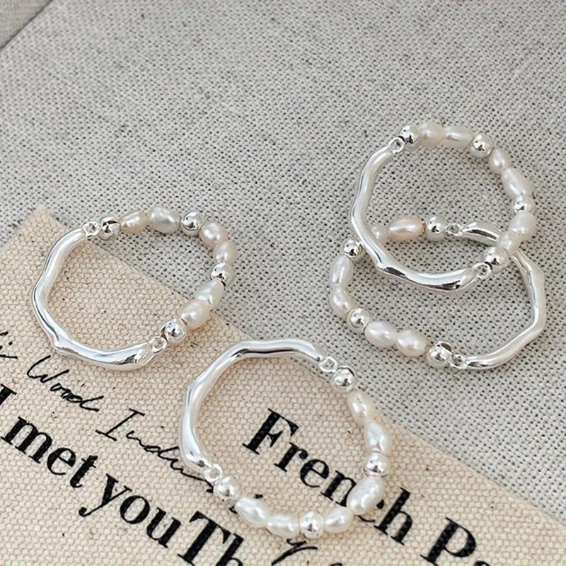 Elegant ring that combines rice bead irregular splicing design for women, providing a versatile and stylish addition to any outfit.