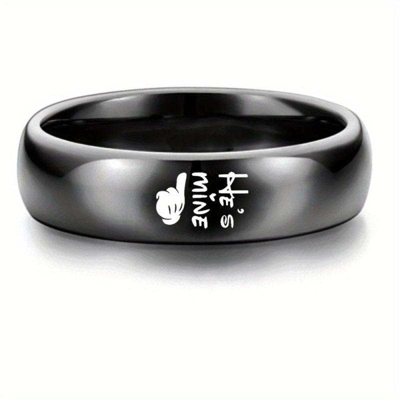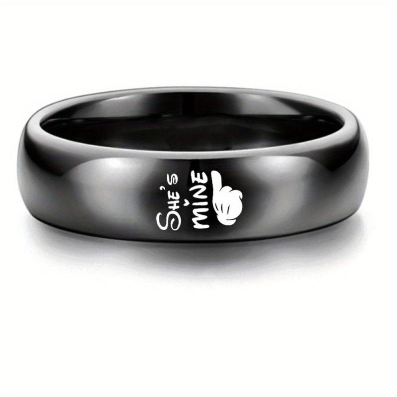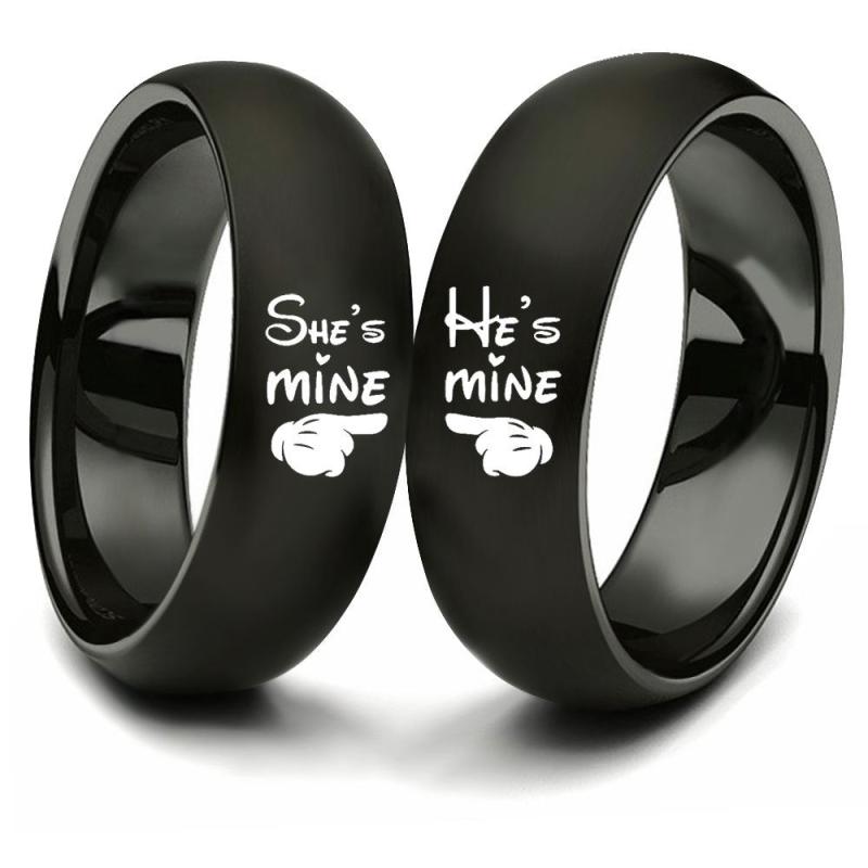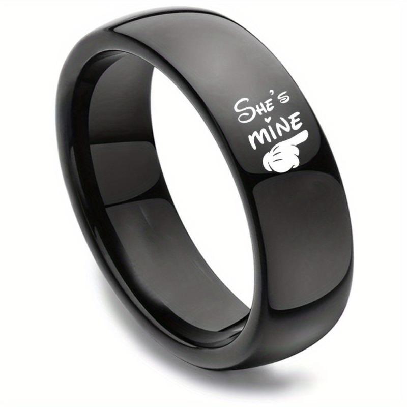 Express your love with these 'She's Mine He's Mine' stainless steel rings, a perfect gift for couples.
