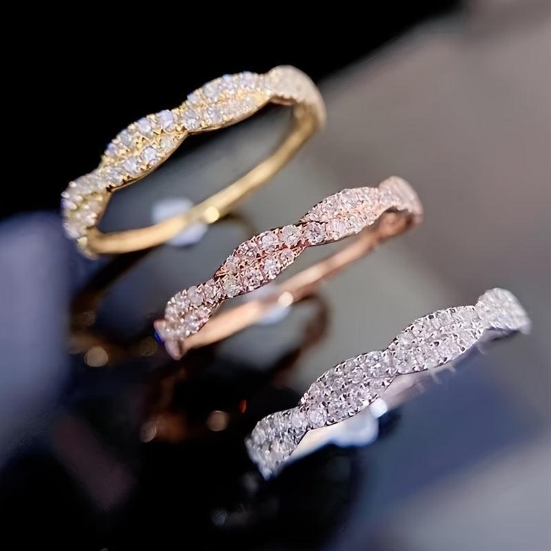 • Elegant twisted zirconia ring for women