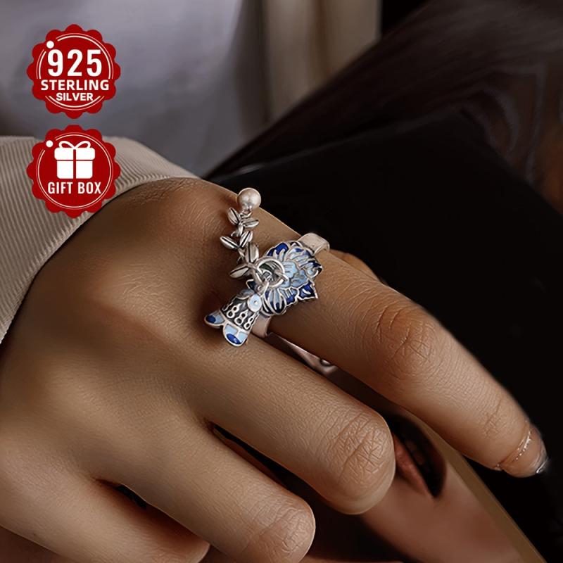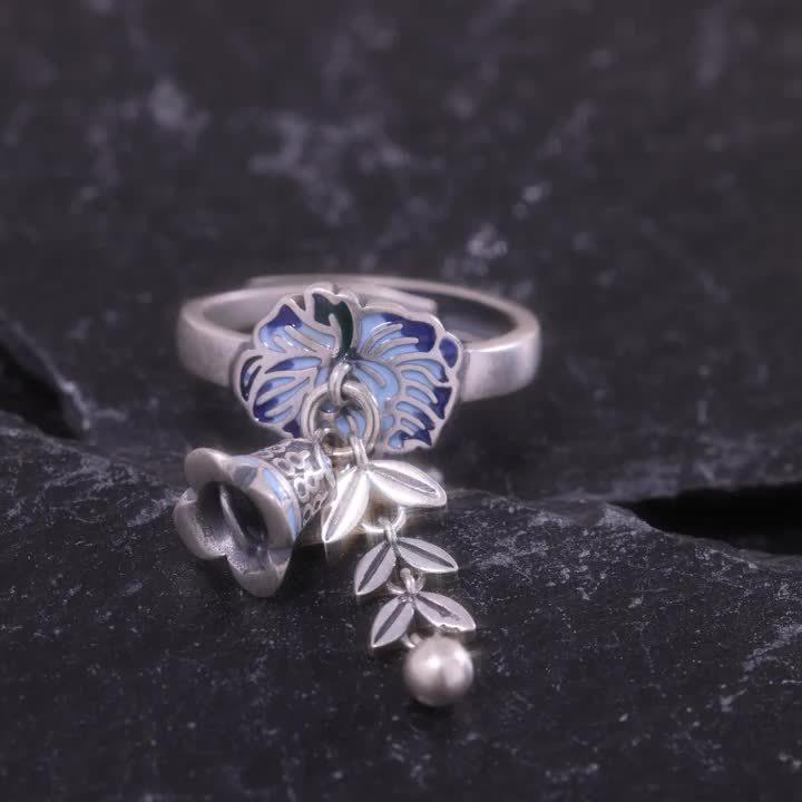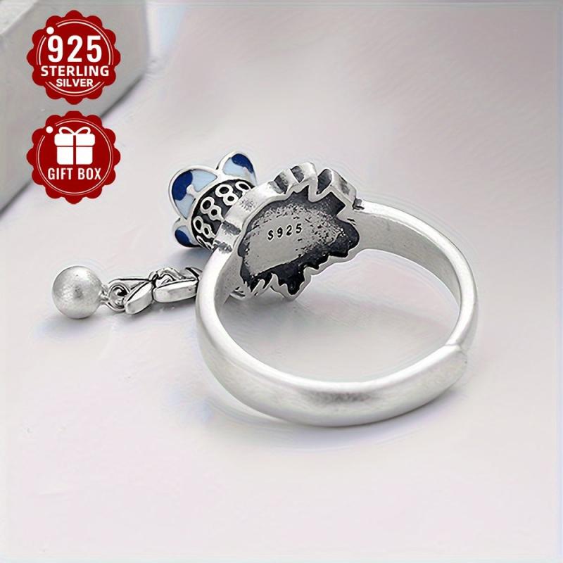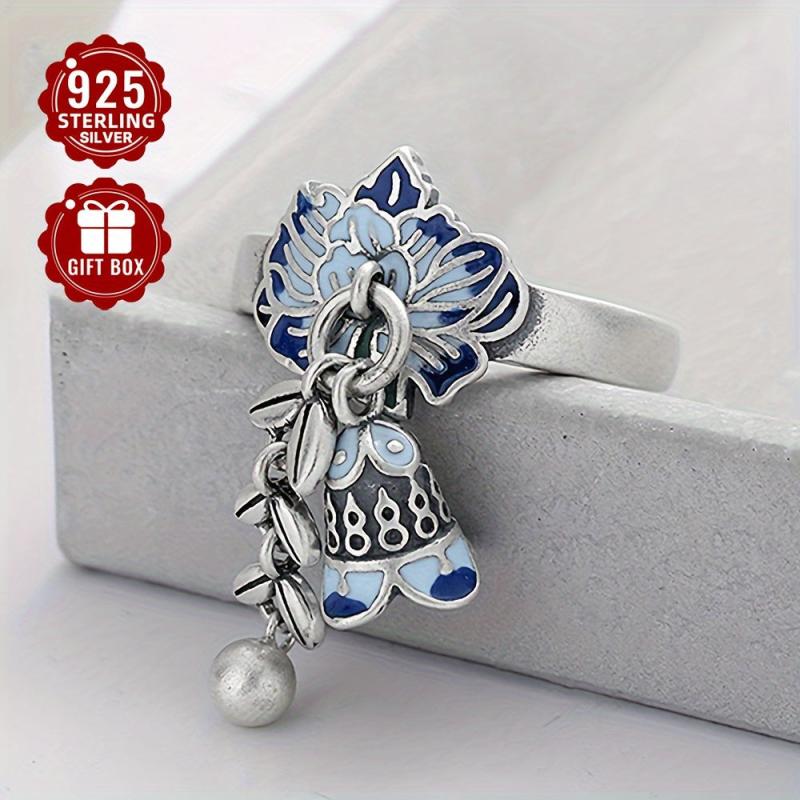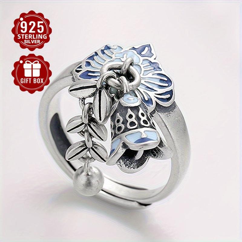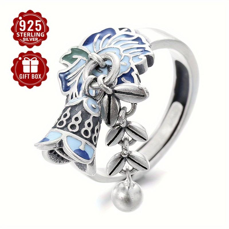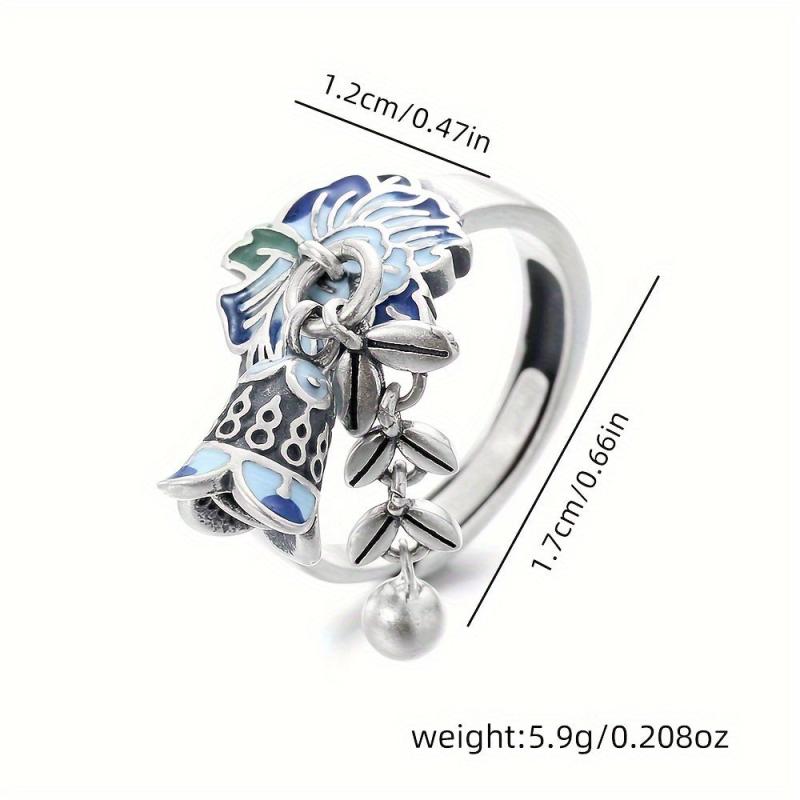 This exquisite S925 pure silvery open ring features a creative design with a wheat sheaf flower and tassel bell, ideal for adding a vintage touch to your outfit. Perfect for banquet activities.