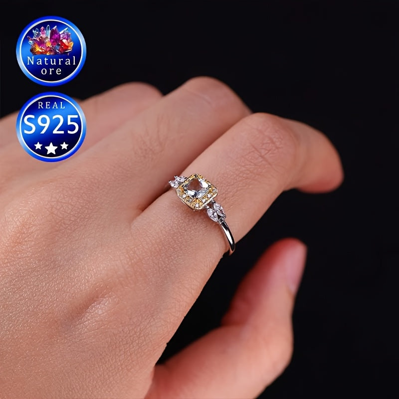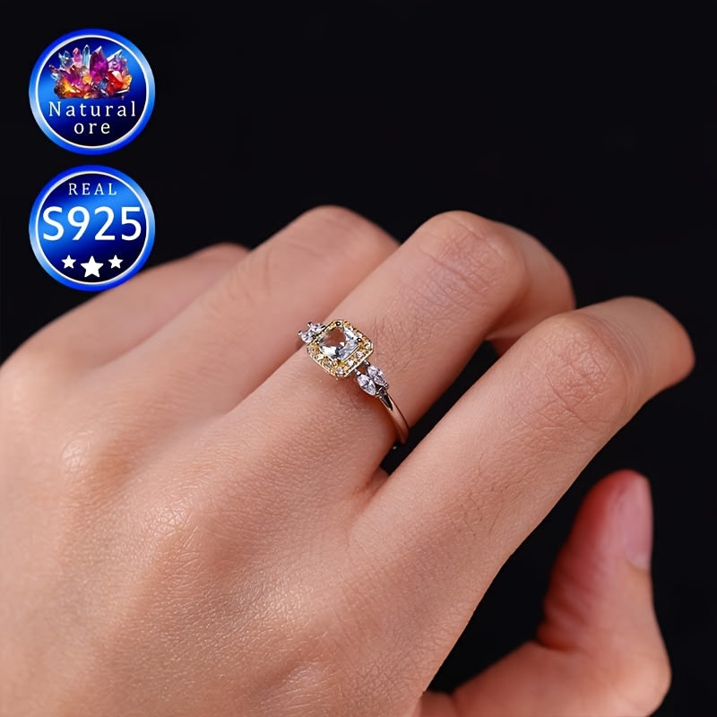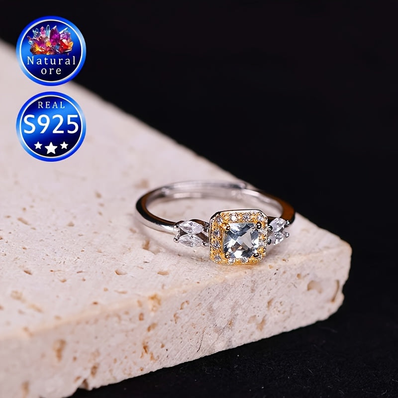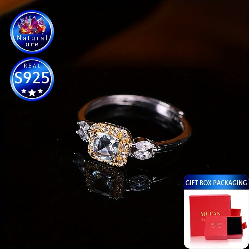 This beautiful ring features a light blue gemstone set in S925 silver. Perfect for weddings, parties, and special occasions.