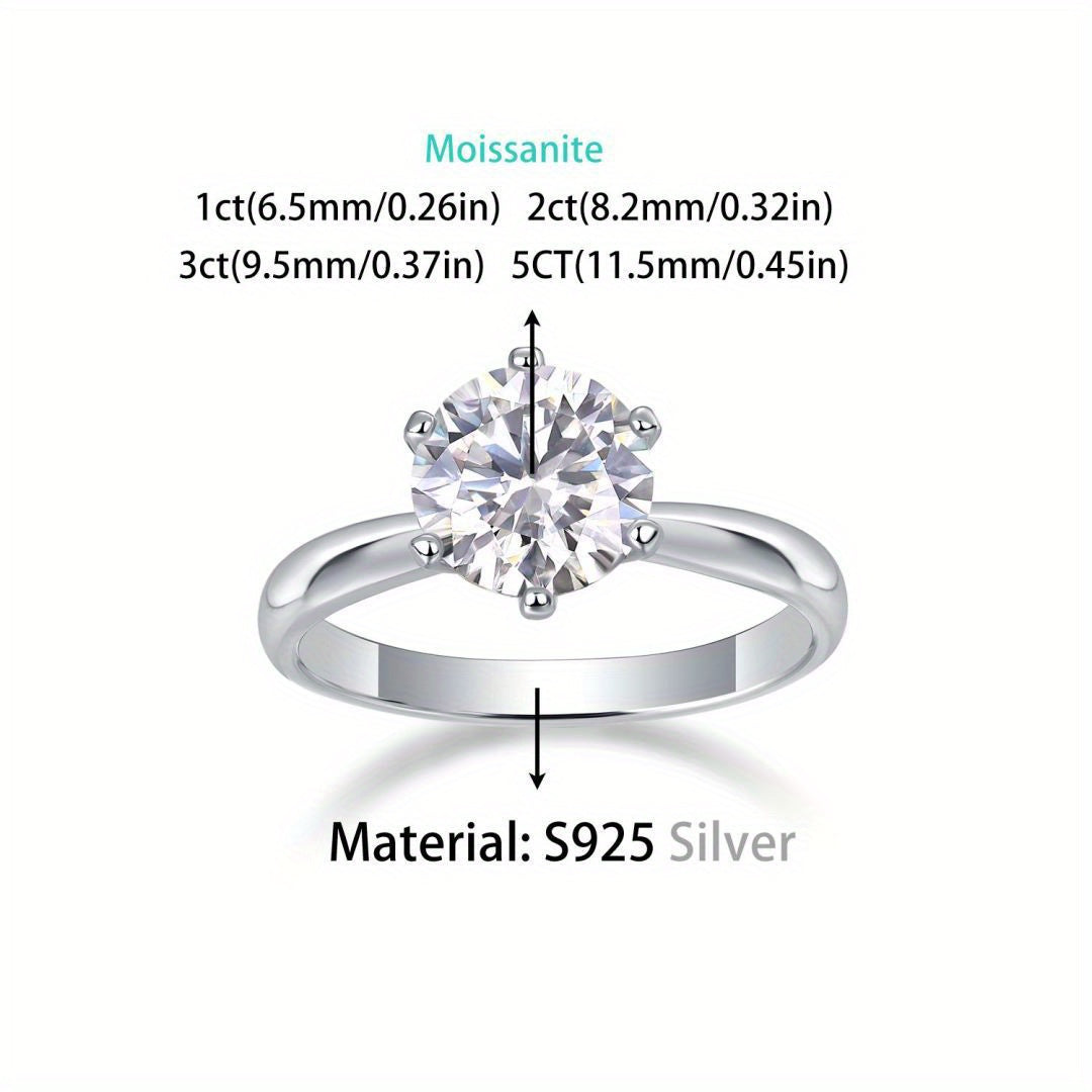 This S925 silver ring features a light Moissanite stone set in a six claw design. Suitable for both men and women, this ring offers a timeless and elegant look that won't fade.