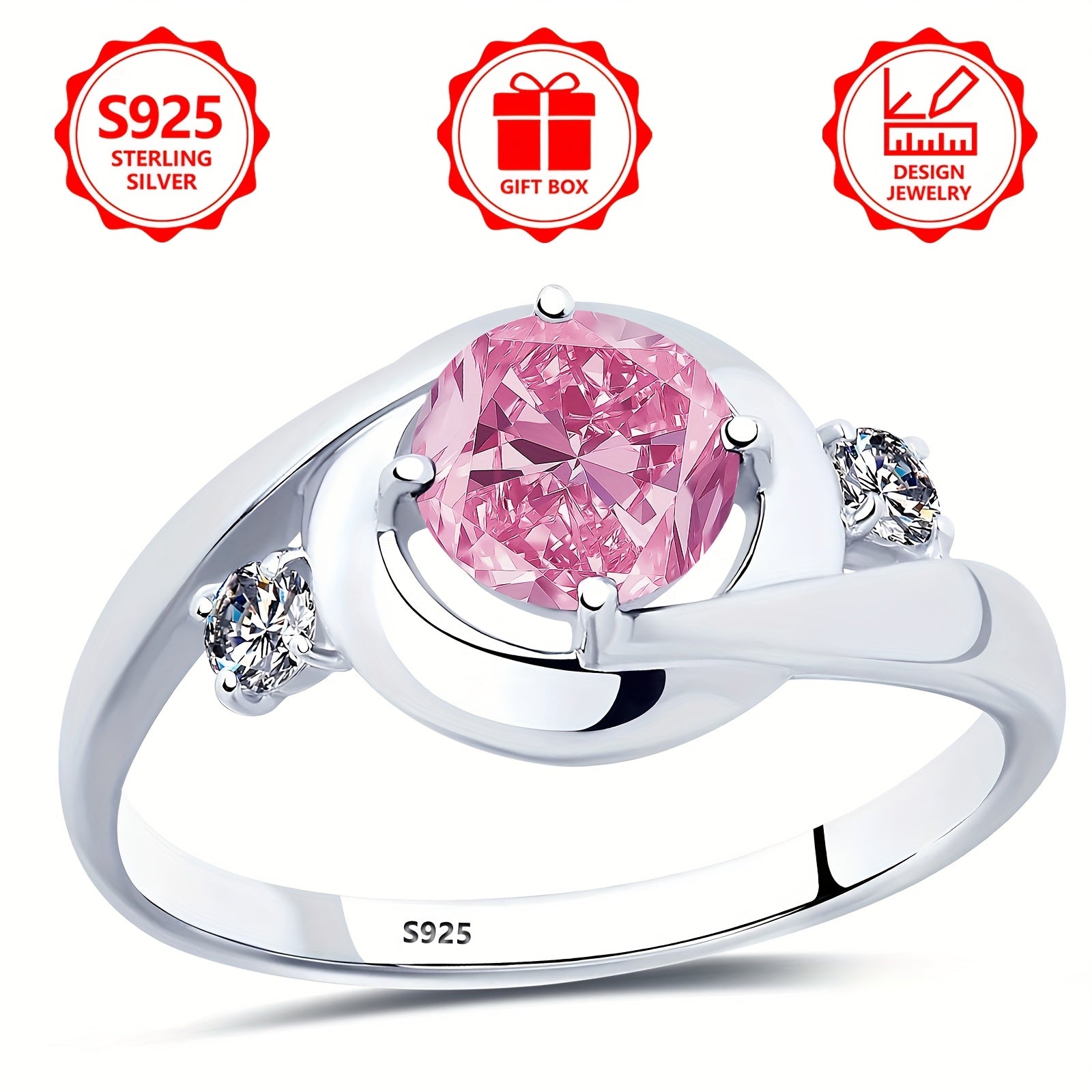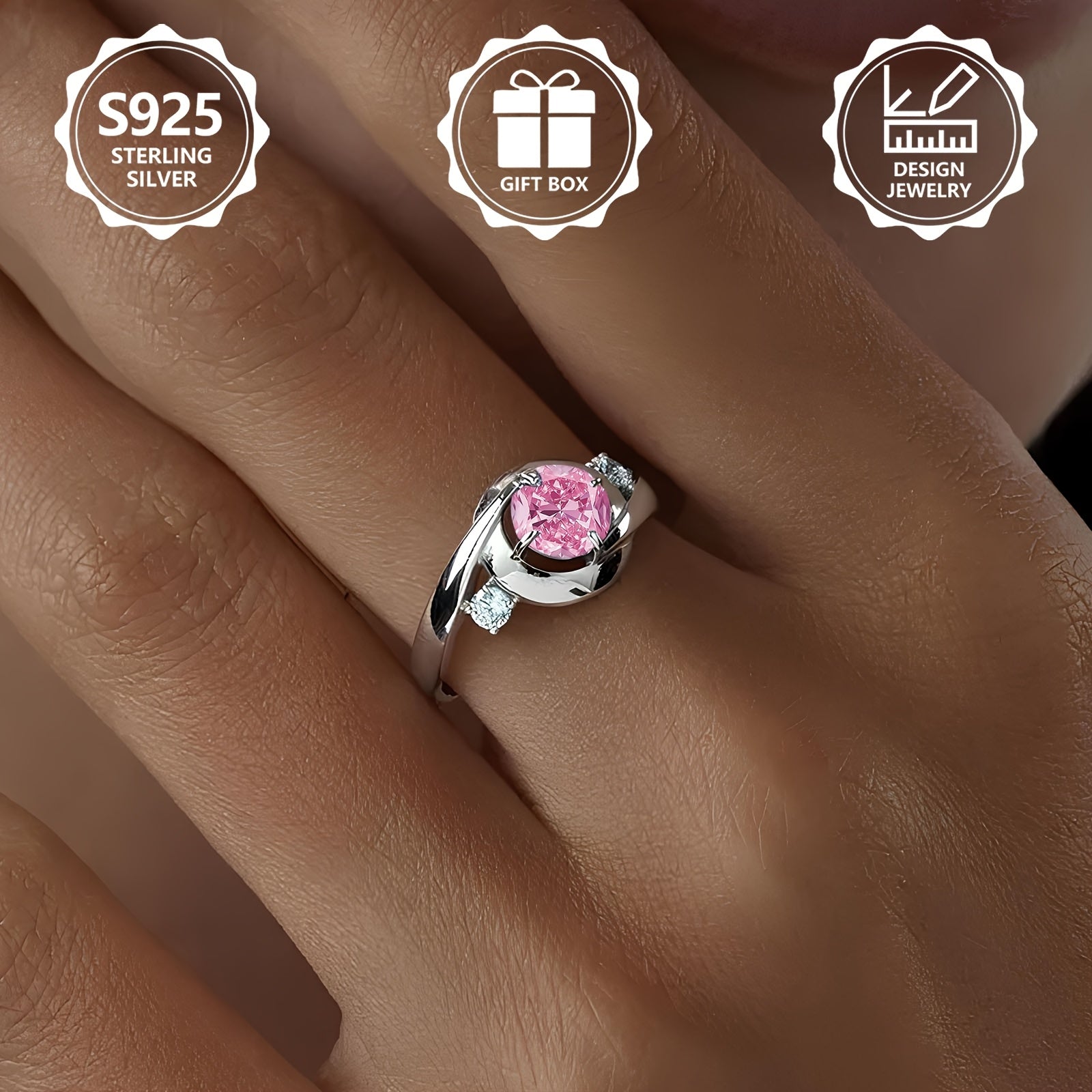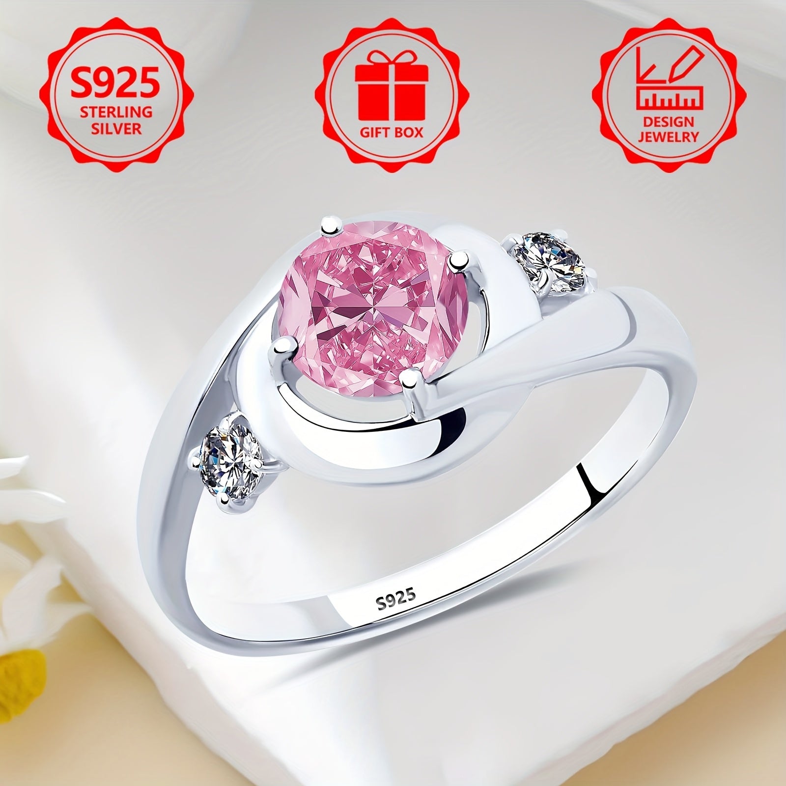 This stunning S925 silver ring features an eternal pink synthetic zirconia stone, making it perfect for weddings, promises, or engagements. It also makes a thoughtful jewelry gift for your loved one.