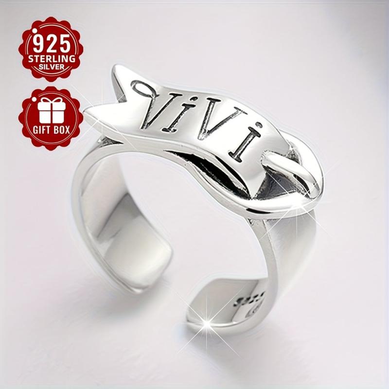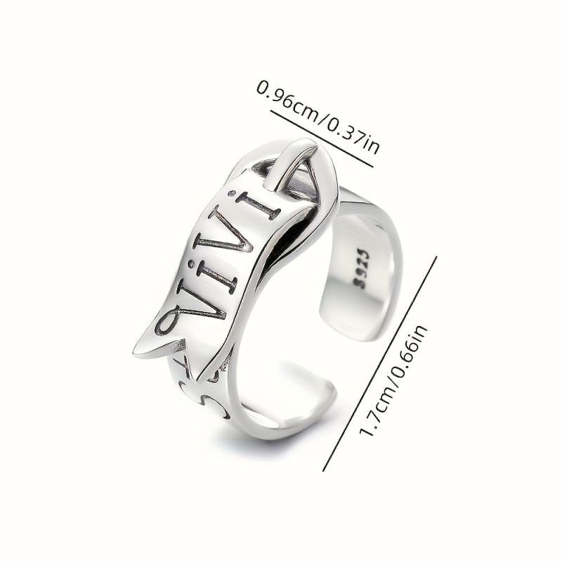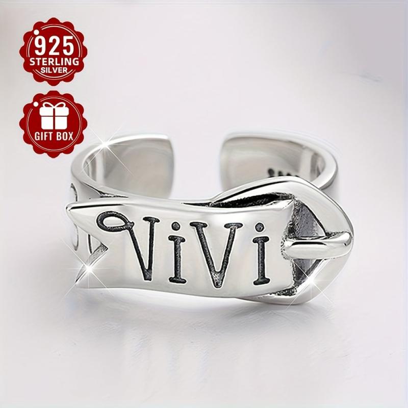 S925 Silver VIIVK Adjustable Open Ring Creative Buckle Letter Unisex