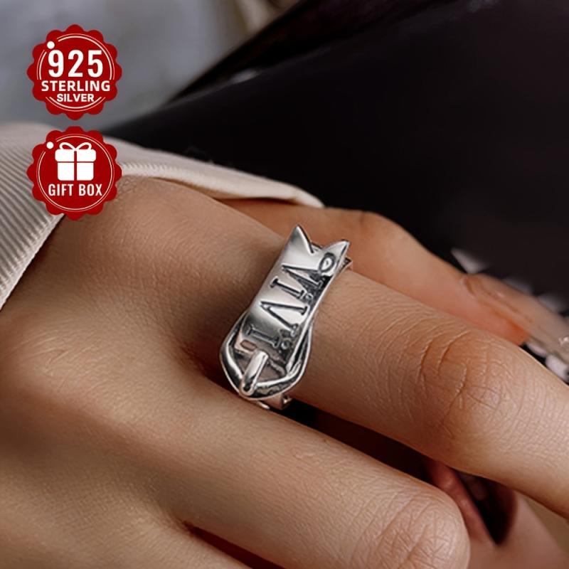 This stylish adjustable open ring features a creative buckle design with letter accents. Made from high-quality S925 sterling silver, it is suitable for both men and women.