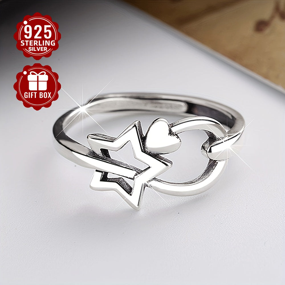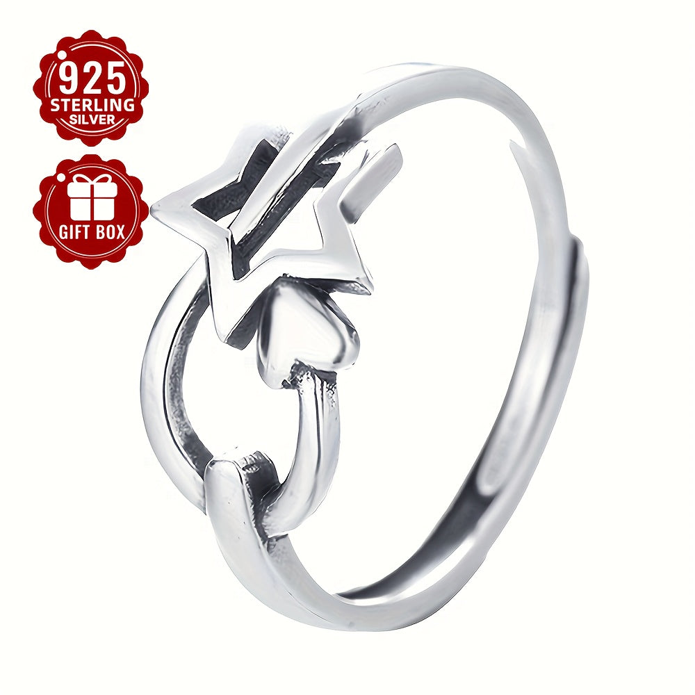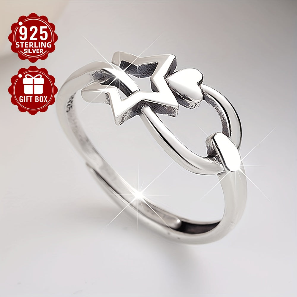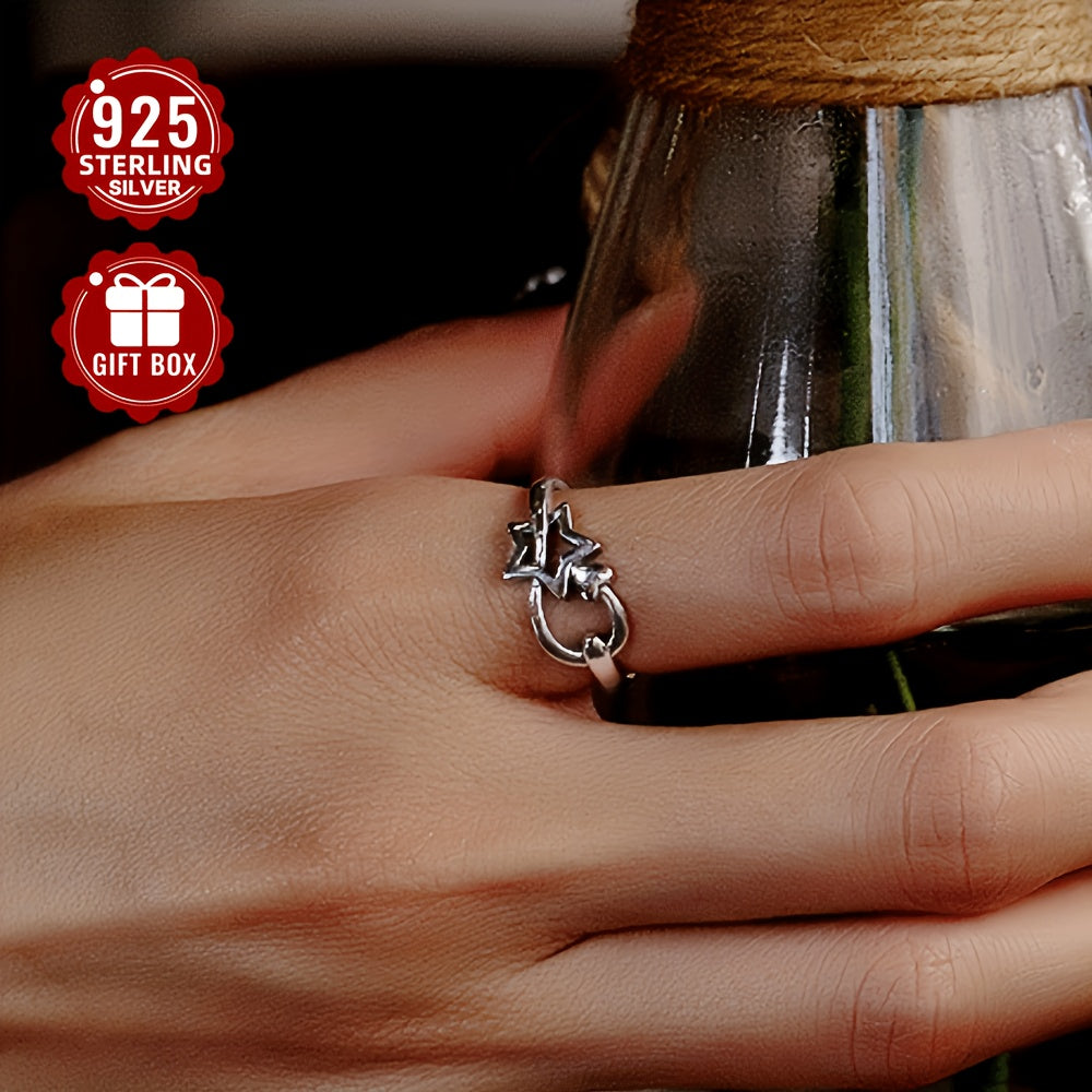 Vintage inspired pentagram star ring made of S925 sterling silver. This creative and distressed design is perfect for a birthday or holiday gift. Weighs about 1.9g.