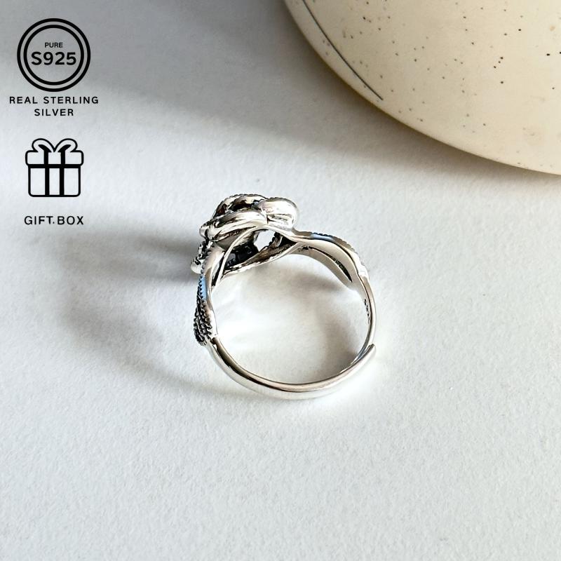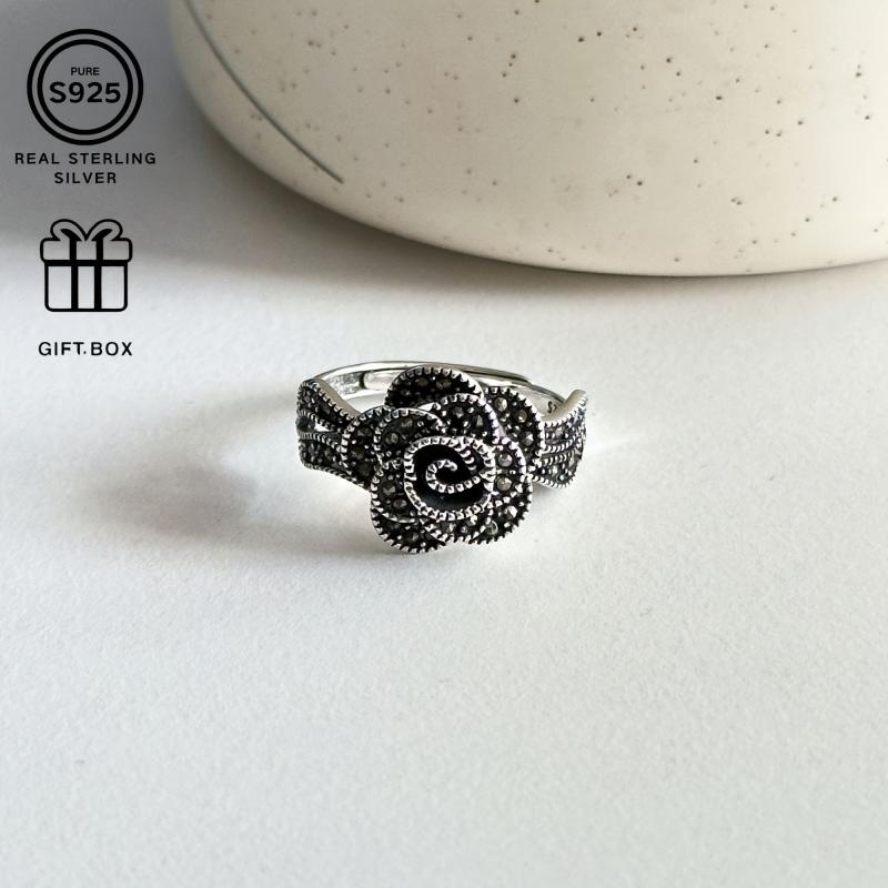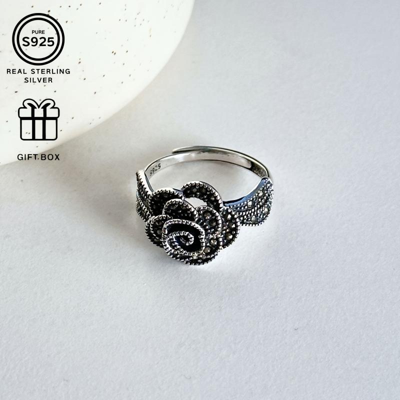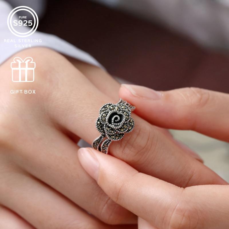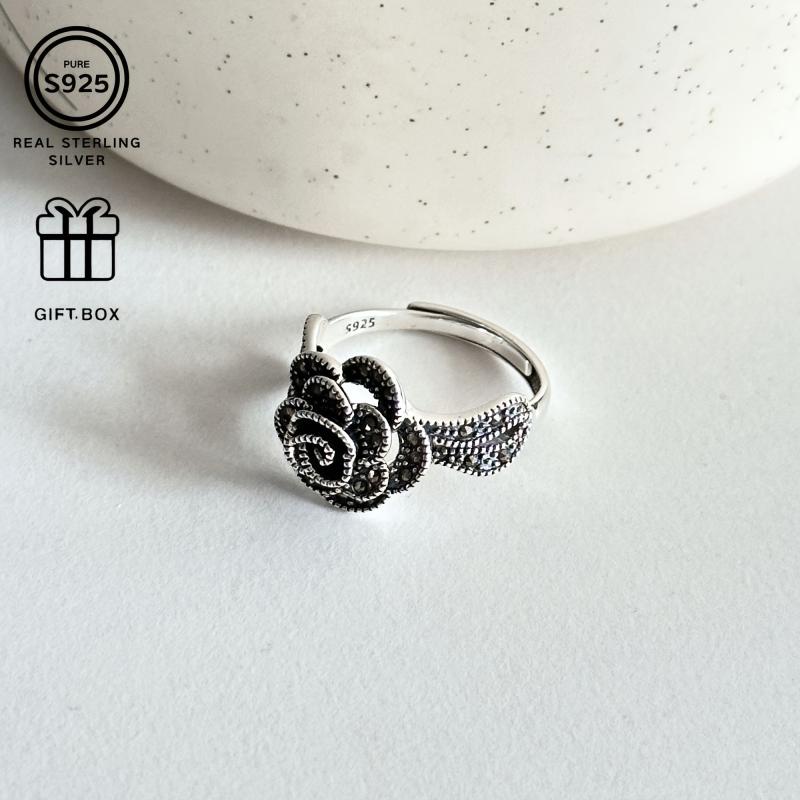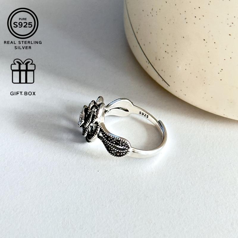 S925 Sterling Silver Rose Ring Vintage Boho Style All Season Wear
