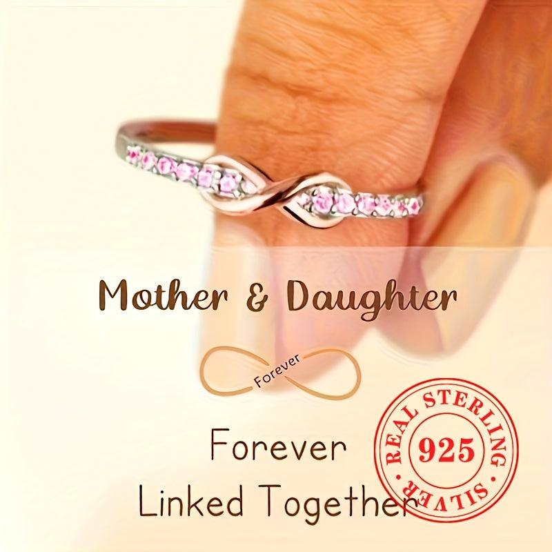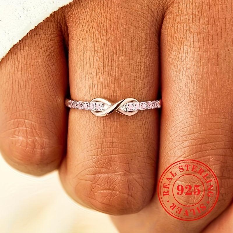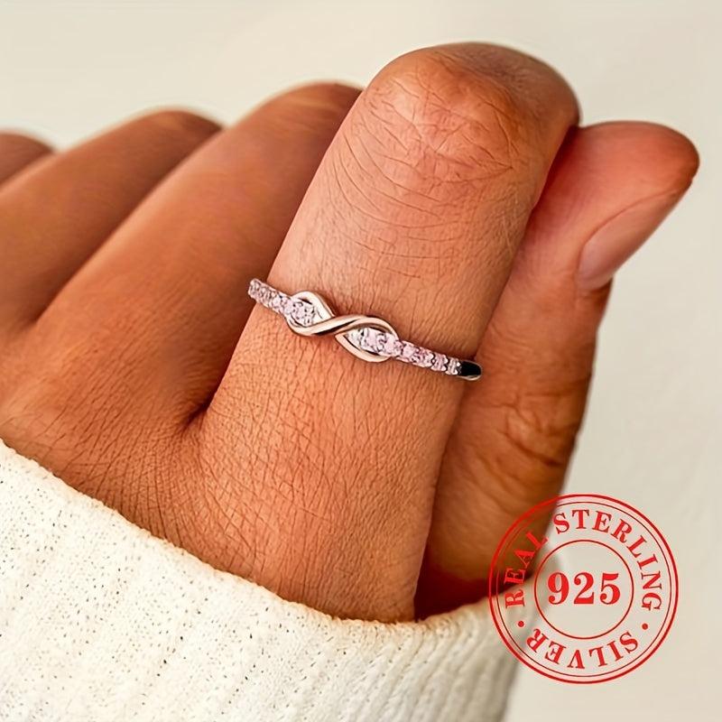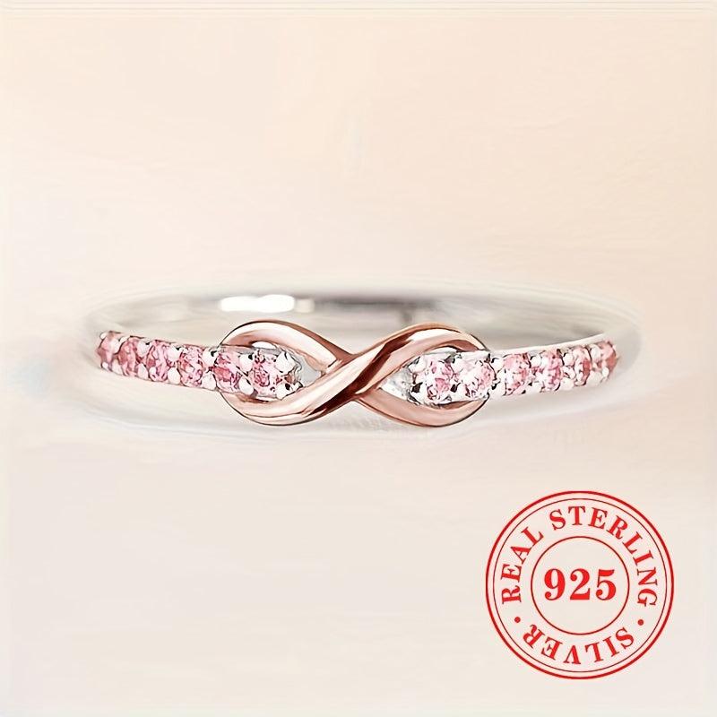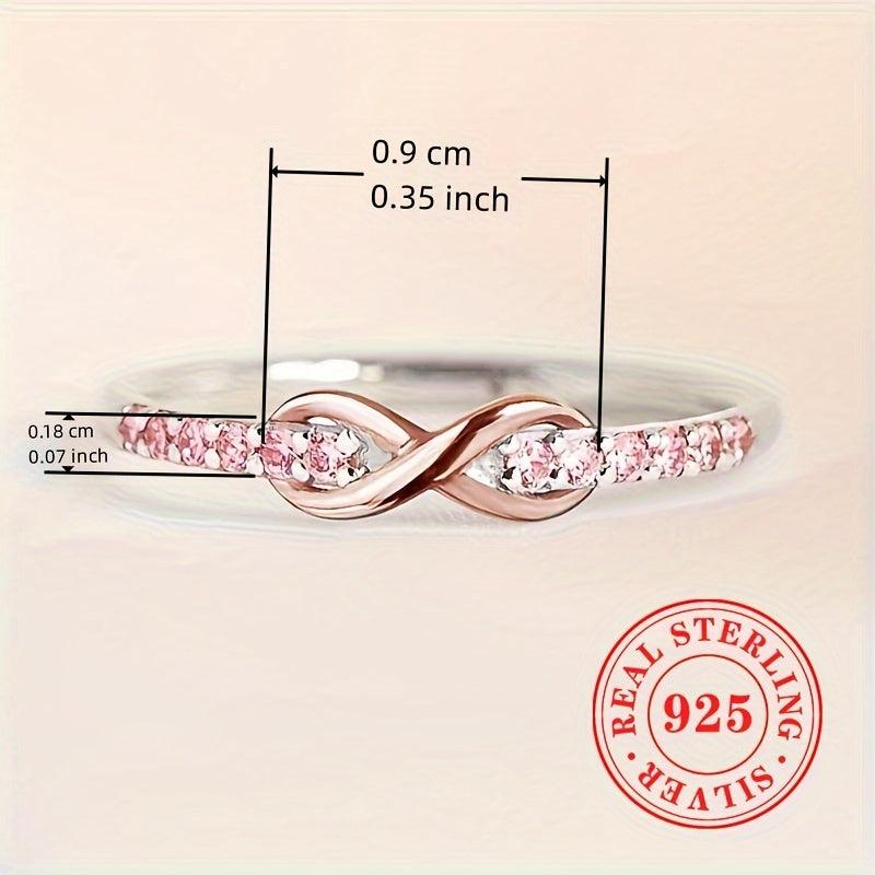 S925 Sterling Silver Two Tone Infinity Ring with Pink Gemstones