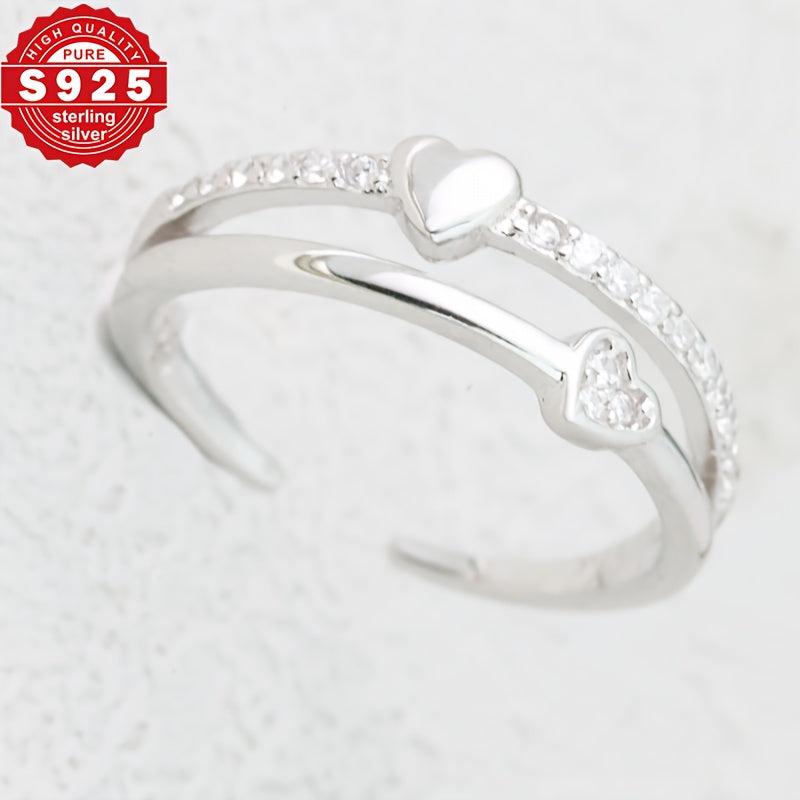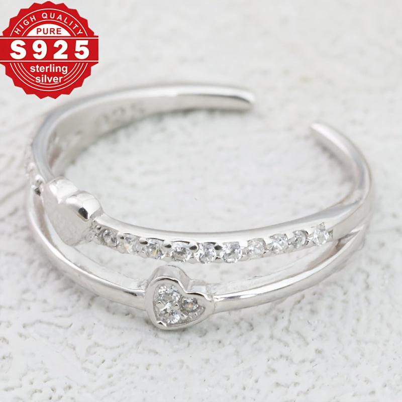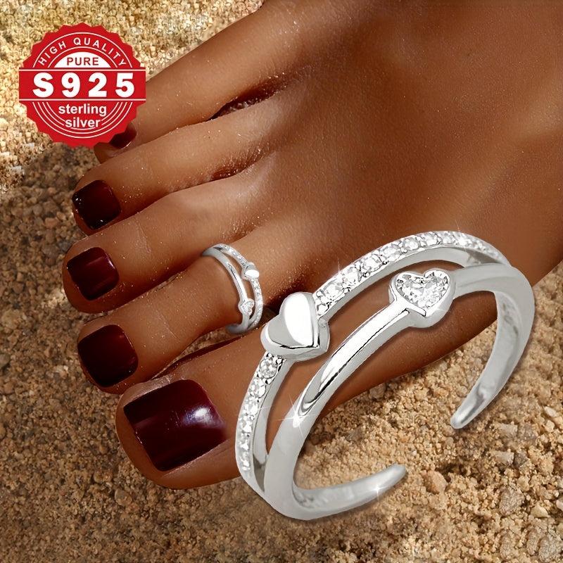 S925 Women's Foot Ring Double Layer Love Zirconia for Beach Wear