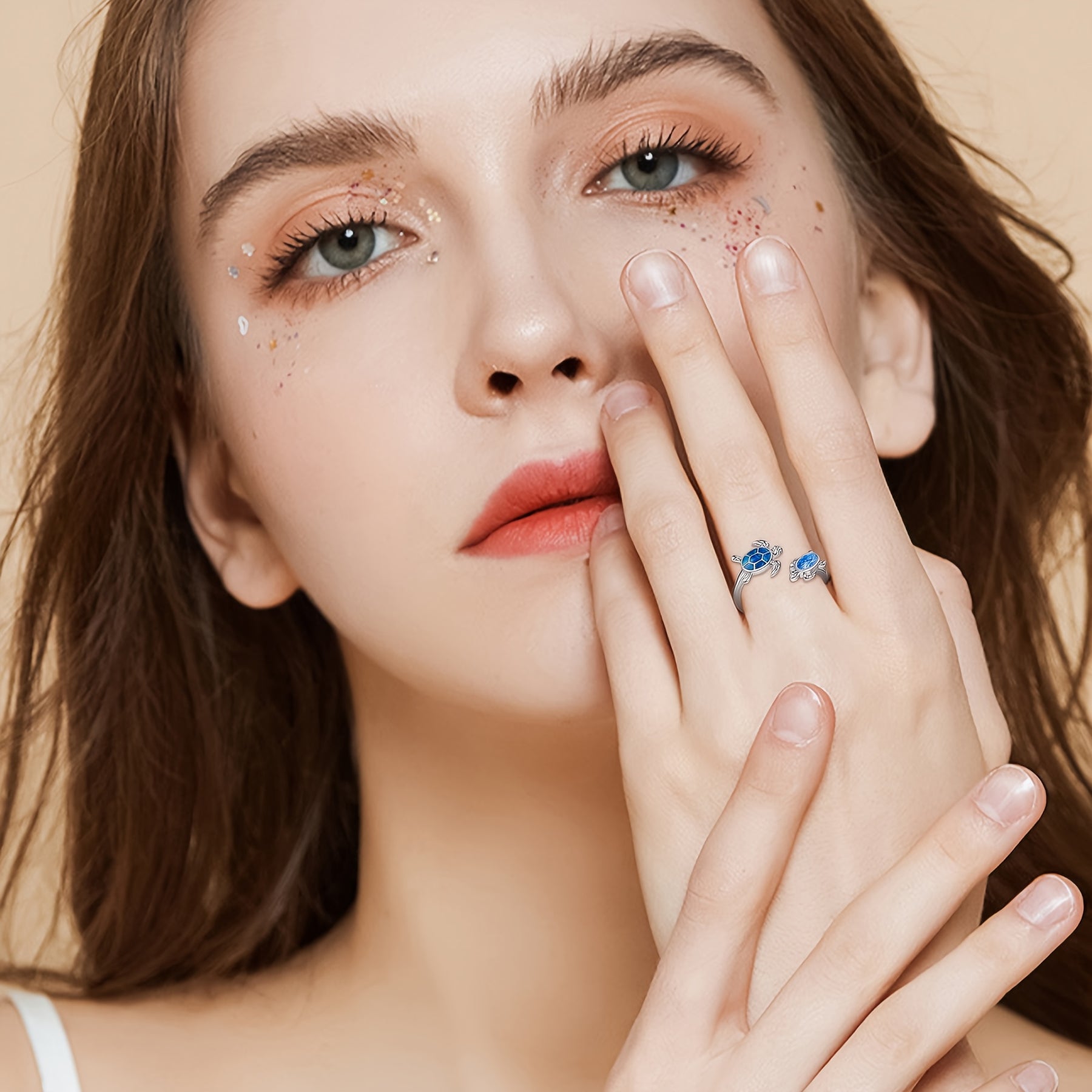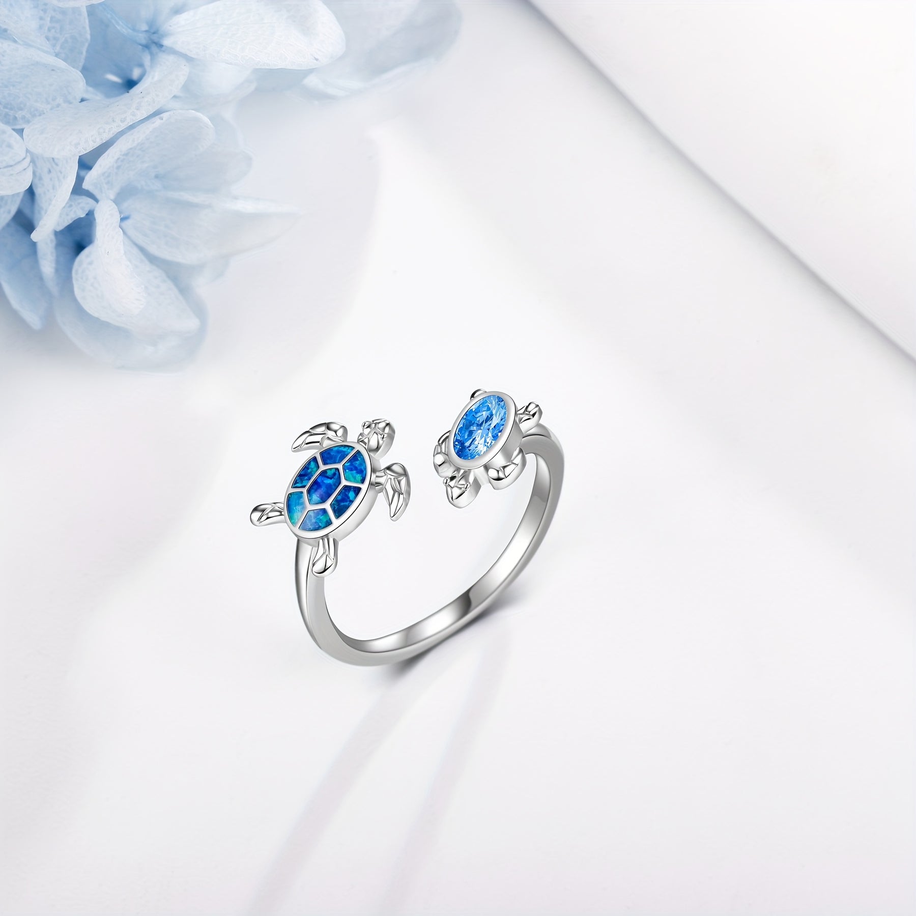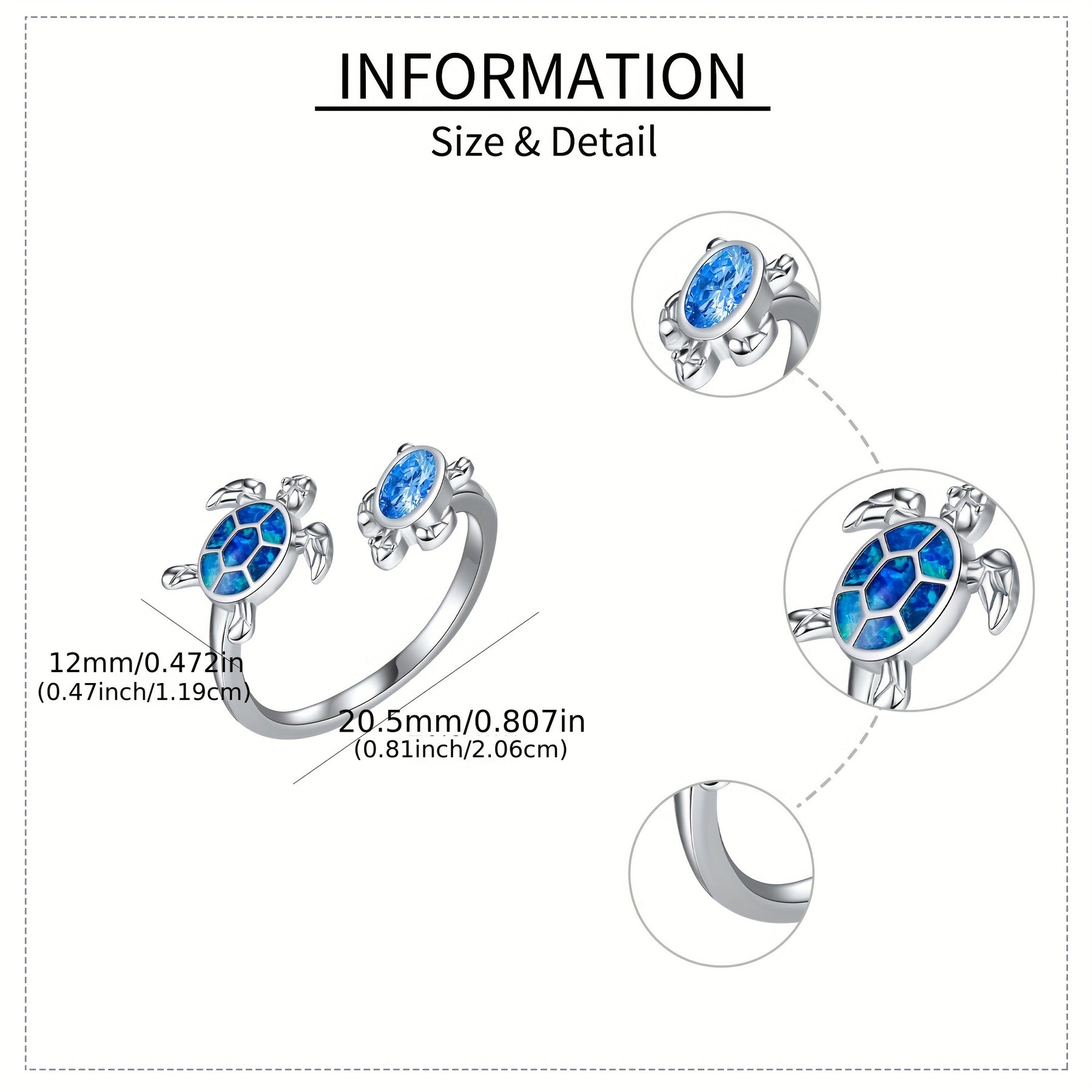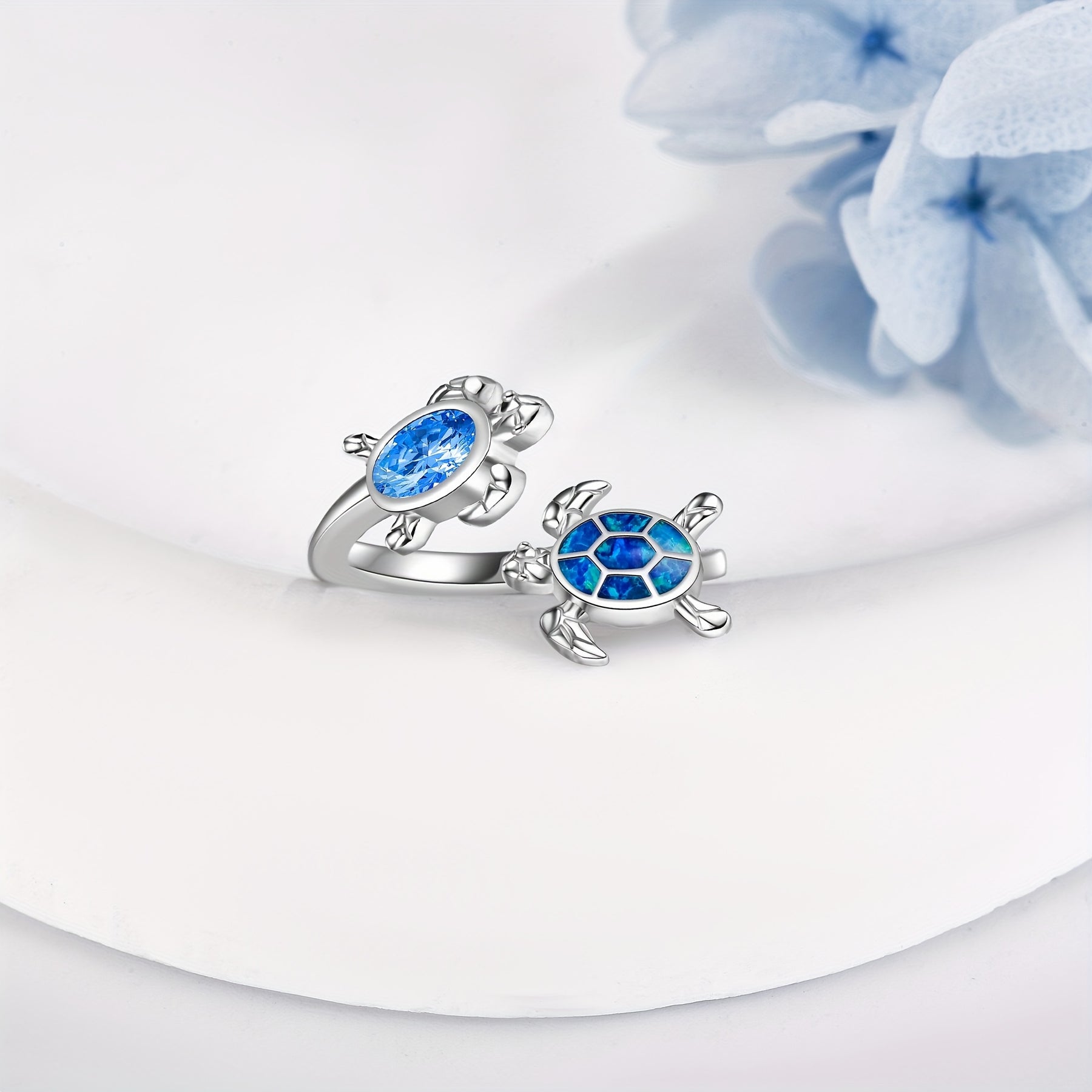 This stunning Sea Turtle Ring is crafted in 925 sterling silver with a synthetic opal setting. A perfect gift for sea turtle and ocean enthusiasts, this adjustable ring is a beautiful piece of sea turtle jewelry.
