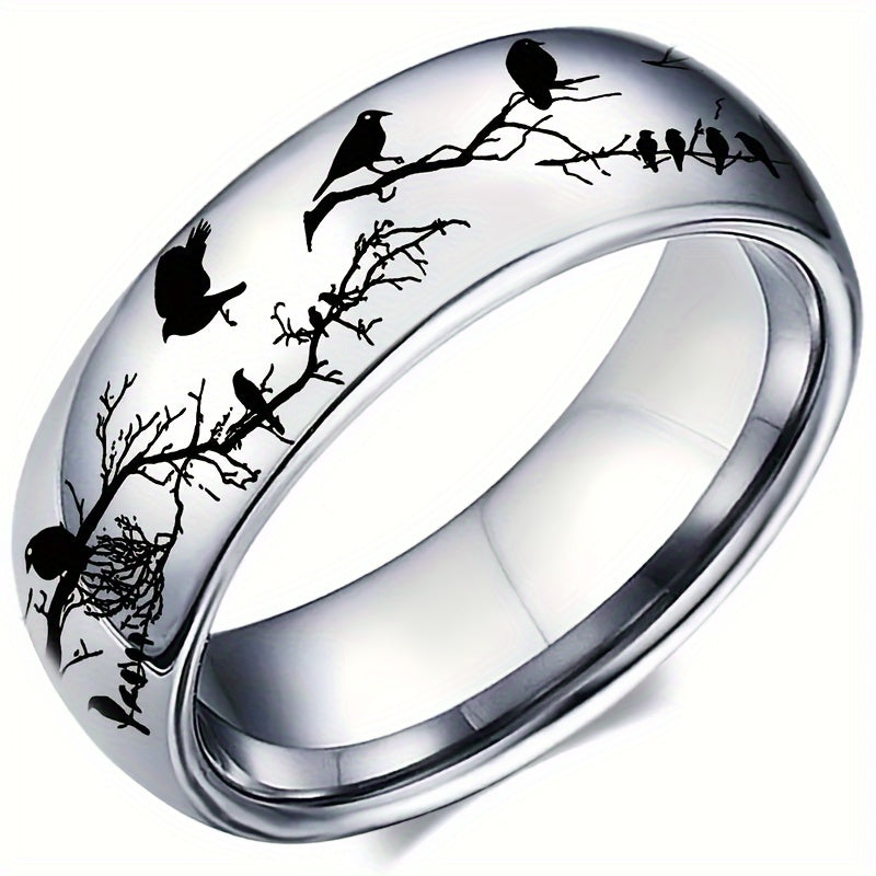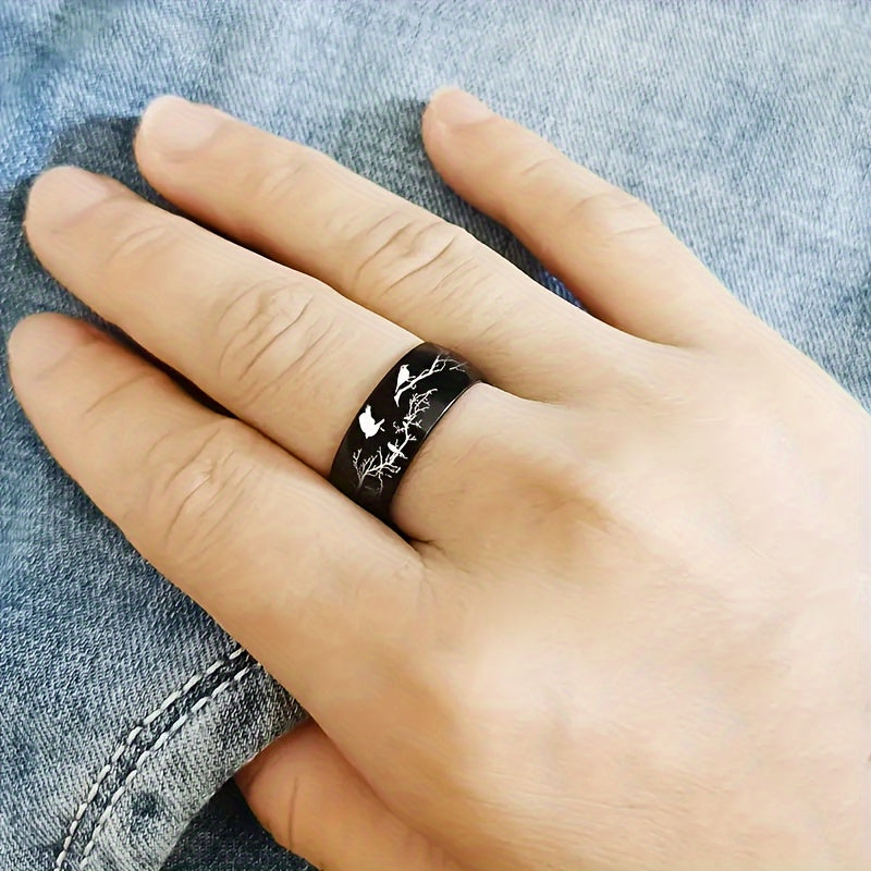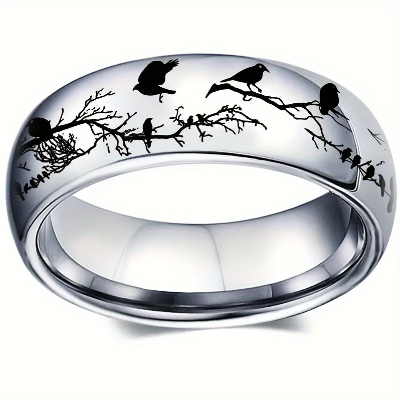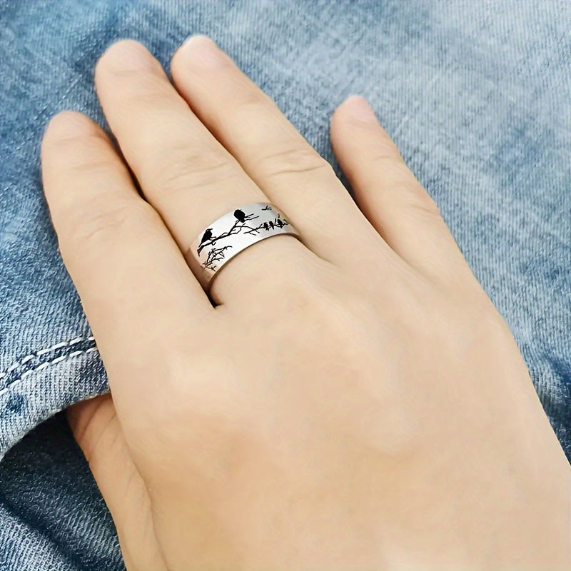 Add a touch of vintage charm to your look with this stainless steel ring featuring a bird and branch pattern. Perfect for parties and travel, this minimalist accessory will elevate any outfit.