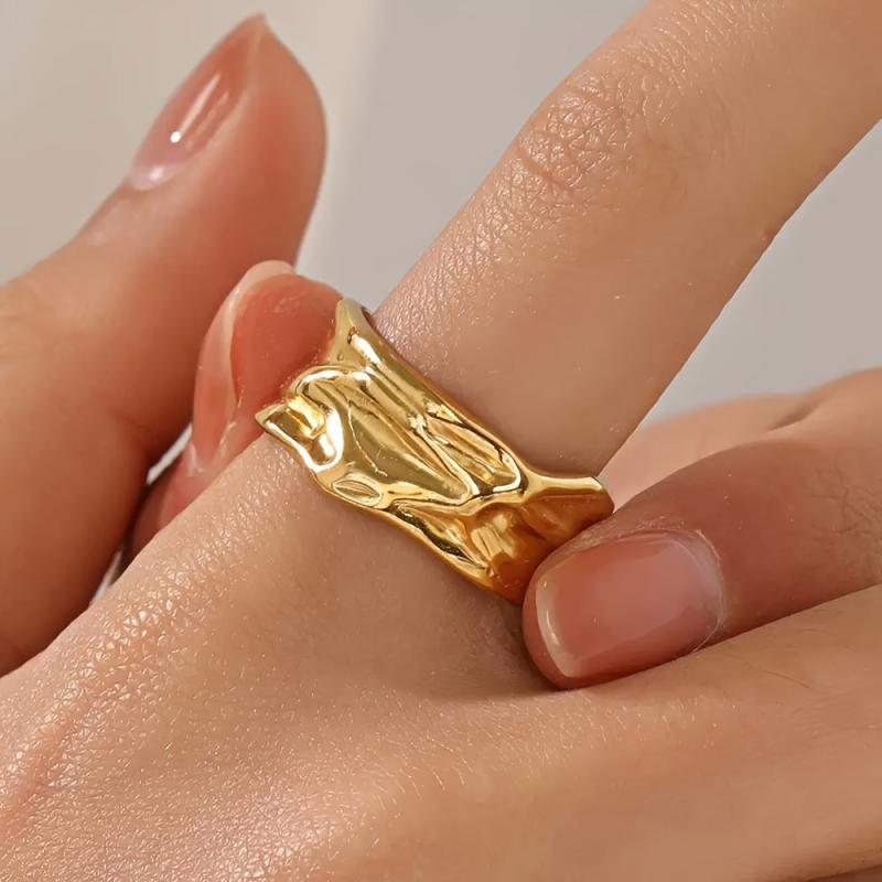 Elevate your style with this unique stainless steel ring featuring an irregular texture. Suitable for both casual attire and special occasions. Adjustable size for a perfect fit.