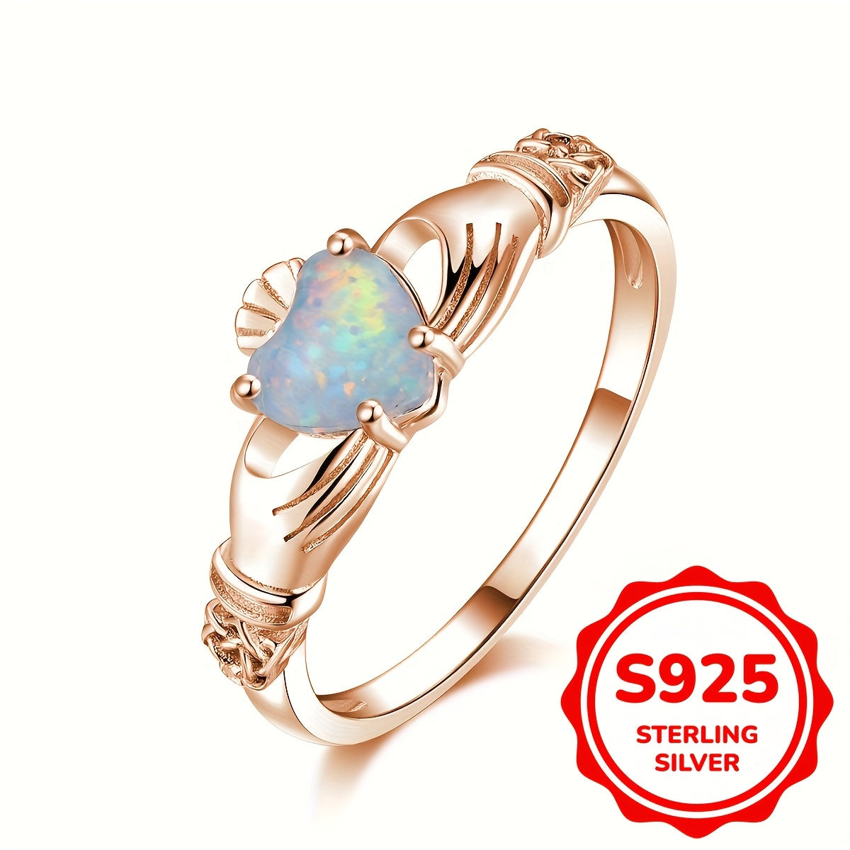 This stunning 925 sterling silver Claddagh ring features a synthetic opal heart, adding a touch of vintage boho style to any outfit. Perfect for weddings, parties, or everyday wear.