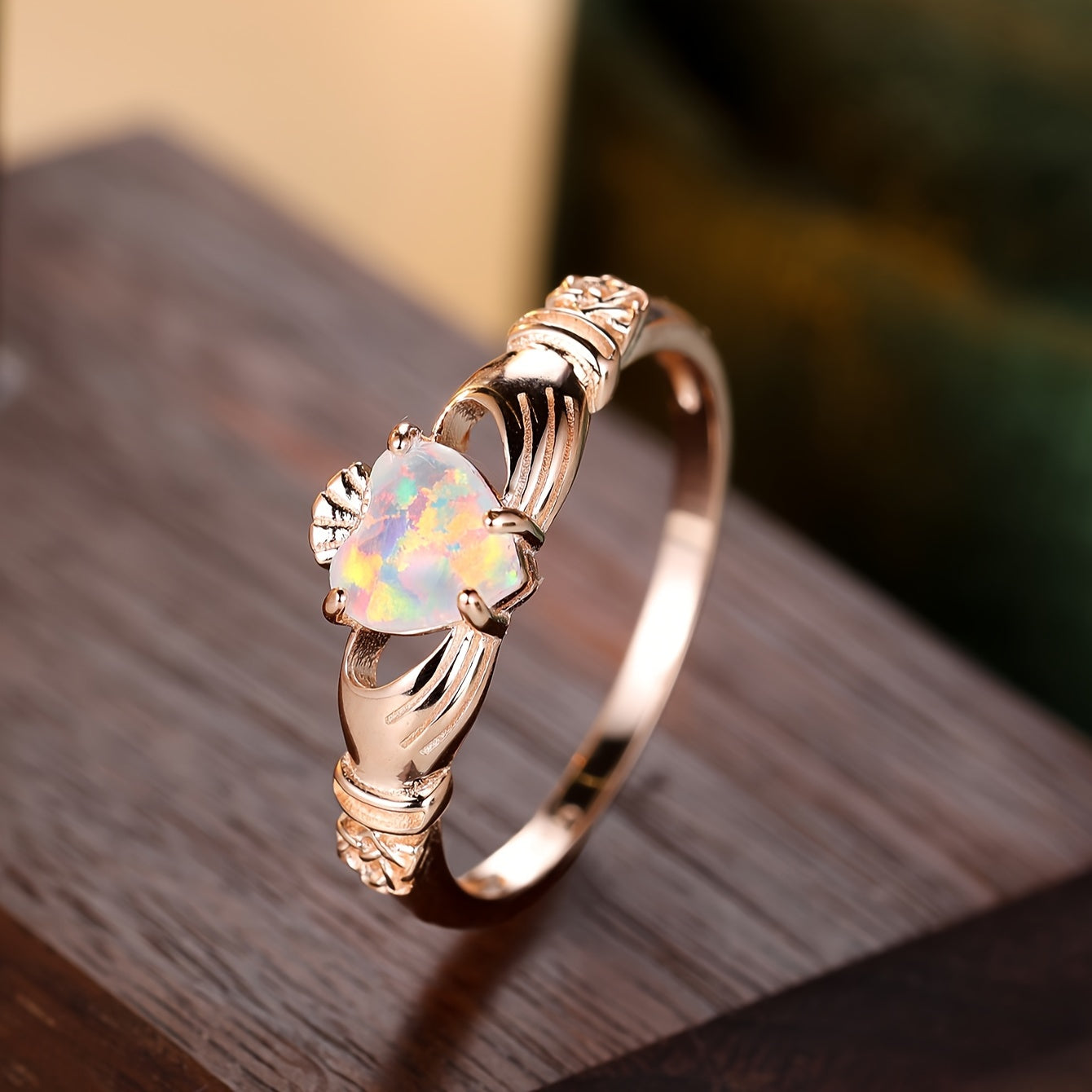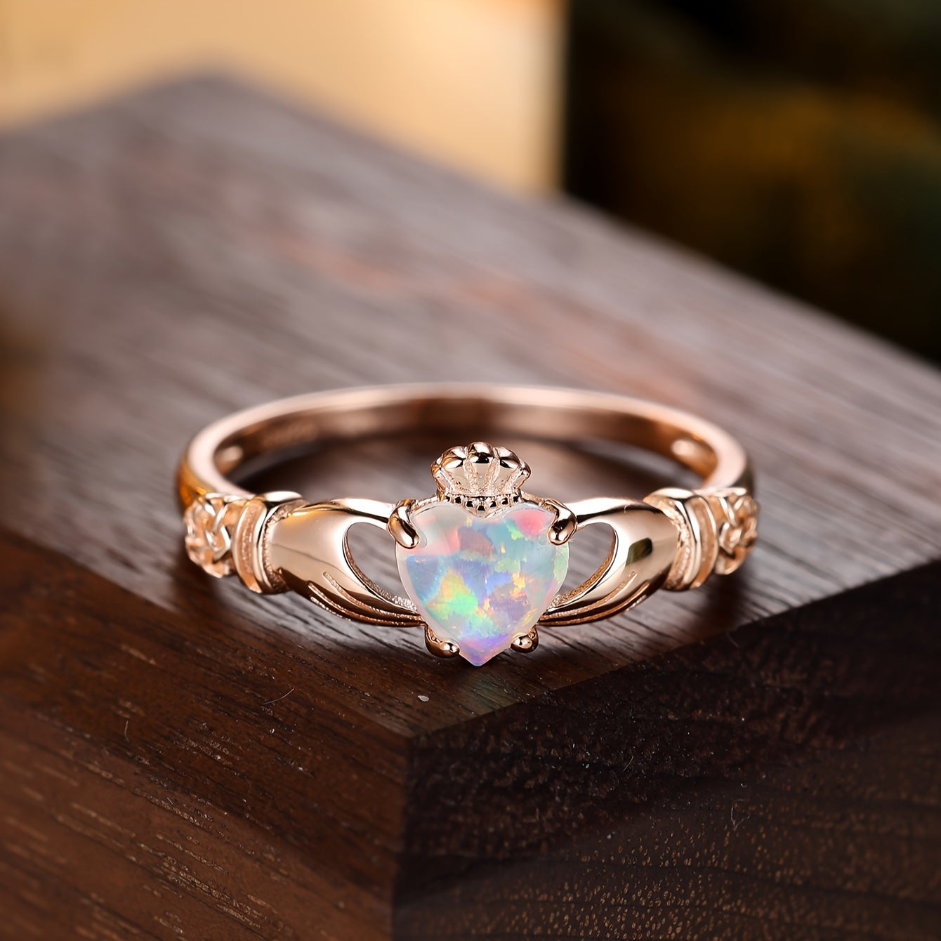• 925 sterling silver Claddagh ring with synthetic opal heart