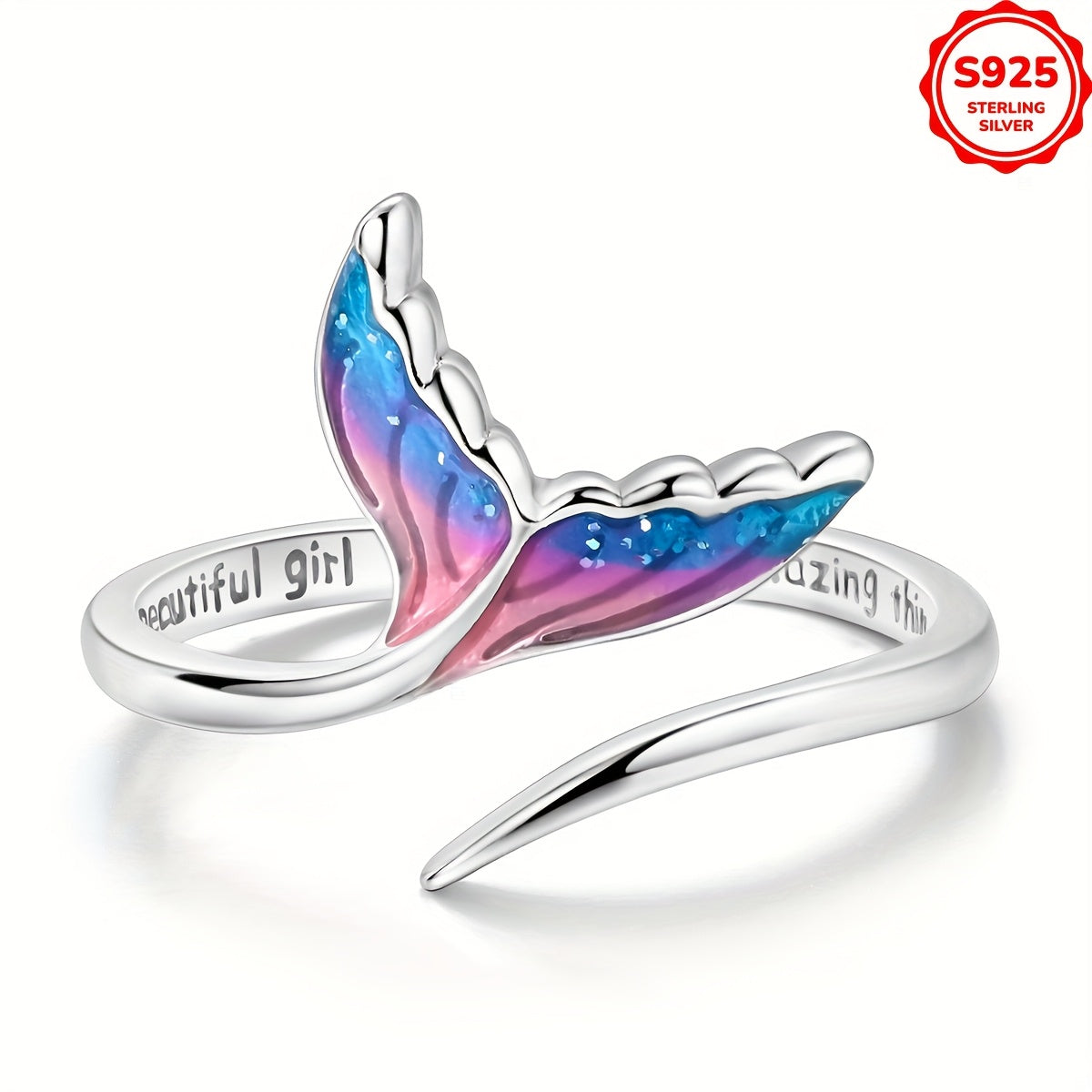 Make a splash with this stunning mermaid tail ring featuring opalescent inlay. Perfect for weddings, engagements, or everyday wear.