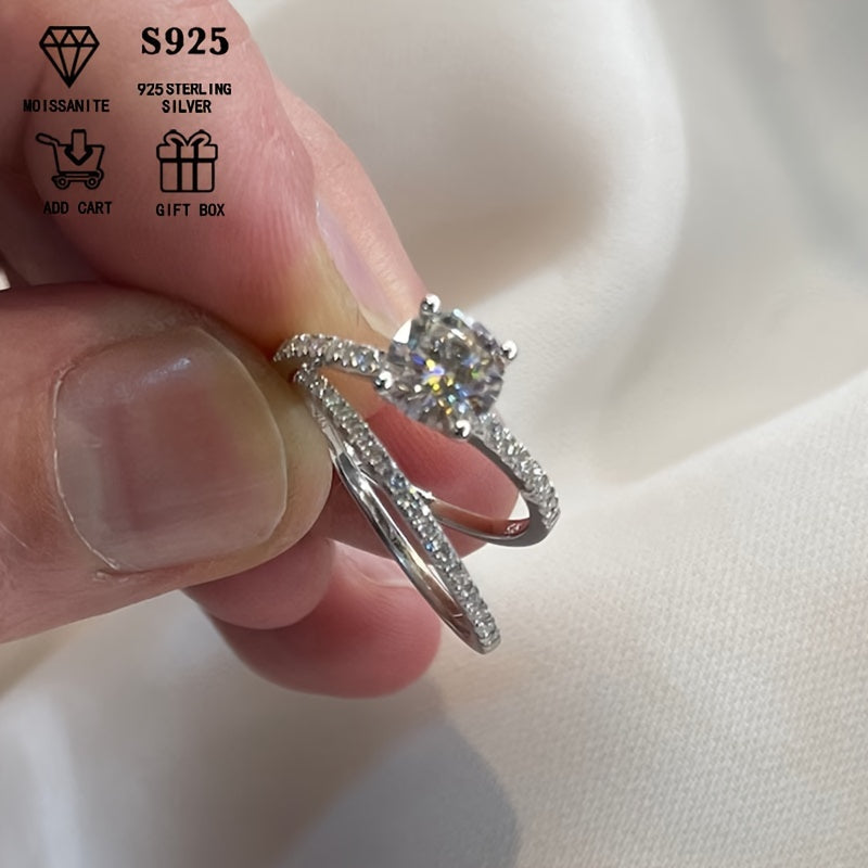 A stunning sterling silver engagement ring set with full faux diamond accents. This set is perfect for a glamorous and elegant look.