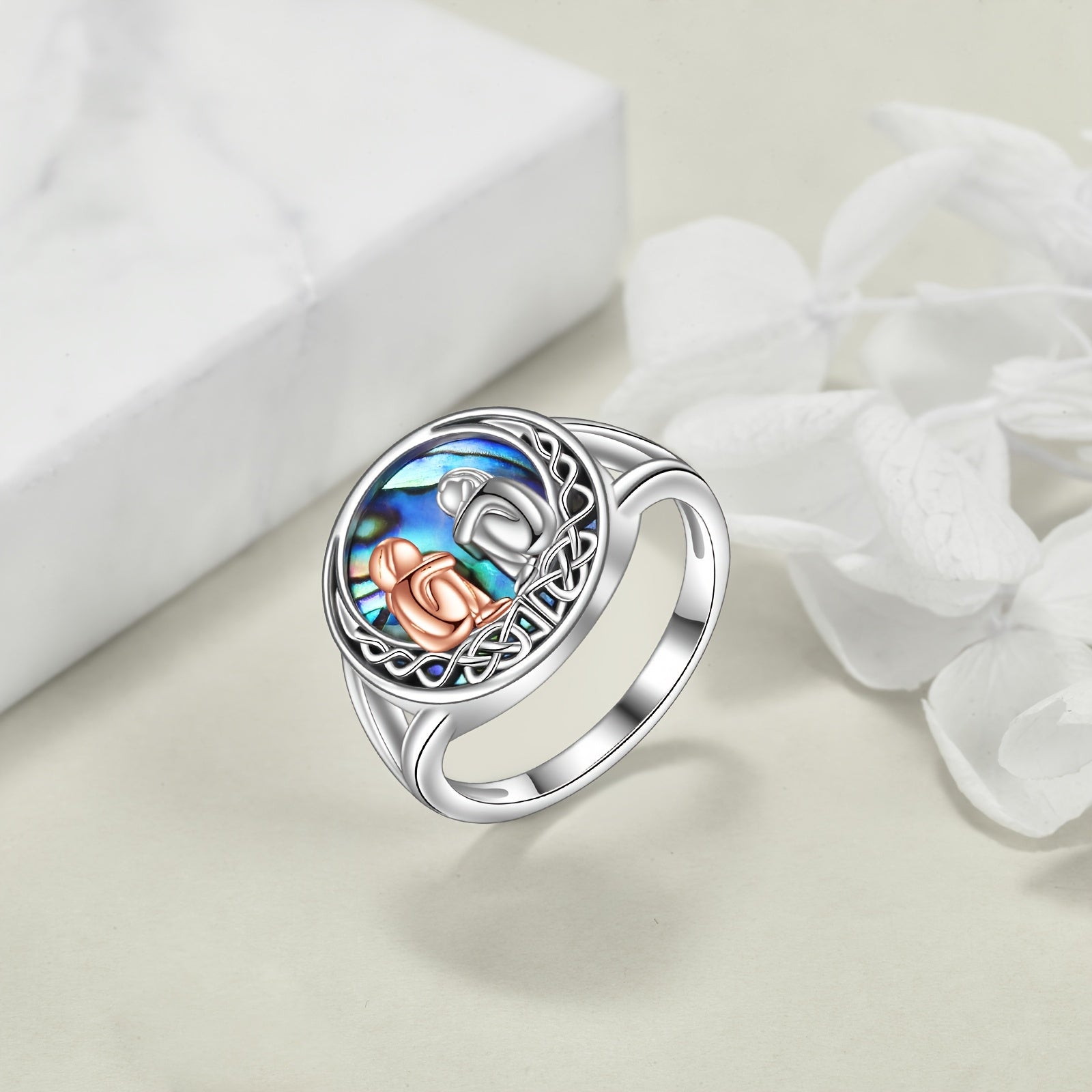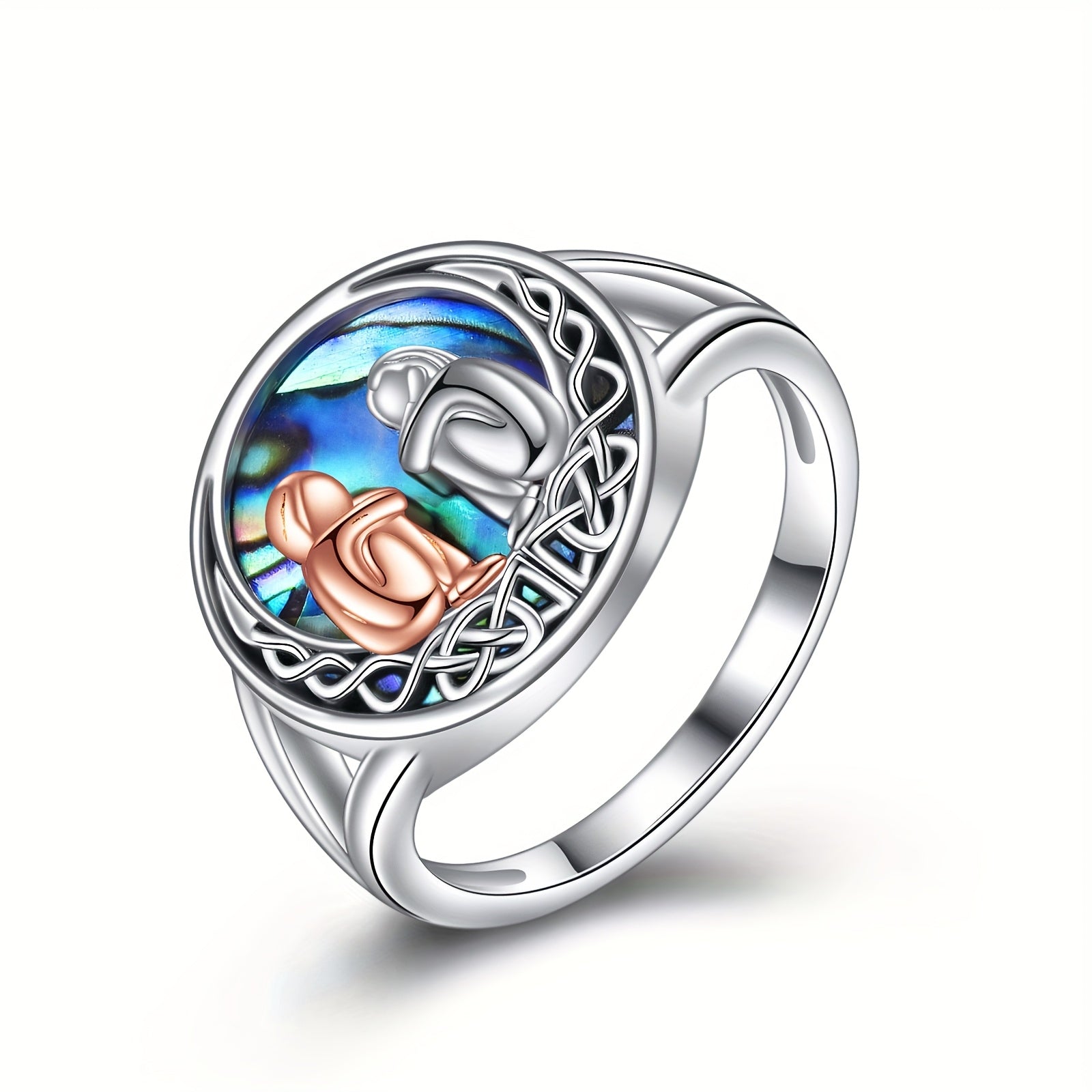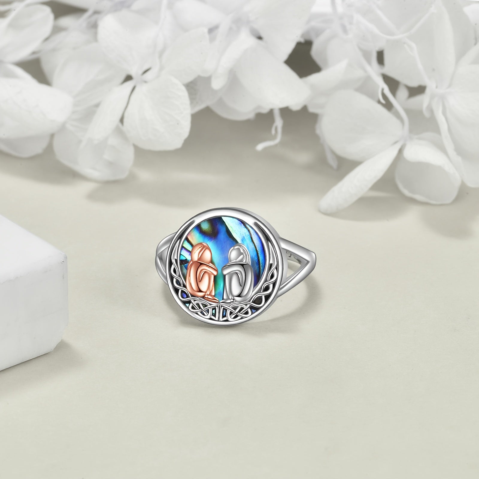 Sterling Silver Sister Rings with Abalone Shell Women&