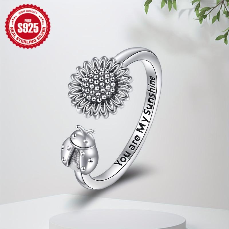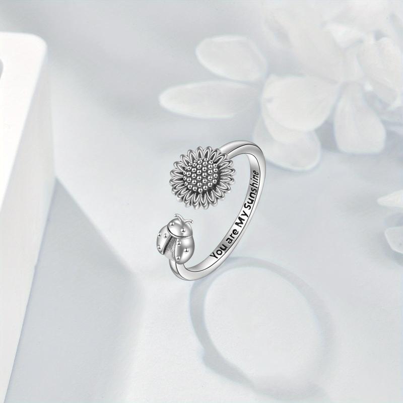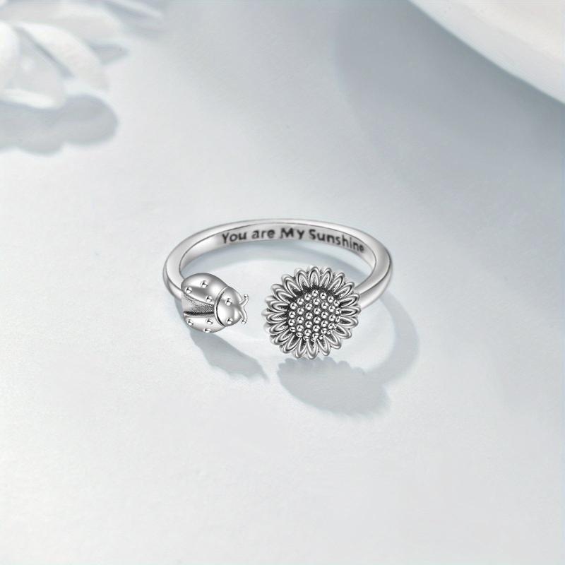 Add a touch of nature-inspired charm to your look with this vintage sunflower ladybug ring. Made of sterling silver, this adjustable ring is a unique and stylish piece of jewelry for women.