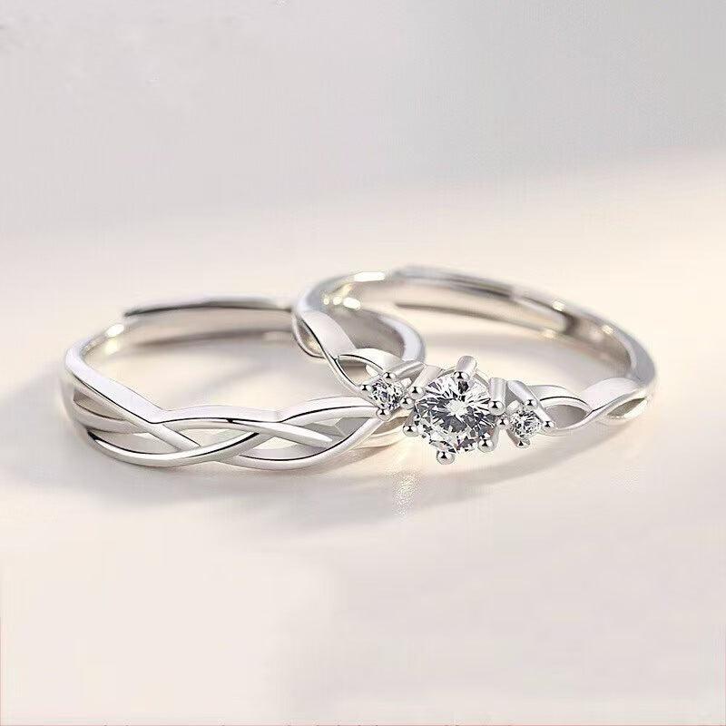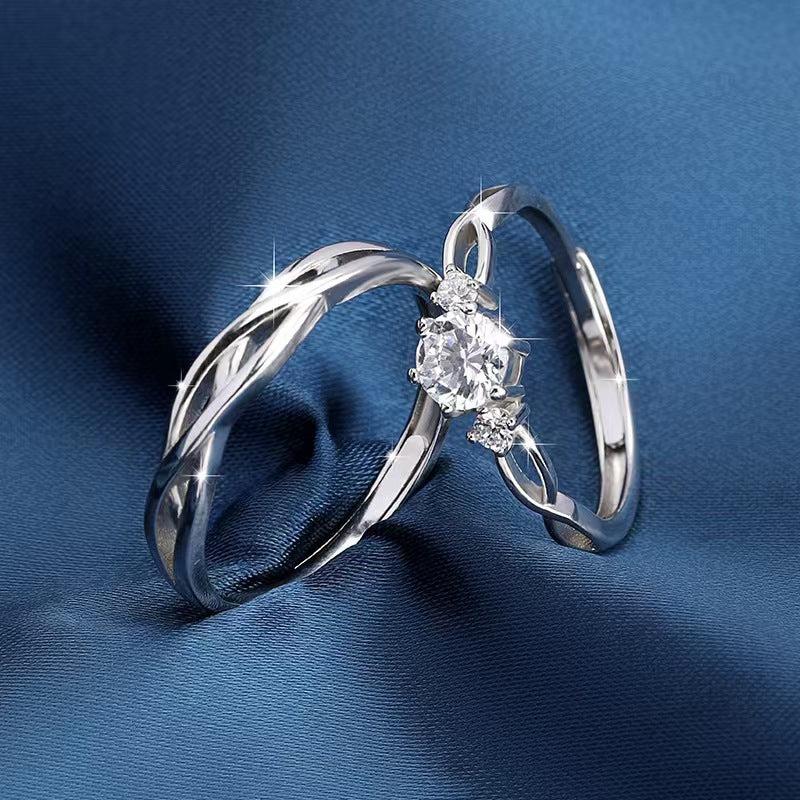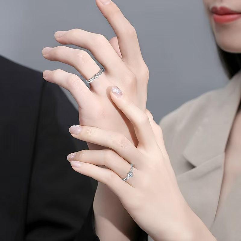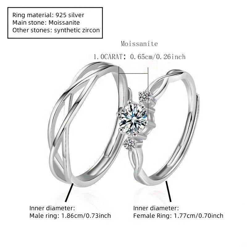 Stunning vintage style couple's ring made of 925 sterling silver with moissanite stone. Features a classic design and 18K golden plating, perfect for engagement, wedding, or anniversary. Adjustable size ensures a comfortable fit.